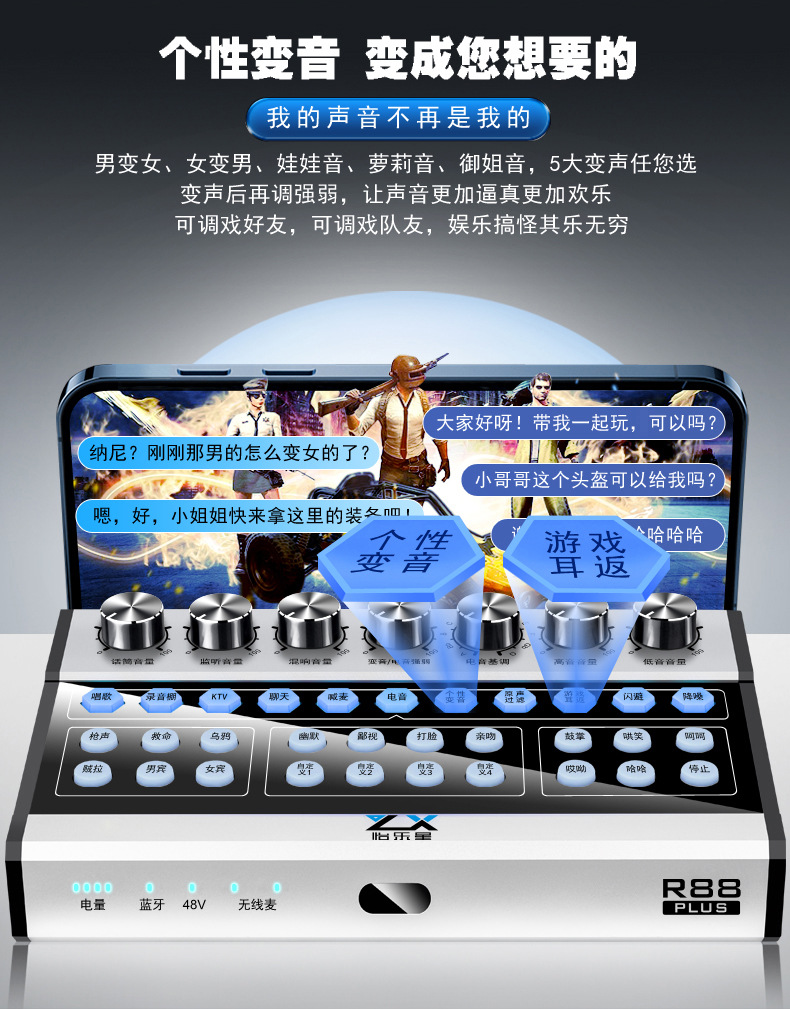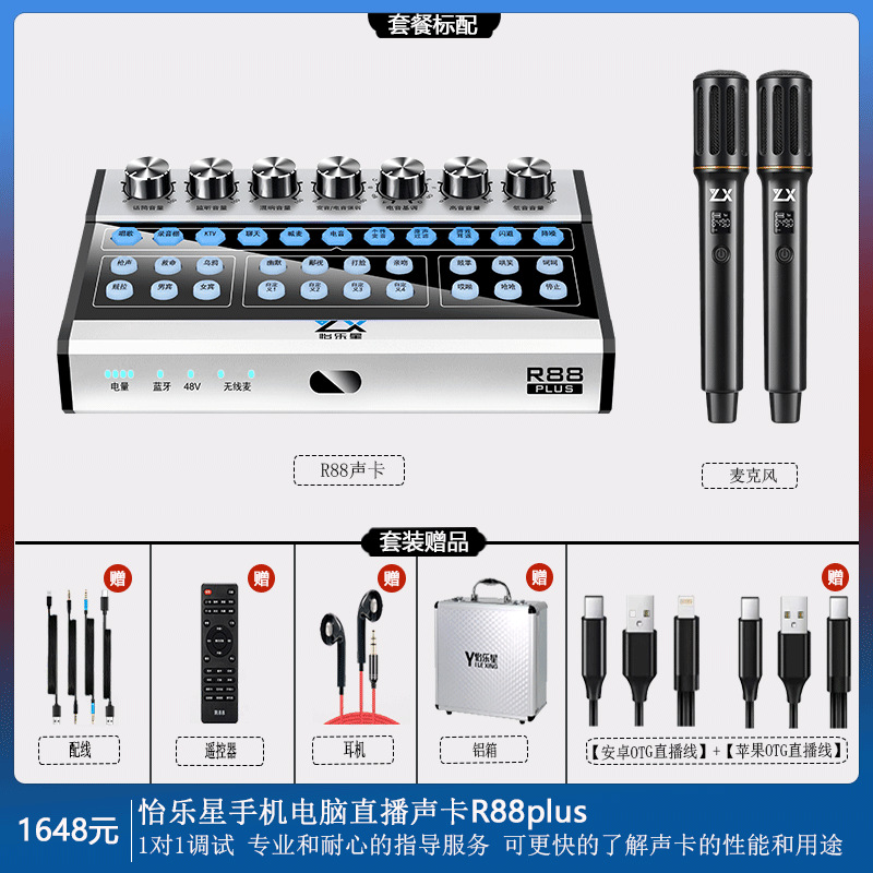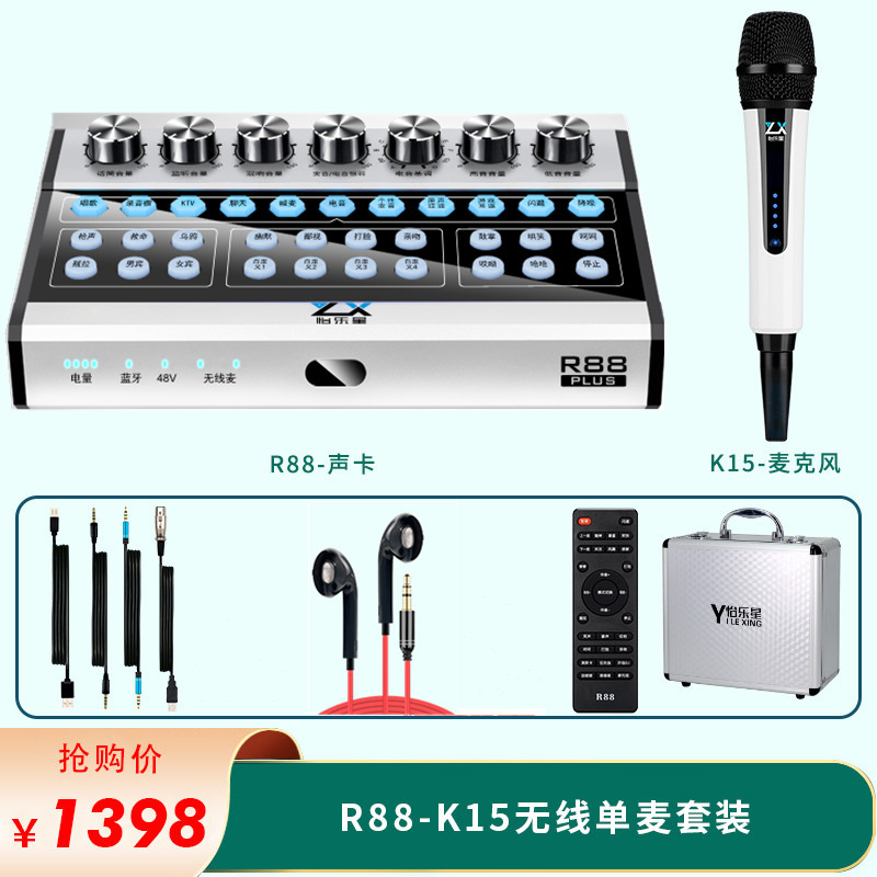 이러스타 R88 사운드 카드 세트 노래방 휴대폰 라이브 방송 무선 마이크 콘덴서 다이나믹 듀얼 모드 라이브 방송 도구