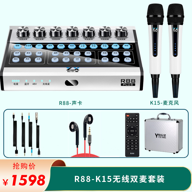 이러스타 R88 사운드 카드 세트 노래방 휴대폰 라이브 방송 무선 마이크 콘덴서 다이나믹 듀얼 모드 라이브 방송 도구스토어 가기