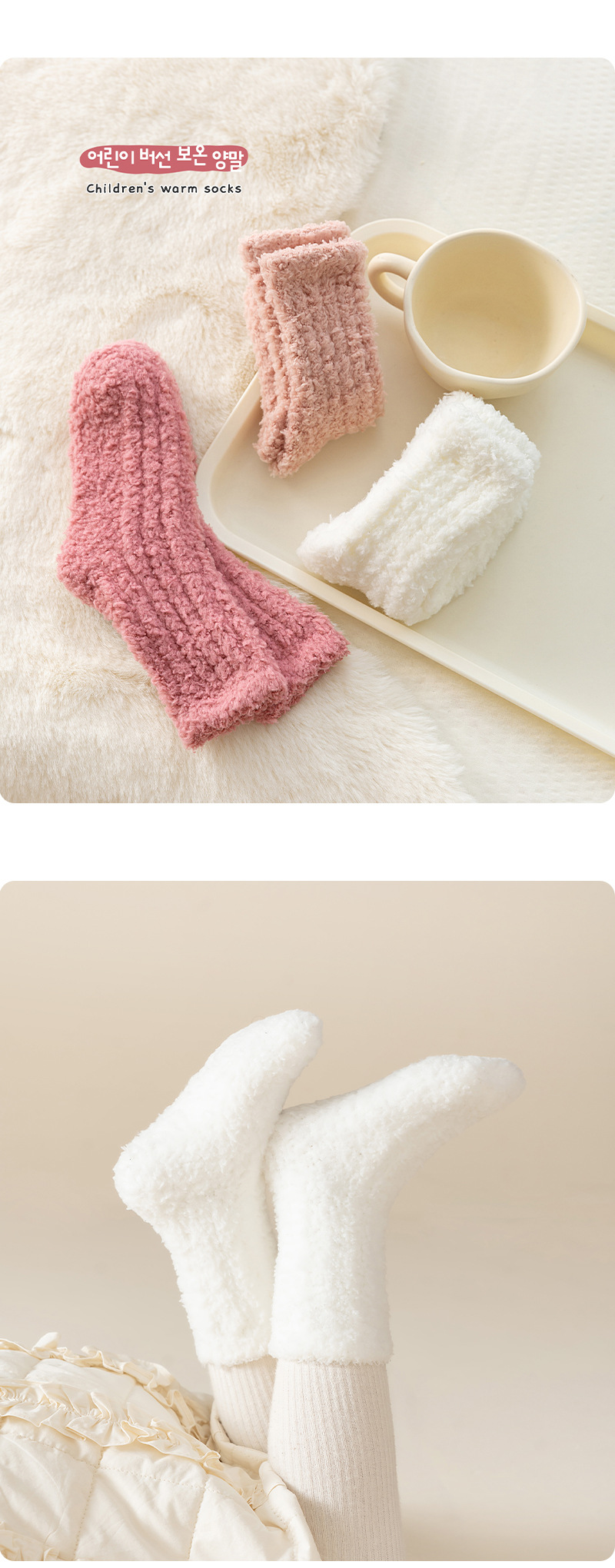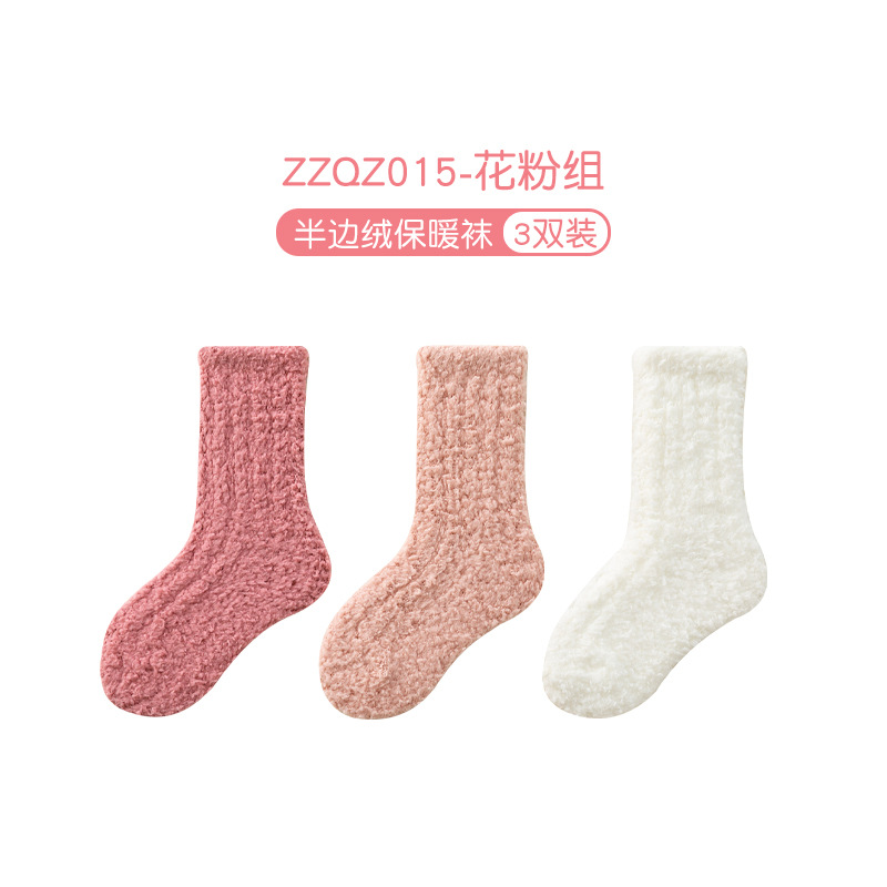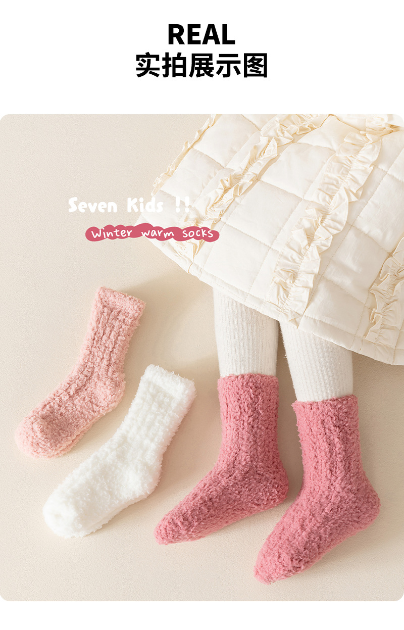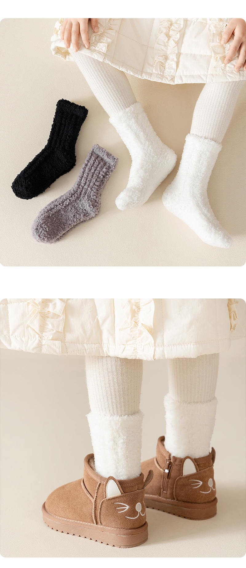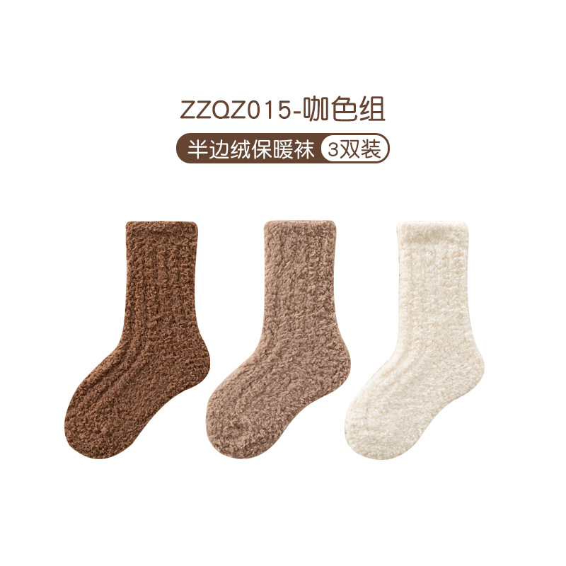 어린이 양말 2024 겨울 새로운 단색 조커 큰 어린이 두꺼운 반 벨벳 따뜻한 양말 3 쌍 도매스토어 가기