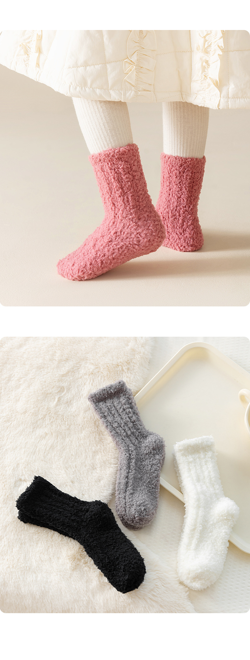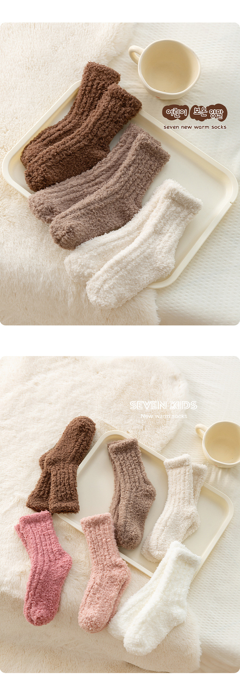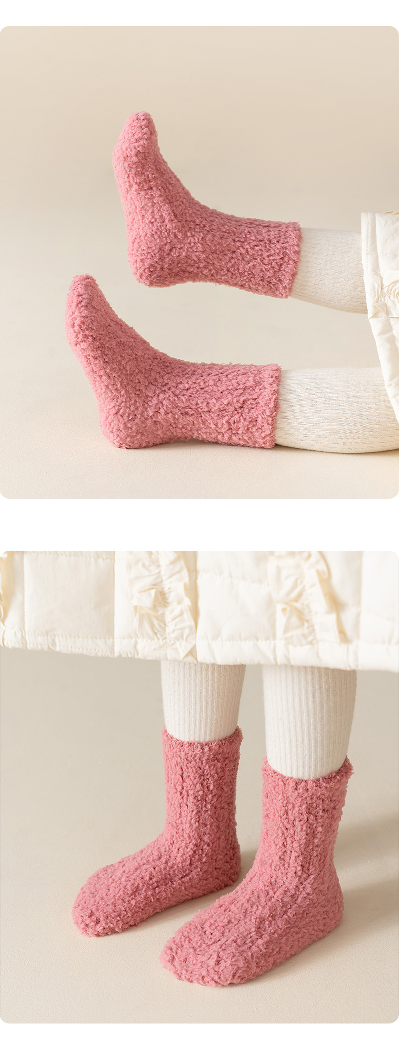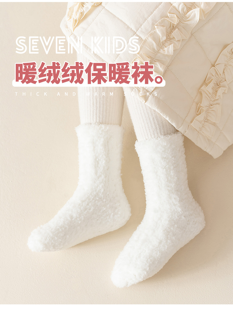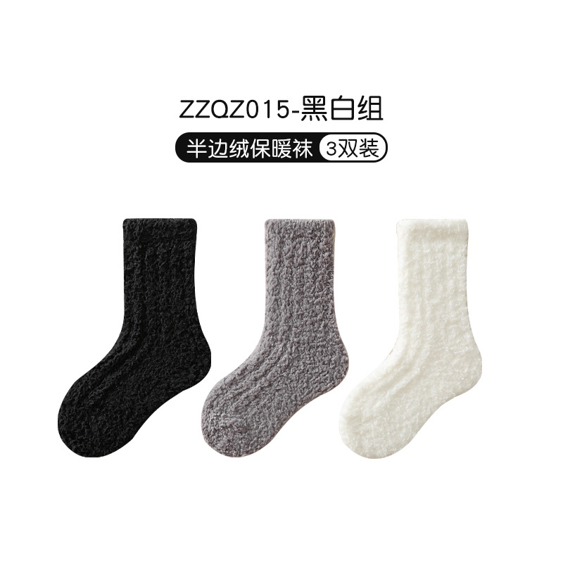 어린이 양말 2024 겨울 새로운 단색 조커 큰 어린이 두꺼운 반 벨벳 따뜻한 양말 3 쌍 도매스토어 가기