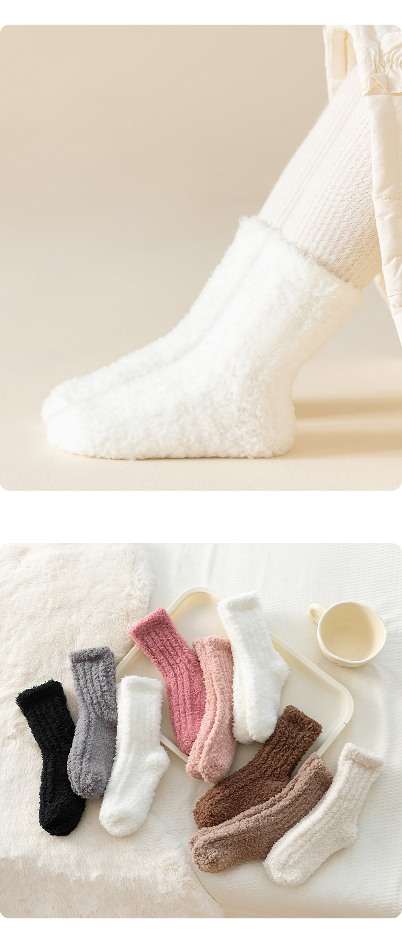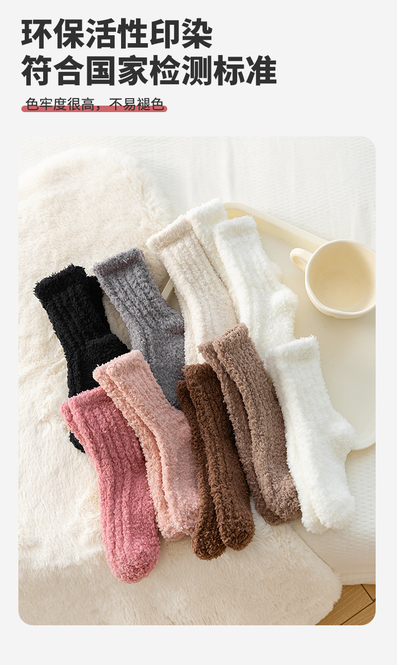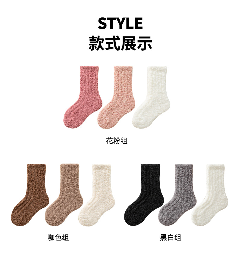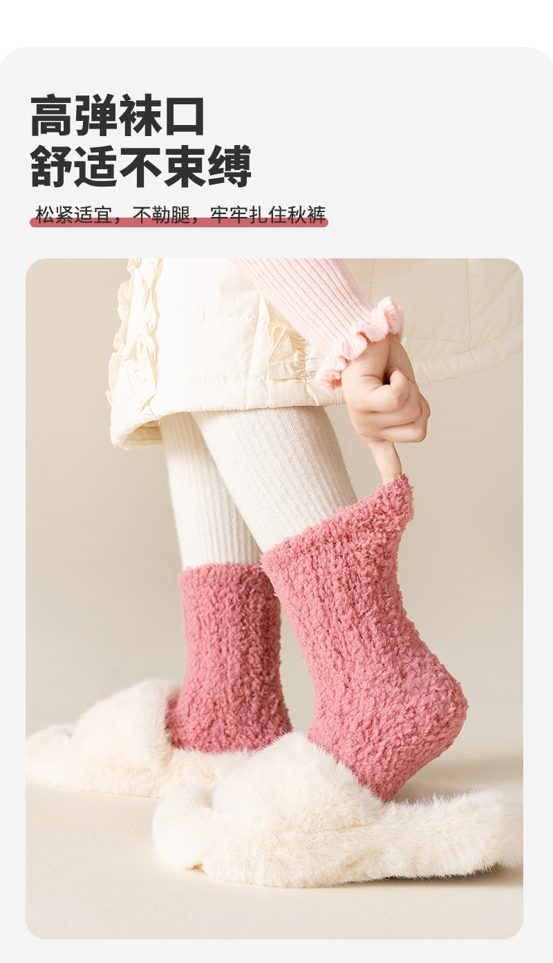 어린이 양말 2024 겨울 새로운 단색 조커 큰 어린이 두꺼운 반 벨벳 따뜻한 양말 3 쌍 도매스토어 가기