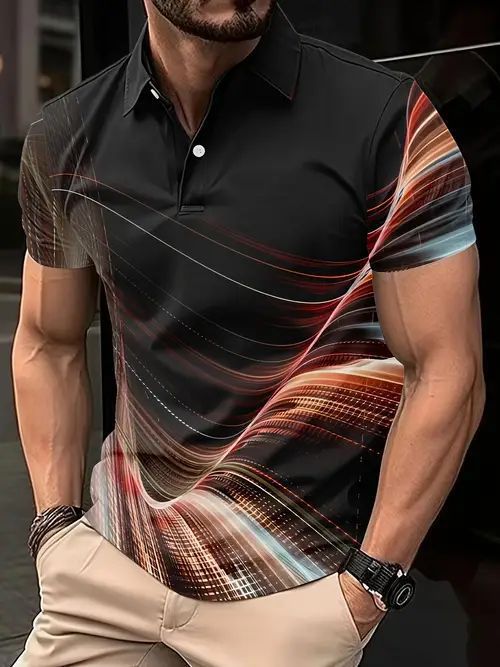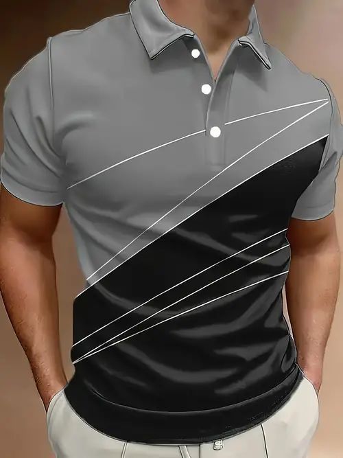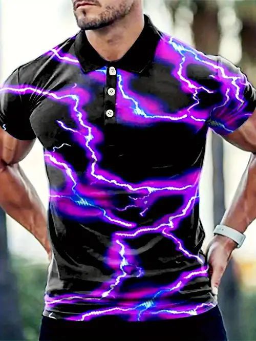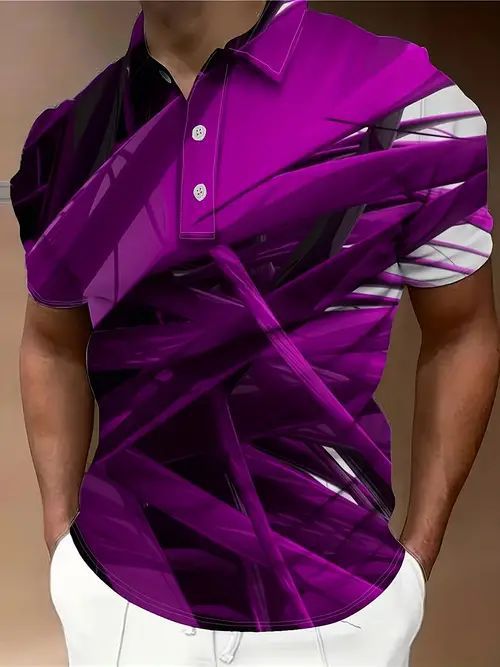 보라색 마름모 패턴 3D 인쇄 남성 반팔 옷깃 골프 셔츠 캐주얼 스타일 정사이즈 버전 여름