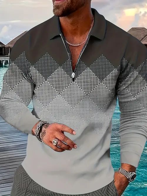 보라색 마름모 패턴 3D 인쇄 남성 반팔 옷깃 골프 셔츠 캐주얼 스타일 정사이즈 버전 여름스토어 가기
