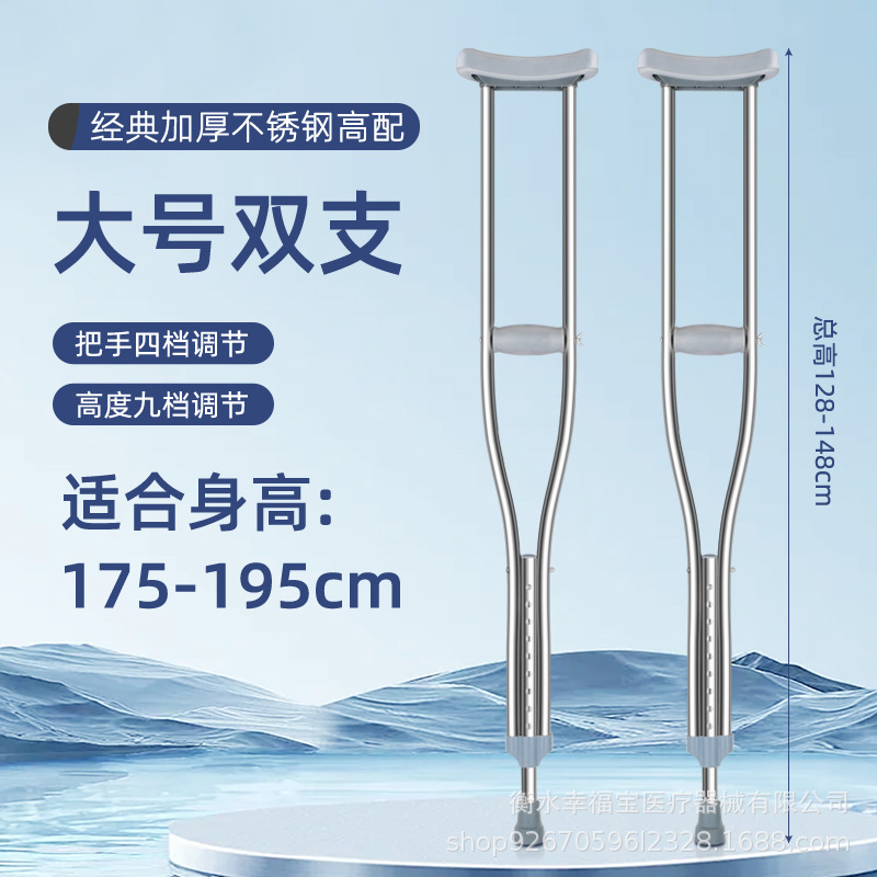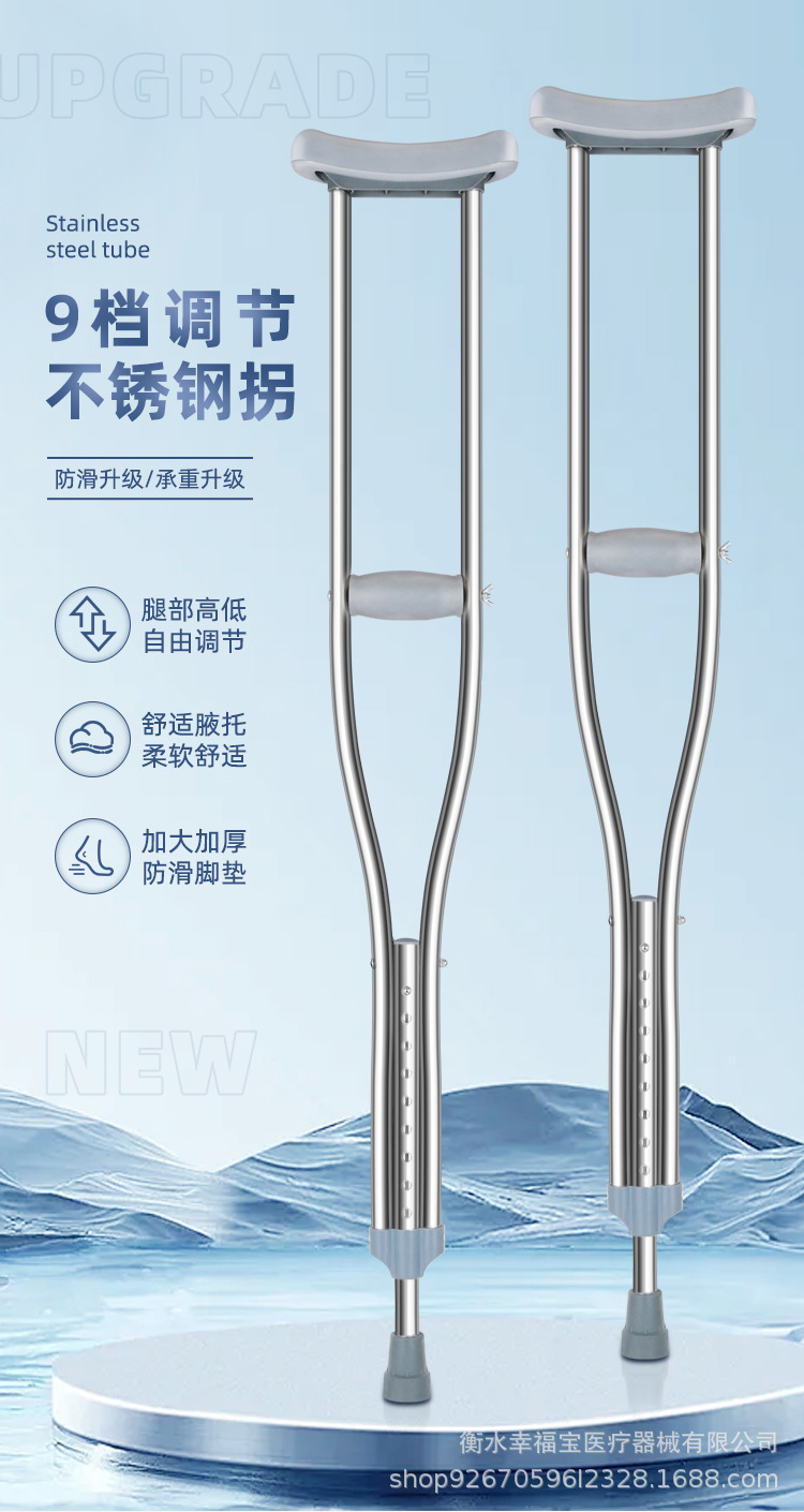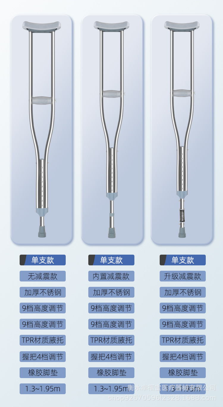 노인을위한 의료용 목발 겨드랑이 목발 스테인레스 스틸 목발 미끄럼 방지 이중 목발 워커 워커 워커