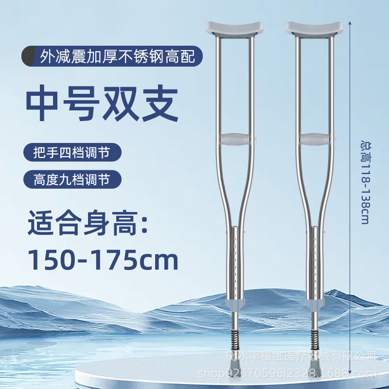 노인을위한 의료용 목발 겨드랑이 목발 스테인레스 스틸 목발 미끄럼 방지 이중 목발 워커 워커 워커스토어 가기