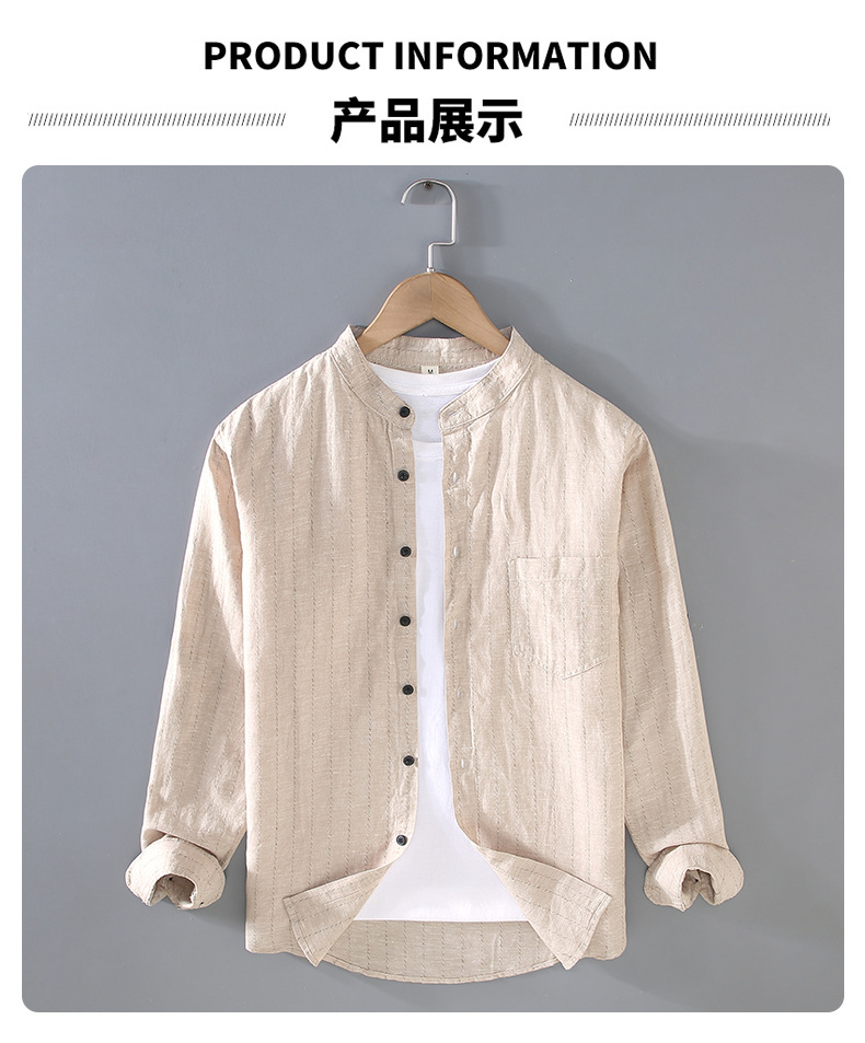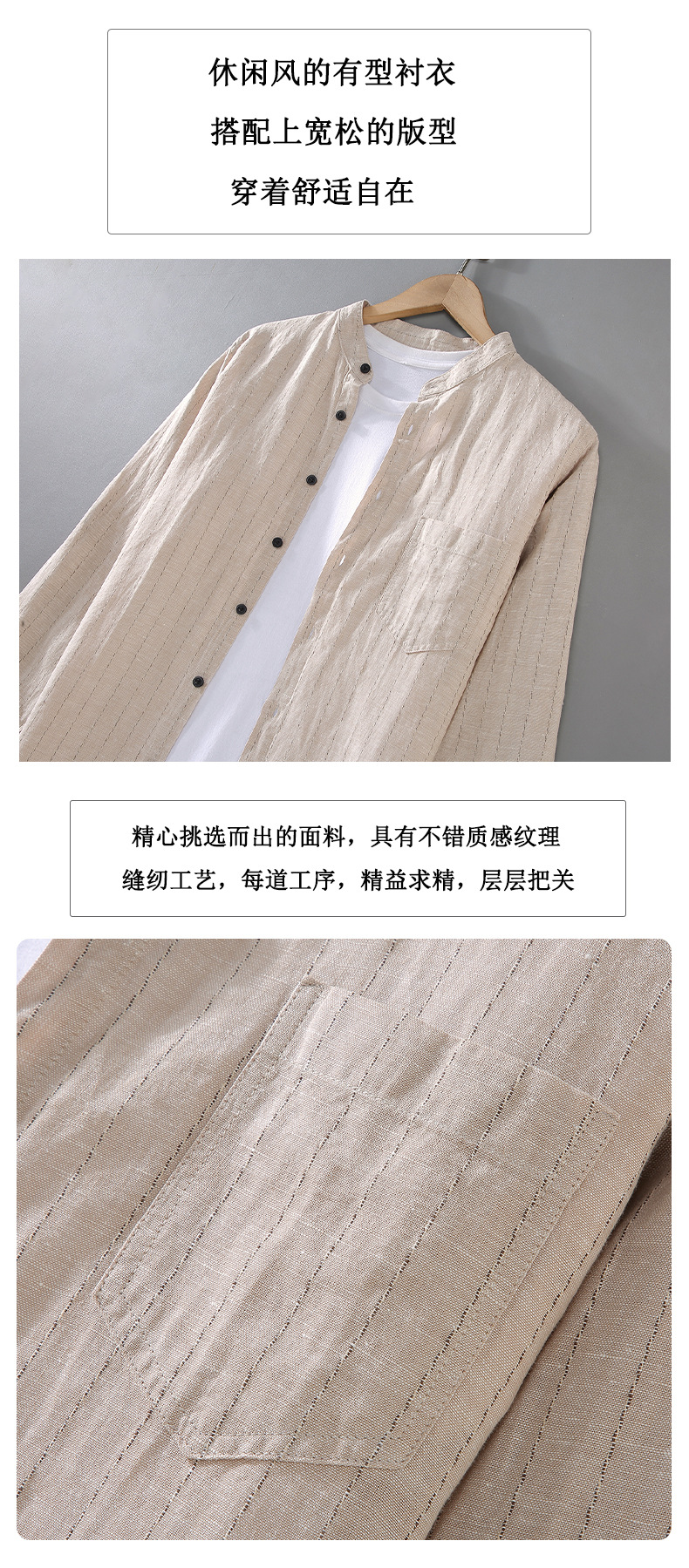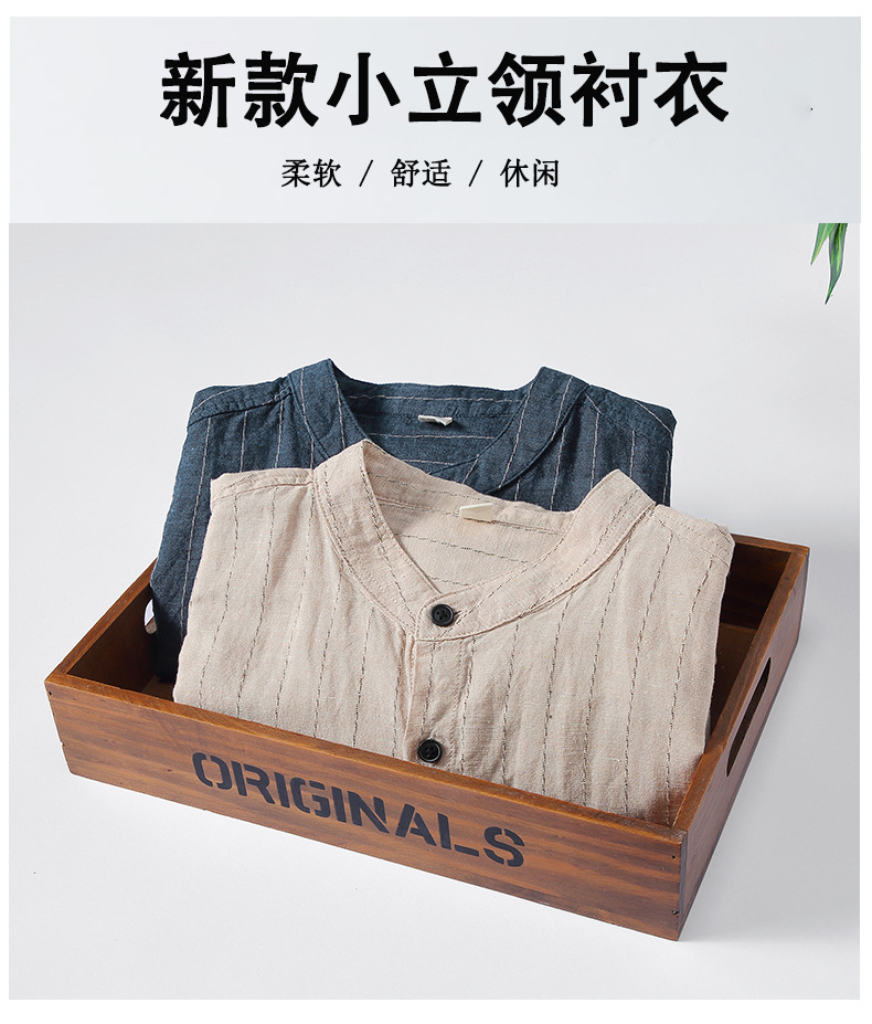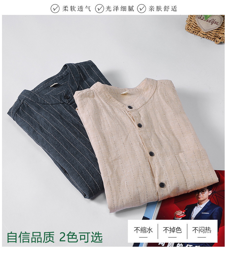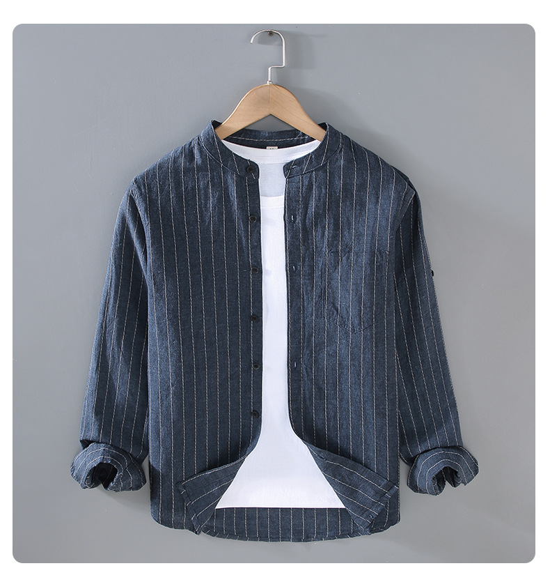 9602 중국 스타일 리넨 칼라 긴 소매 셔츠 남자의 봄과 가을 새로운 느슨한 줄무늬 빈티지 코튼 리넨 탕 의류 트렌디스토어 가기