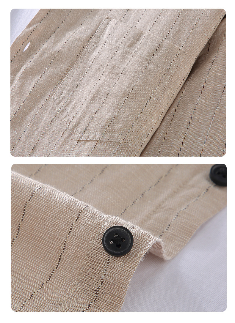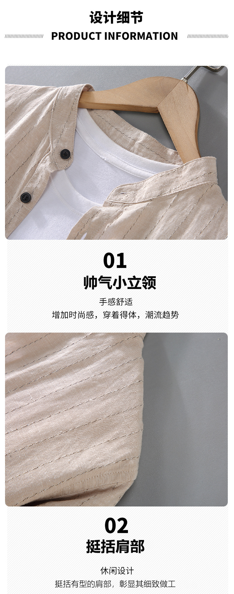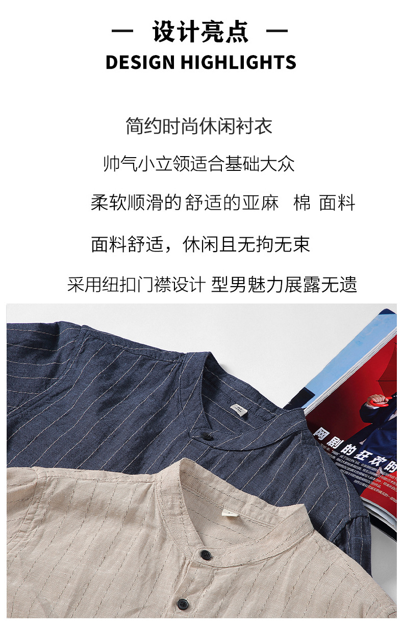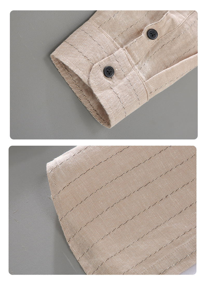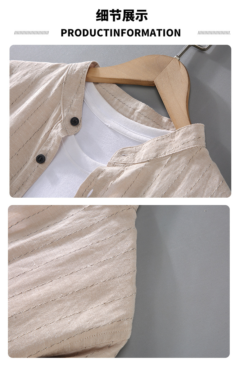 9602 중국 스타일 리넨 칼라 긴 소매 셔츠 남자의 봄과 가을 새로운 느슨한 줄무늬 빈티지 코튼 리넨 탕 의류 트렌디스토어 가기