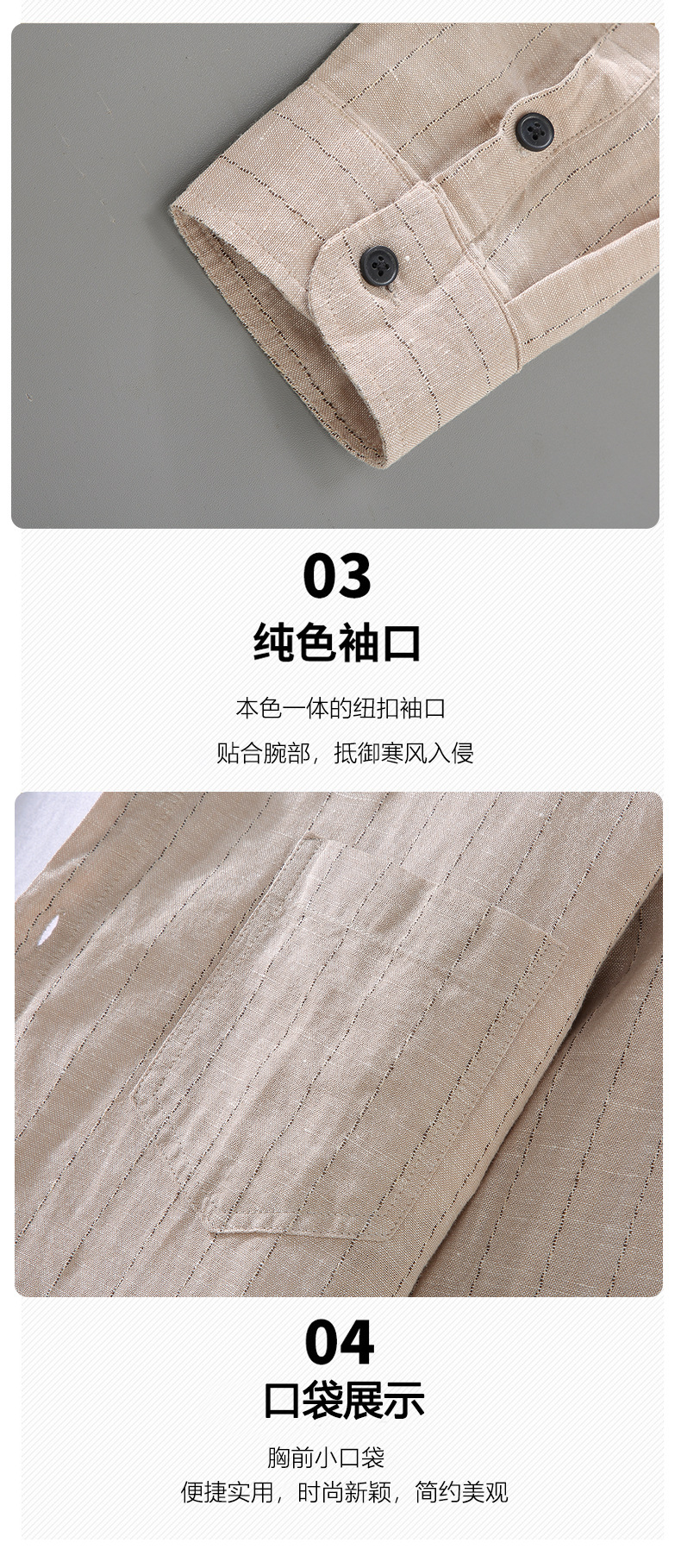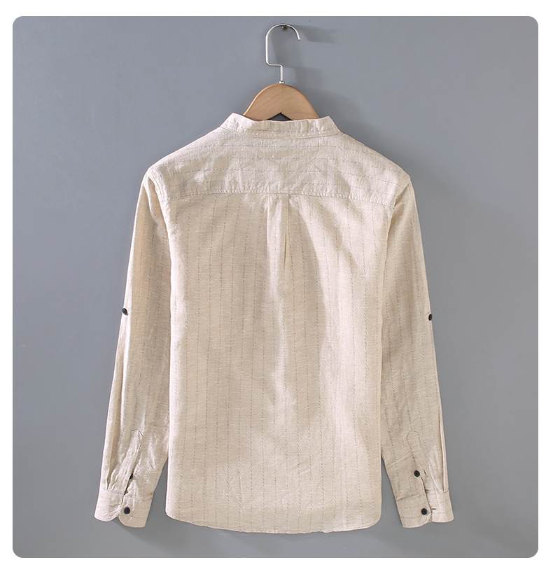 9602 중국 스타일 리넨 칼라 긴 소매 셔츠 남자의 봄과 가을 새로운 느슨한 줄무늬 빈티지 코튼 리넨 탕 의류 트렌디