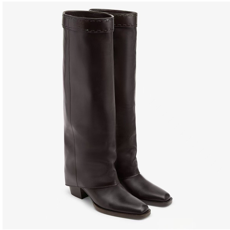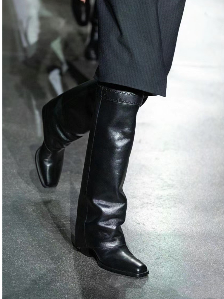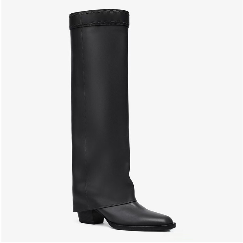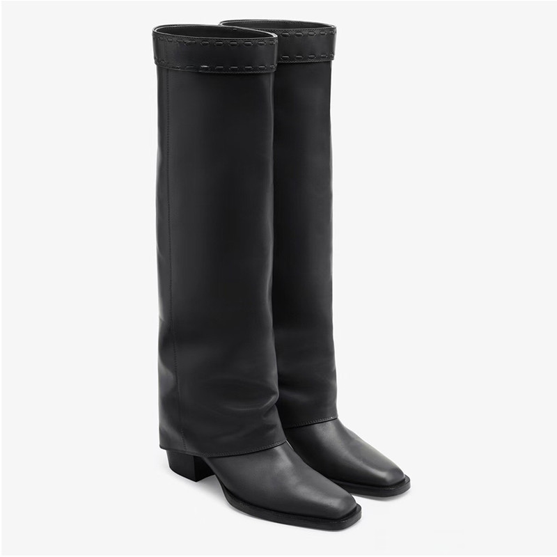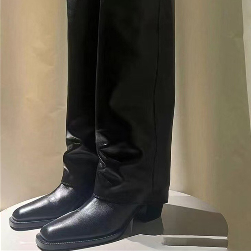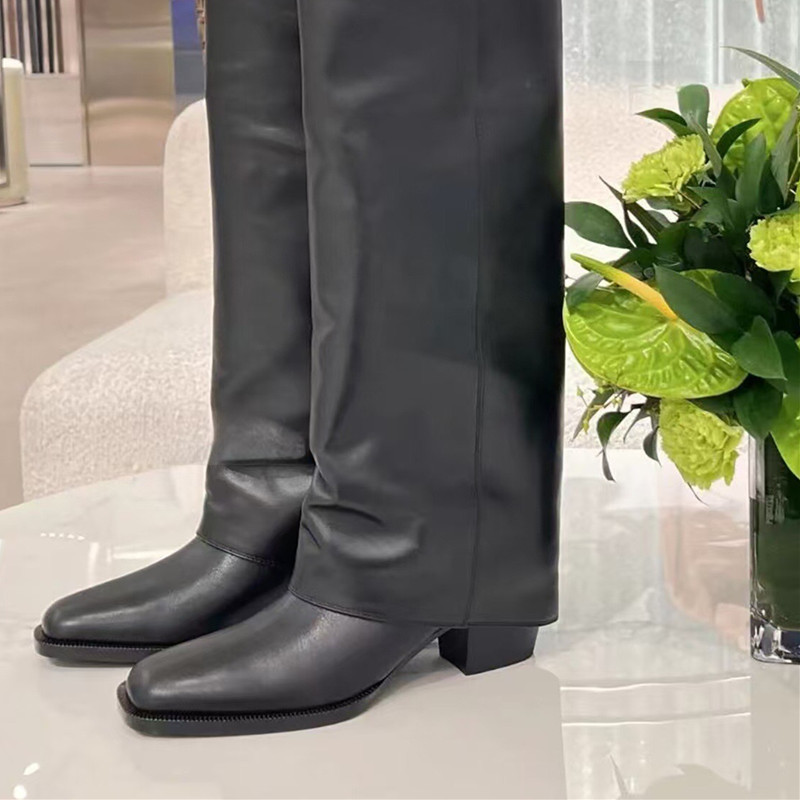 유럽과 미국의 새로운 두꺼운 힐 스퀘어 헤드 느슨한 스트레이트 튜브 바지 부츠 대외 무역 국경 플러스 사이즈 긴 튜브 나이트 여성 부츠