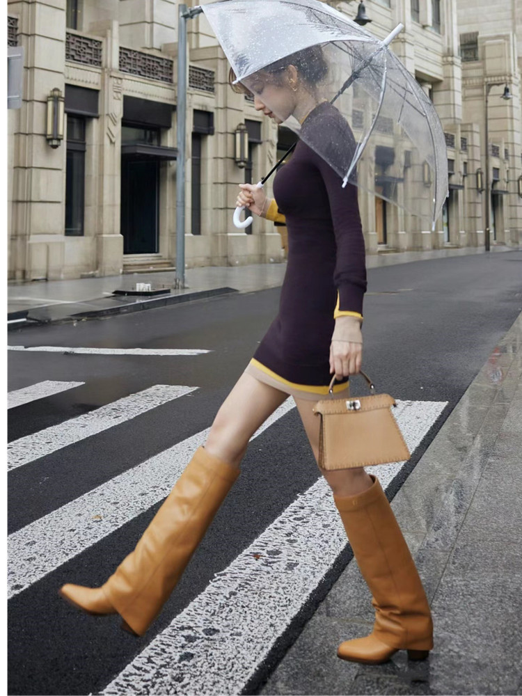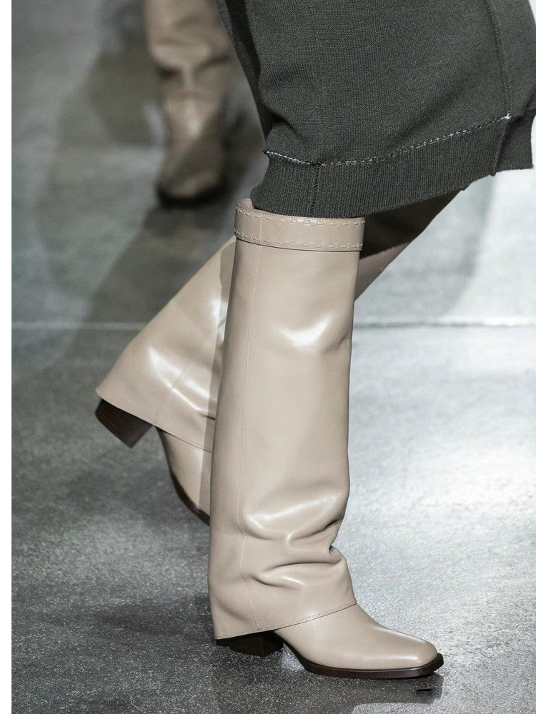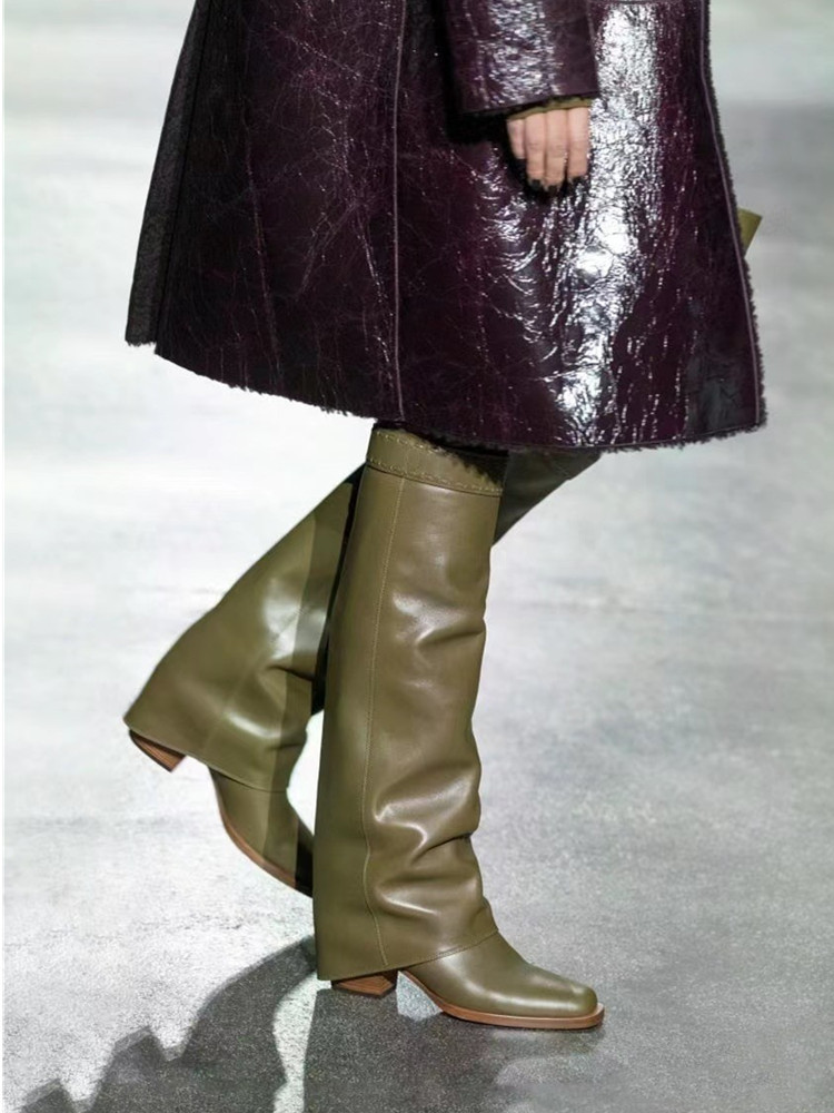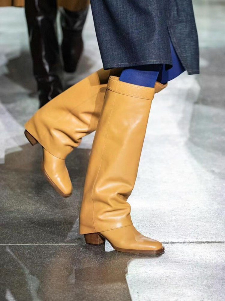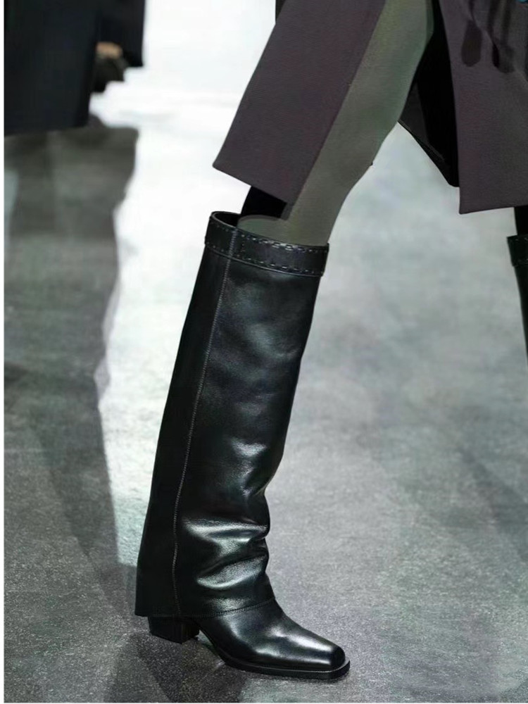 유럽과 미국의 새로운 두꺼운 힐 스퀘어 헤드 느슨한 스트레이트 튜브 바지 부츠 대외 무역 국경 플러스 사이즈 긴 튜브 나이트 여성 부츠스토어 가기