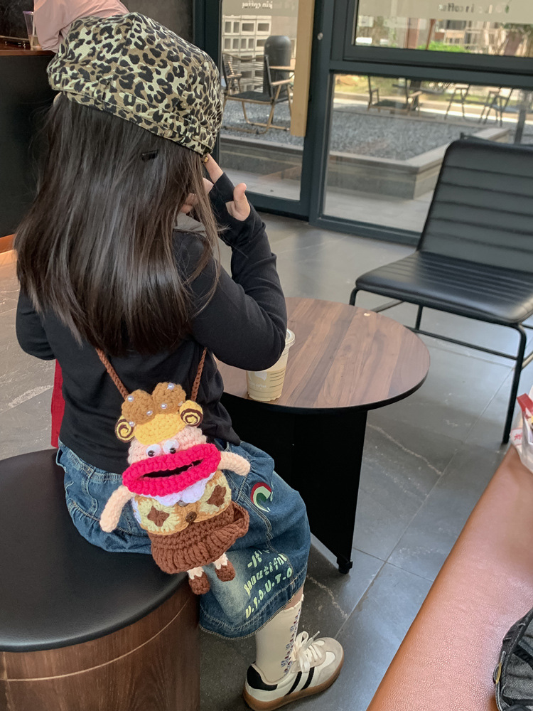 어린이 가방 가을과 겨울 새로운 귀여운 인형 양모 가방 소녀 공주 크로스 바디 가방 니트 휴대 전화 가방 대외 무역스토어 가기