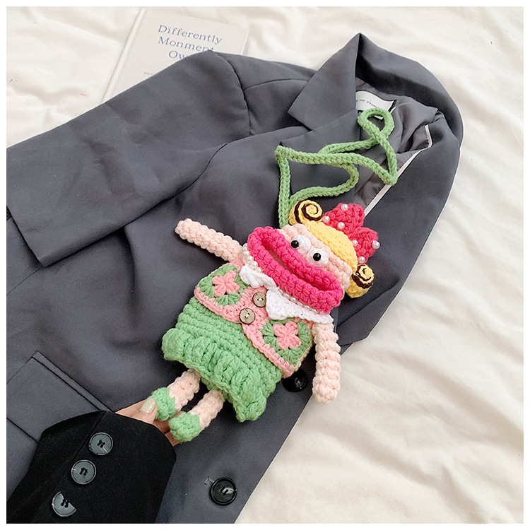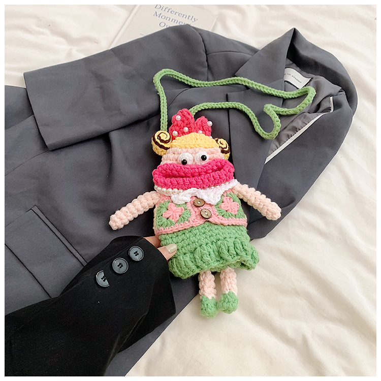 어린이 가방 가을과 겨울 새로운 귀여운 인형 양모 가방 소녀 공주 크로스 바디 가방 니트 휴대 전화 가방 대외 무역
