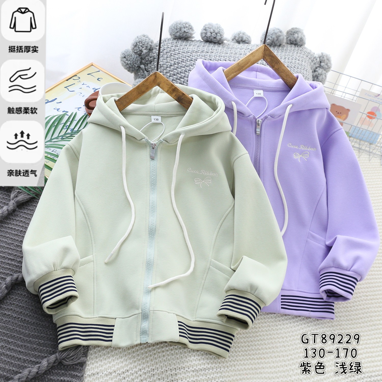 2024 겨울 어린이 기모 재킷 소녀의 만화 산리오 Huapian Fuo 곡물 양털 지퍼 탑