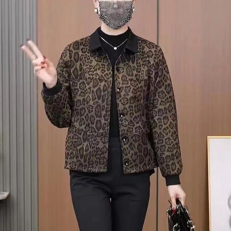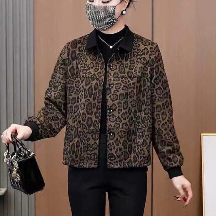 2025 가을 신상 패셔너블 레오파드 프린트 숏 재킷 여성용 한국 스타일 야구복 캐주얼 재킷 상의