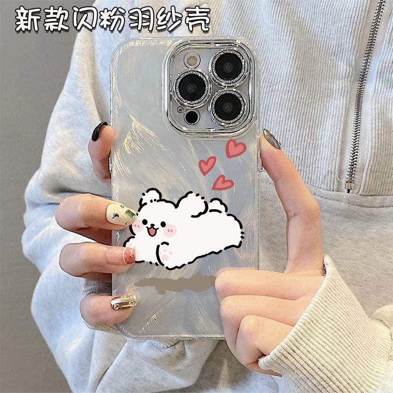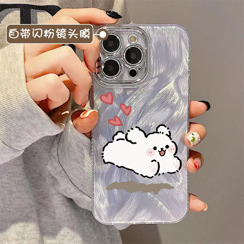 小白狗镜头膜全包苹果16/15promax手机壳卡通闪粉iPhone14女13/12스토어 가기