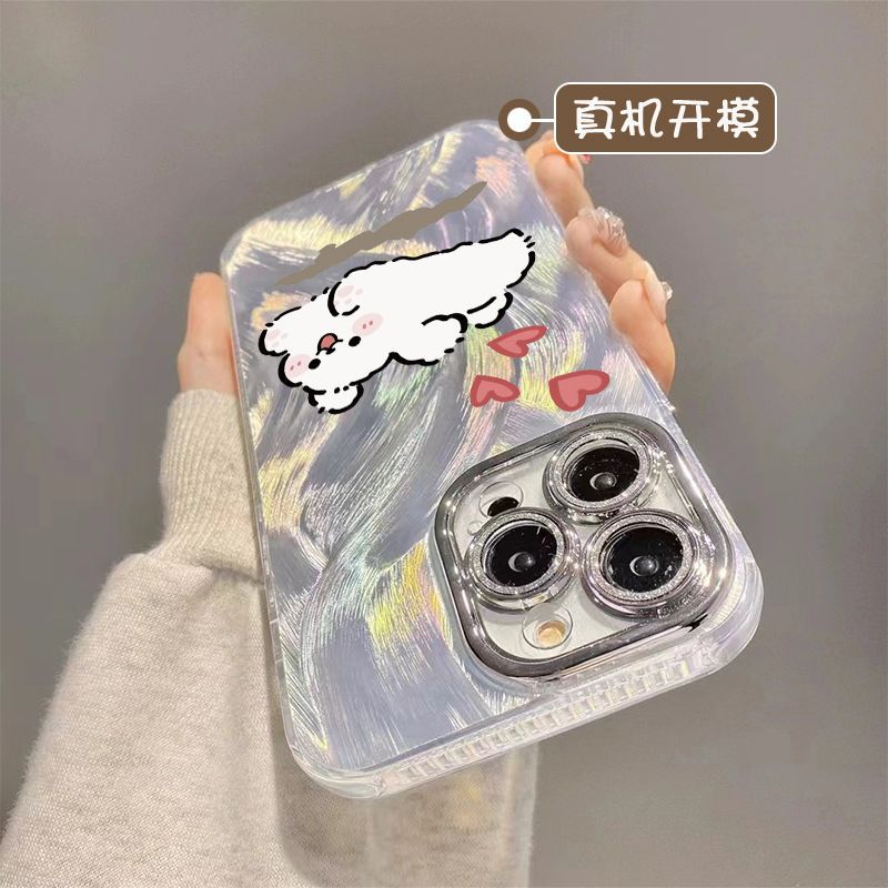 小白狗镜头膜全包苹果16/15promax手机壳卡通闪粉iPhone14女13/12