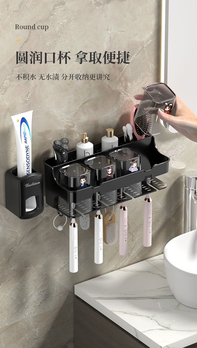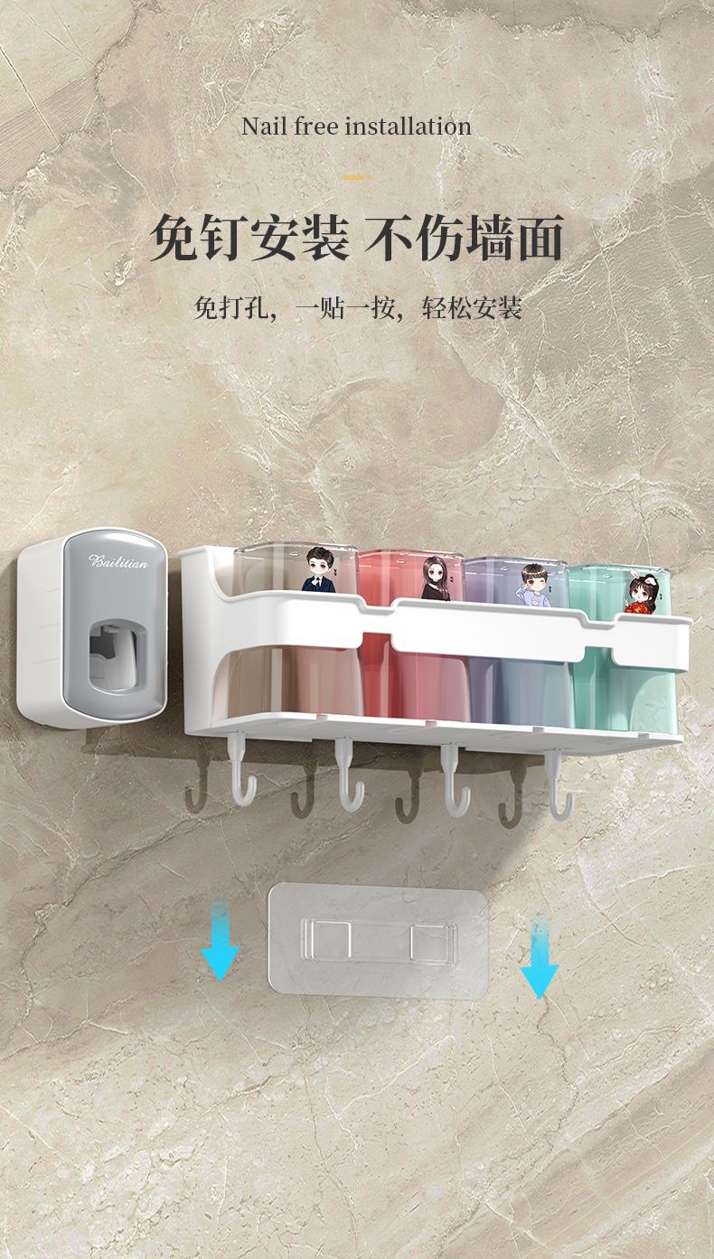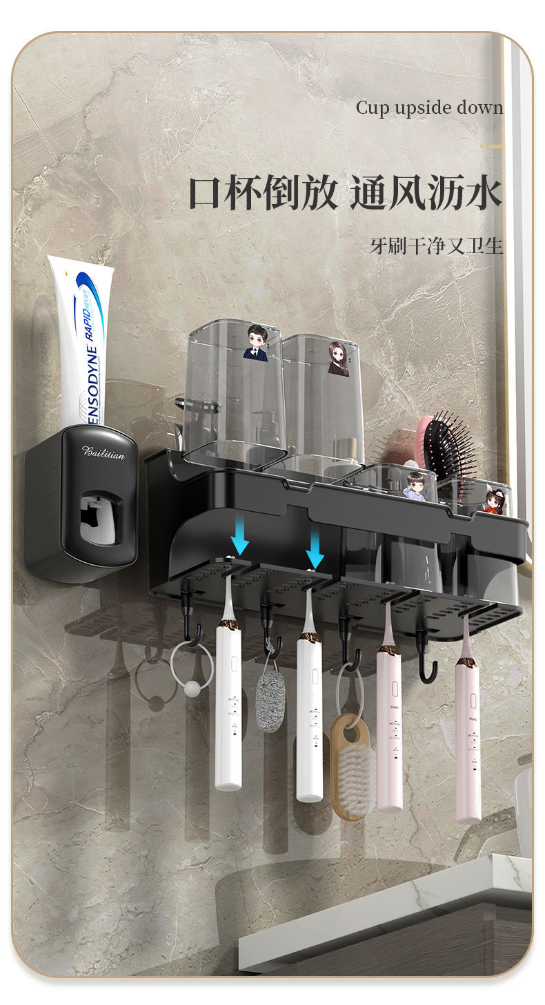 칫솔 랙 홀프리 칫솔 입 컵 화장실 치약 짜는 가정용 세척 컵 세트 Lanzhi