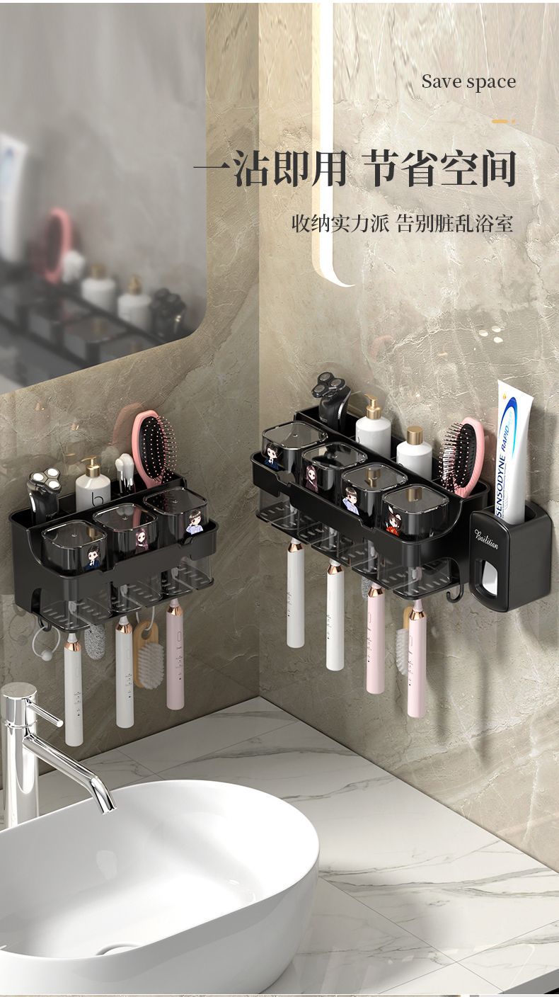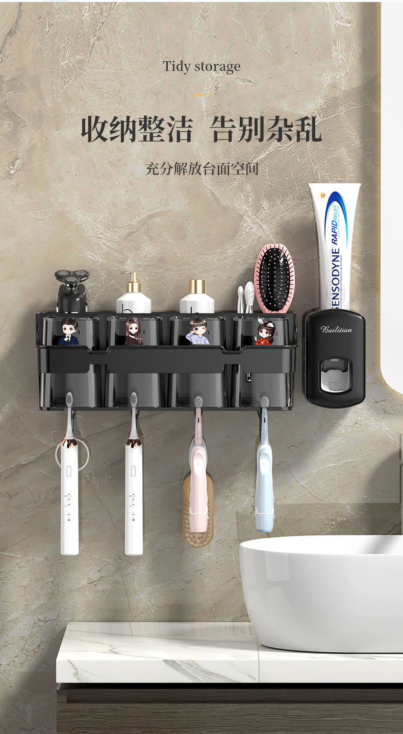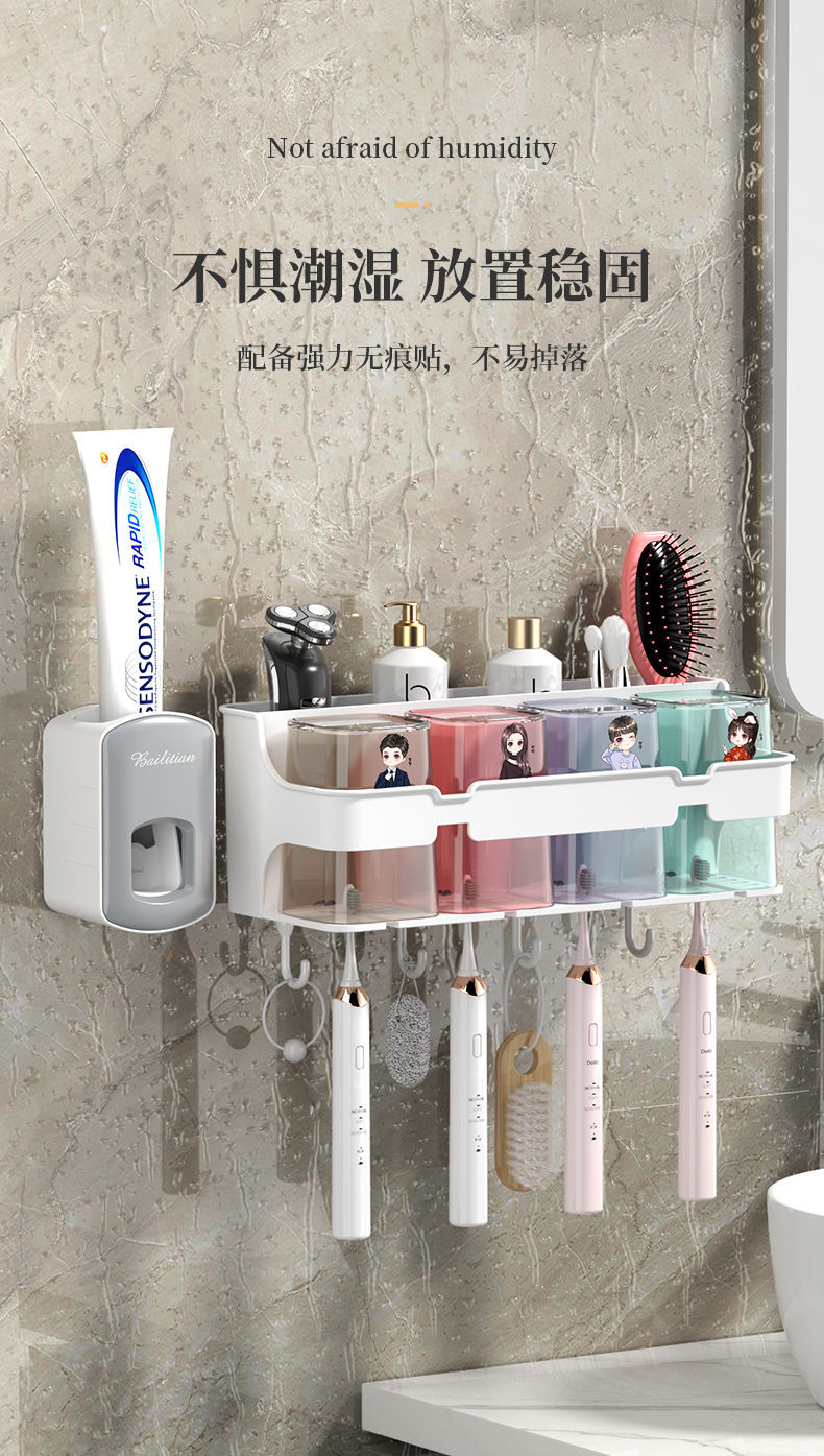 칫솔 랙 홀프리 칫솔 입 컵 화장실 치약 짜는 가정용 세척 컵 세트 Lanzhi