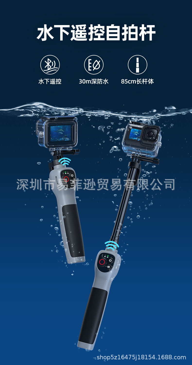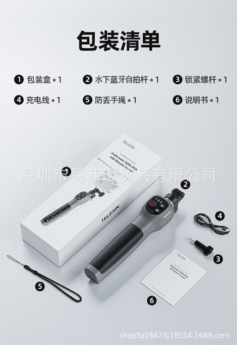 TELESIN Adaptt GoPro12/11/10 수중 원격 제어 셀카 스틱 30 m 방수 다이빙 블루투스 셀카 스틱스토어 가기