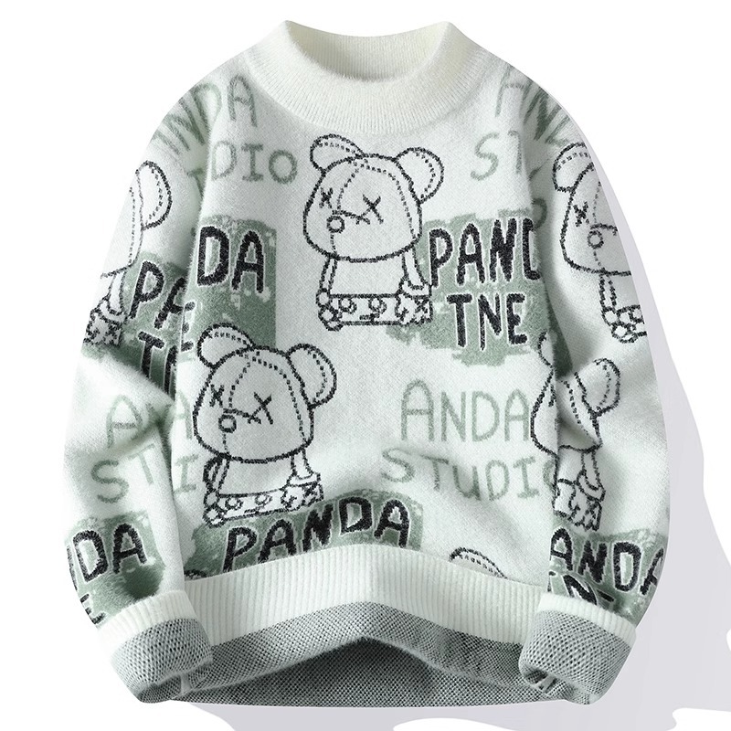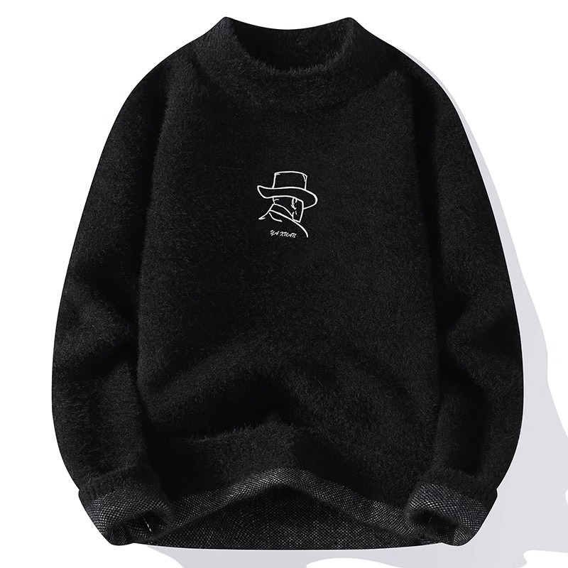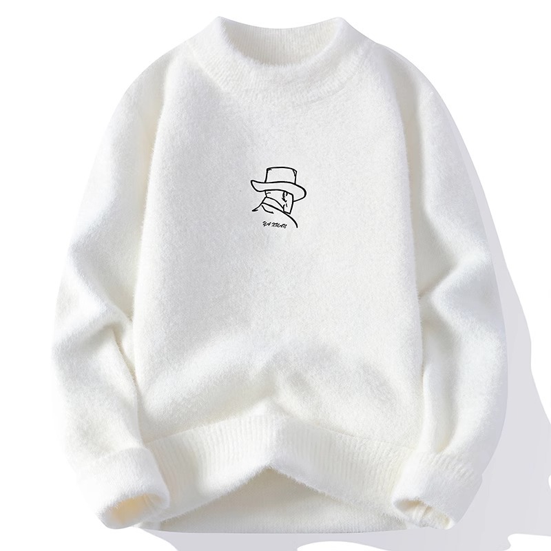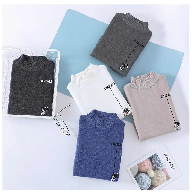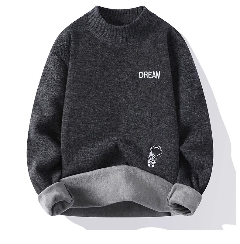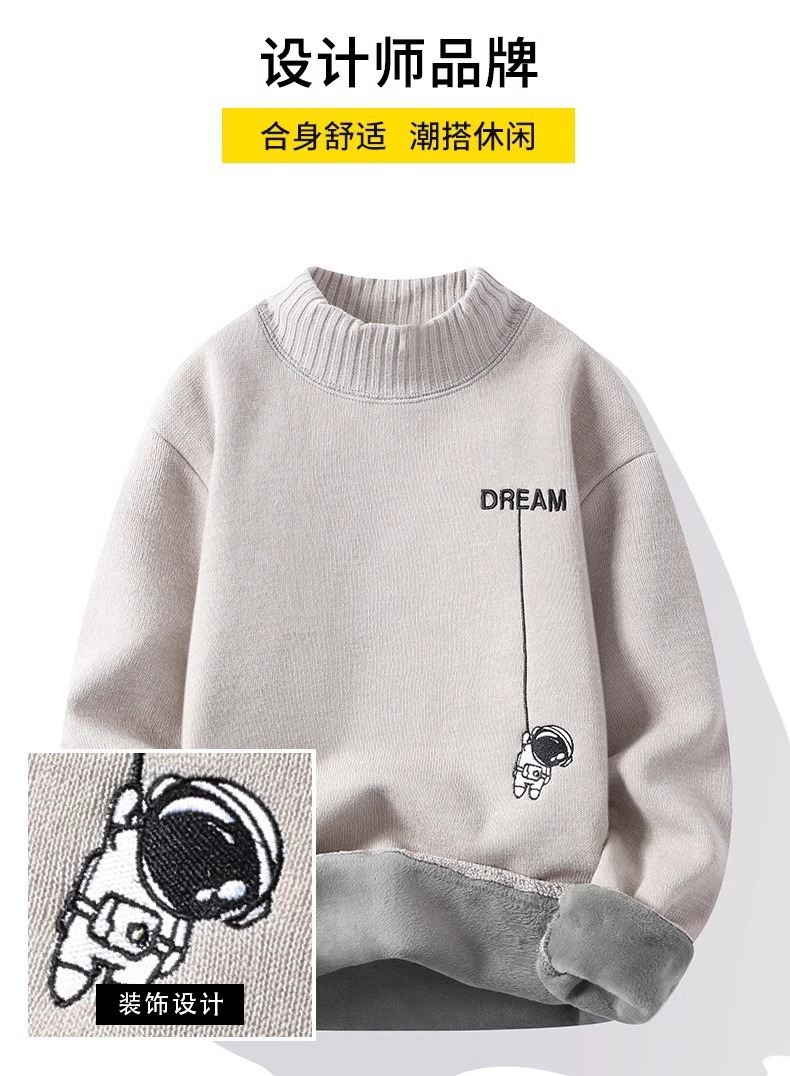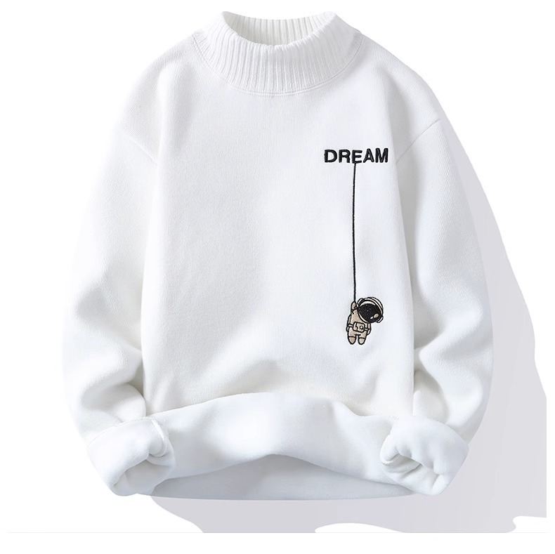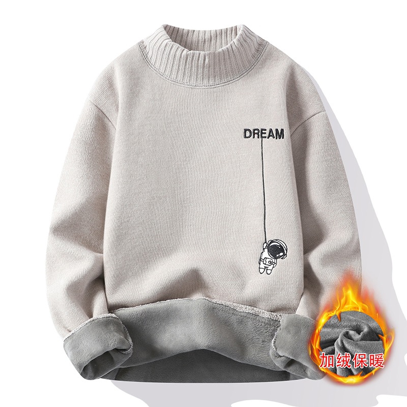 NASA 새로운 반 높이 칼라베이스 셔츠 남자의 가을과 겨울 화이트 스웨터 기모 두꺼운 따뜻한 학생 니트 셔츠