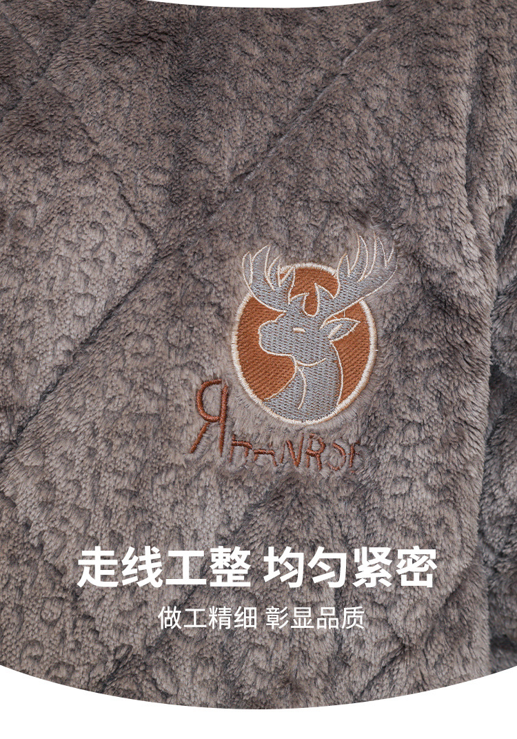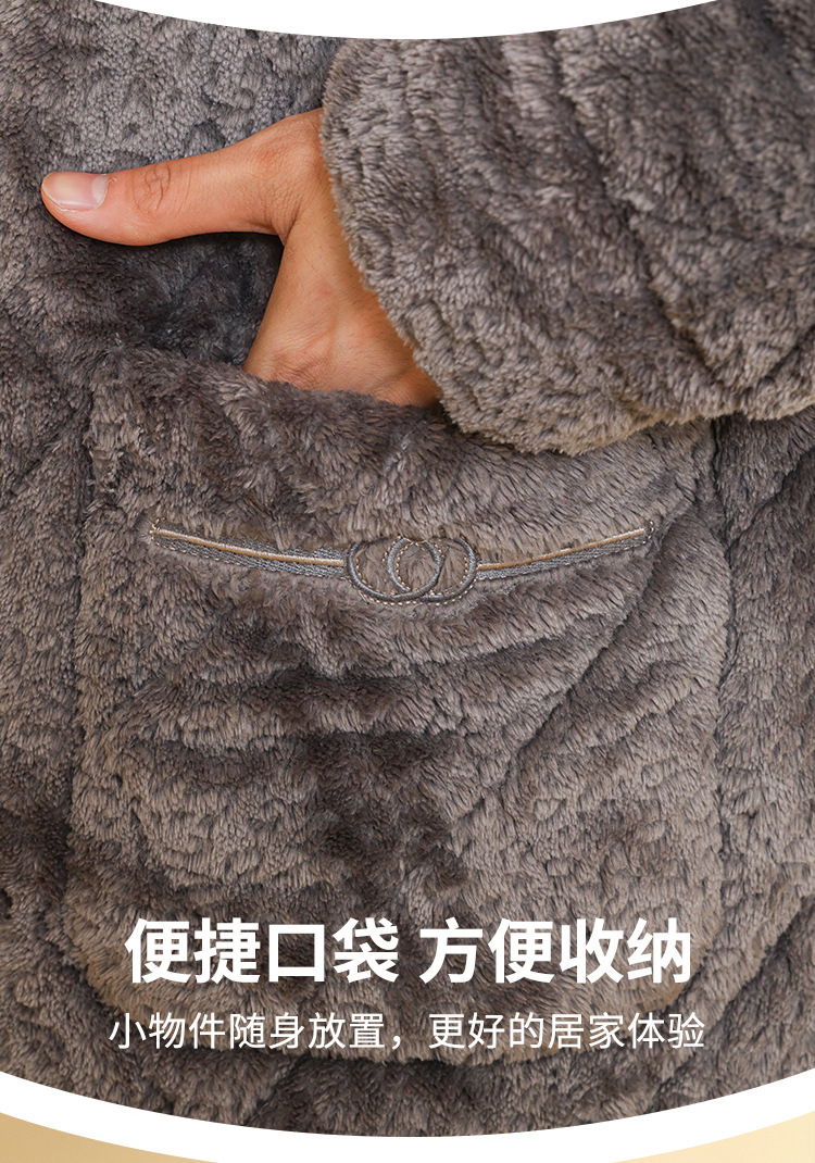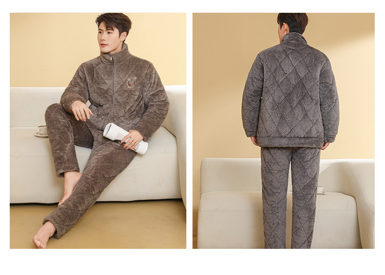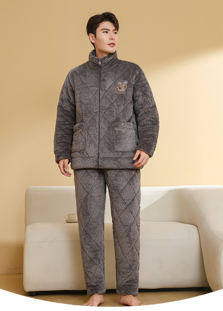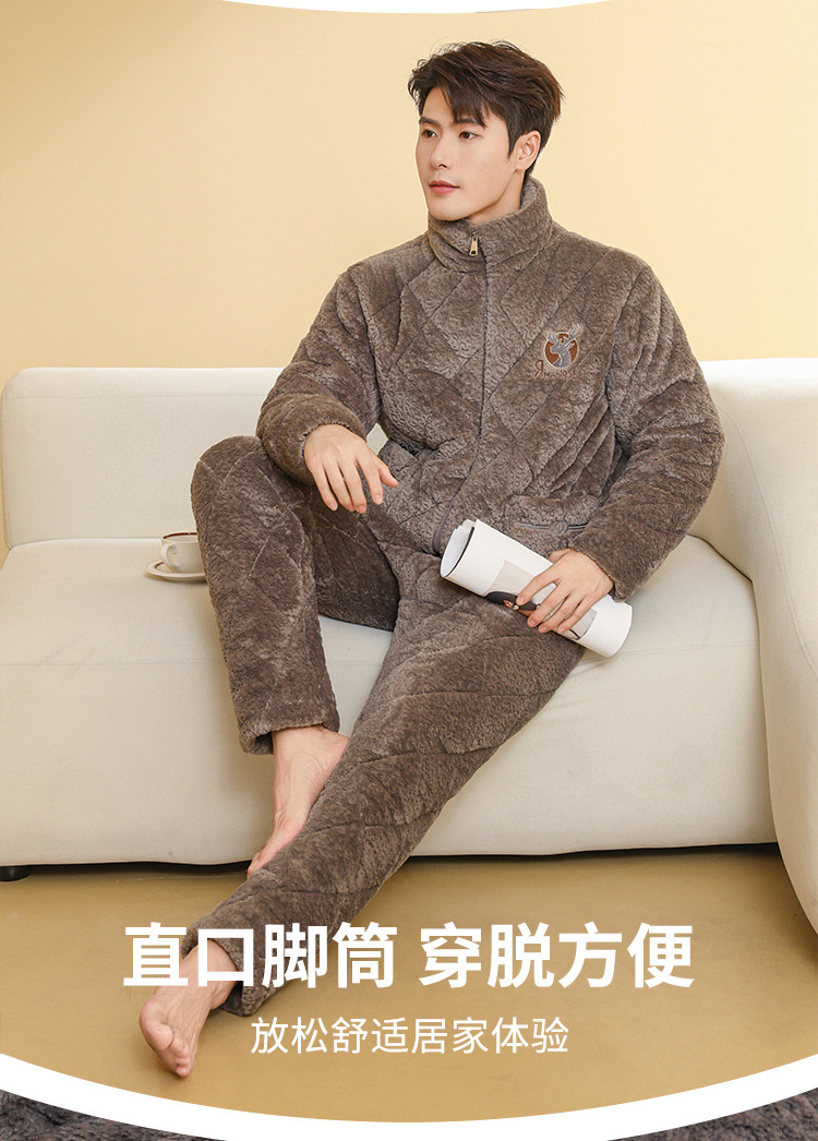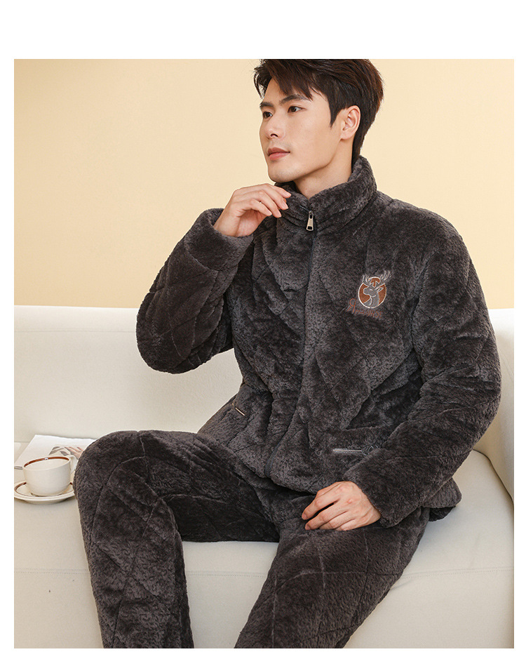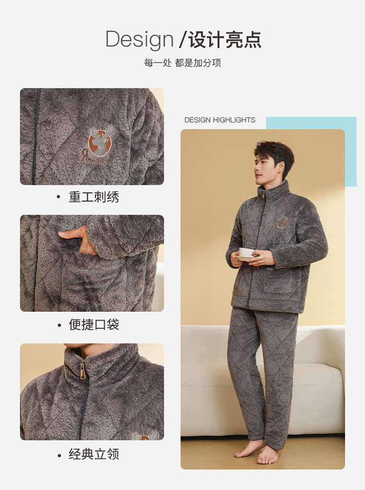 Ba Manzi 남자의 가을과 겨울 새로운 잠옷 수직 칼라 캐주얼 스타일 두꺼운 홈 옷 세트 어두운 간단한 따뜻한 옷