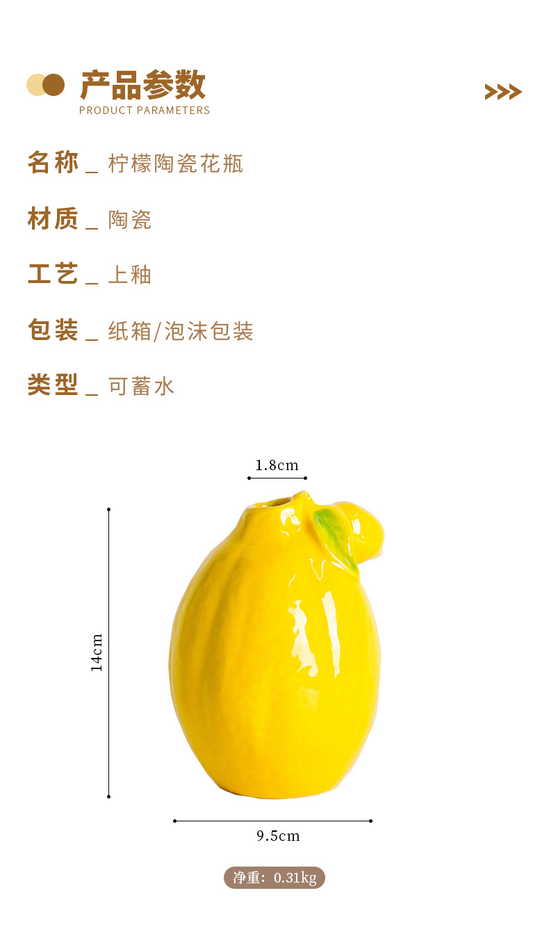 레몬 세라믹 꽃병 장식품 북유럽 식 수경 꽃 배열 간단한 현대 데스크탑 장식 공예스토어 가기