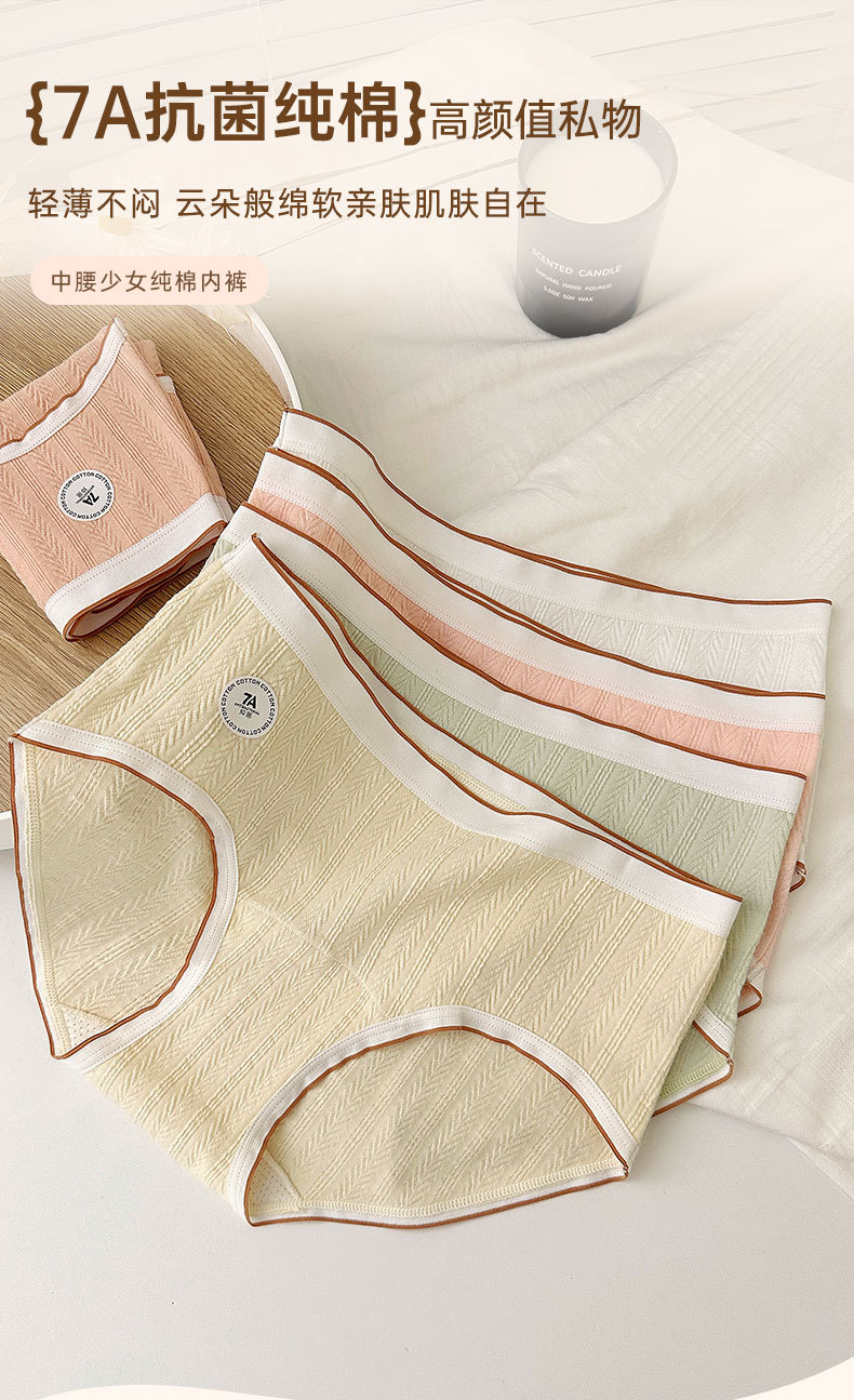 속옷 여성 면화 7A 항균 계층화 된 Crotch Girl's Traceless Mid-Waist Briefs 2024 일본 반바지스토어 가기