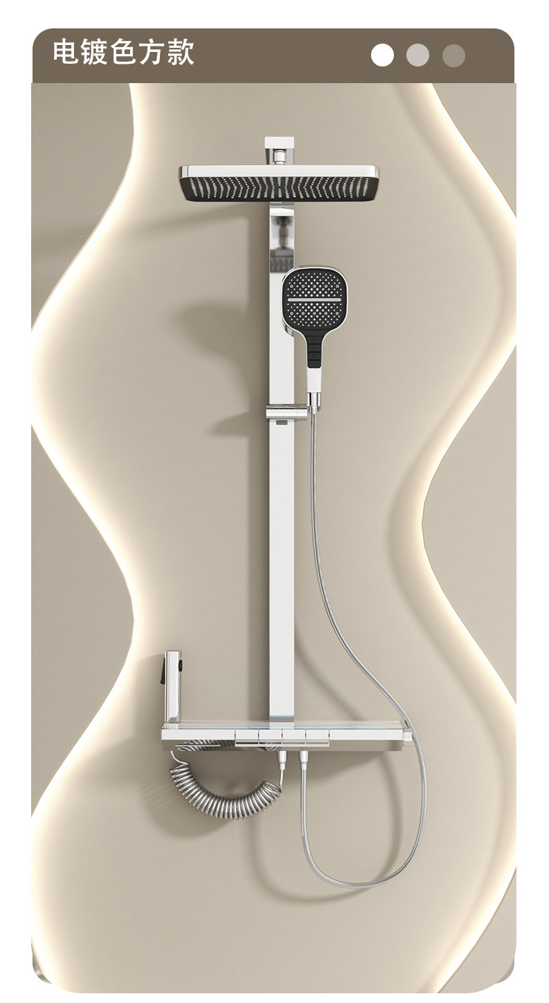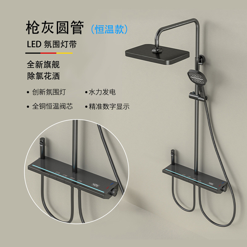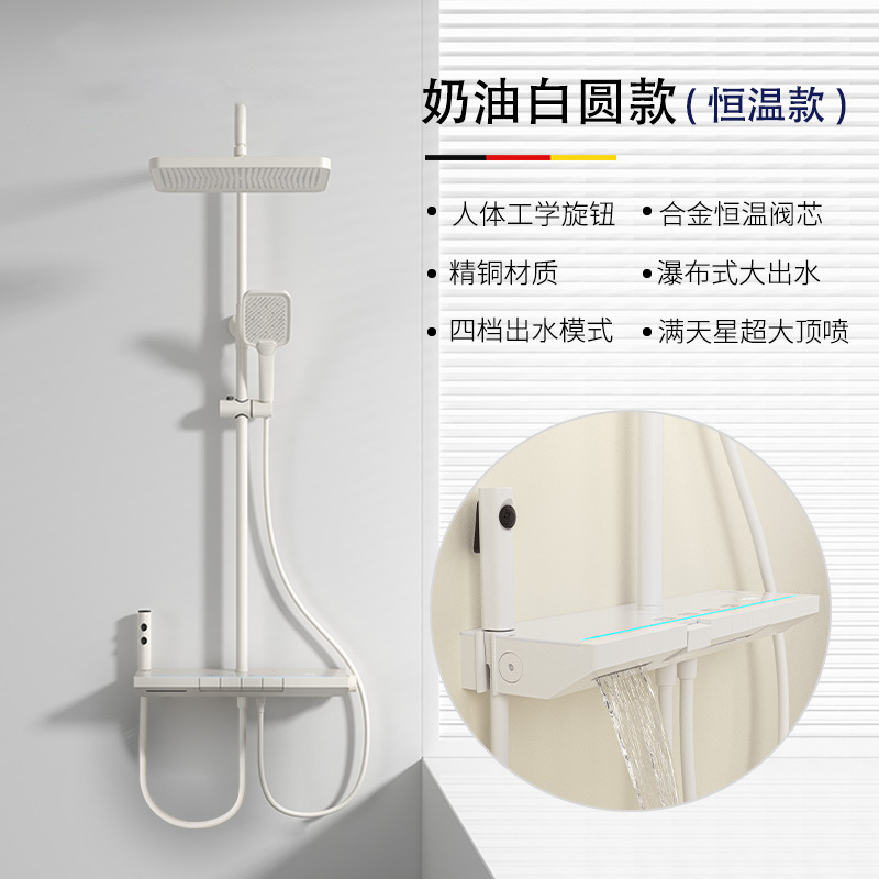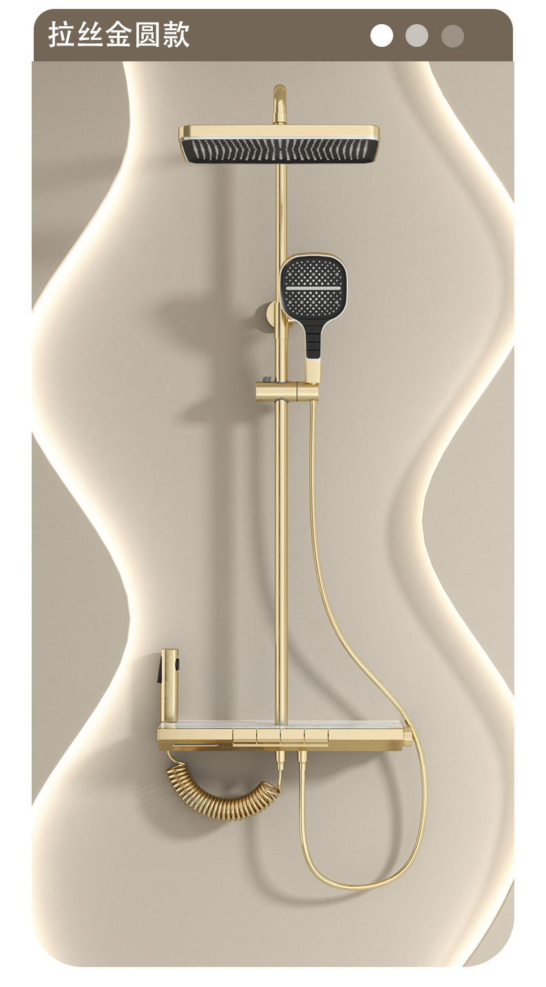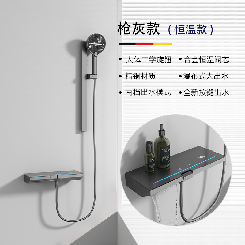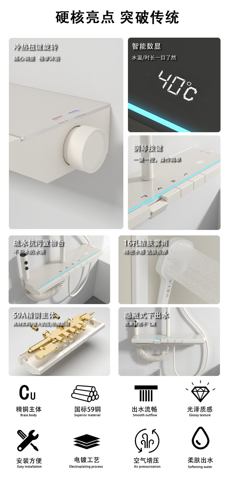 4 개의 기능 필터링 일정한 온도 샤워 세트 모든 구리 피아노 유리 저장 랙 대기 램프 디지털 디스플레이 샤워 세트