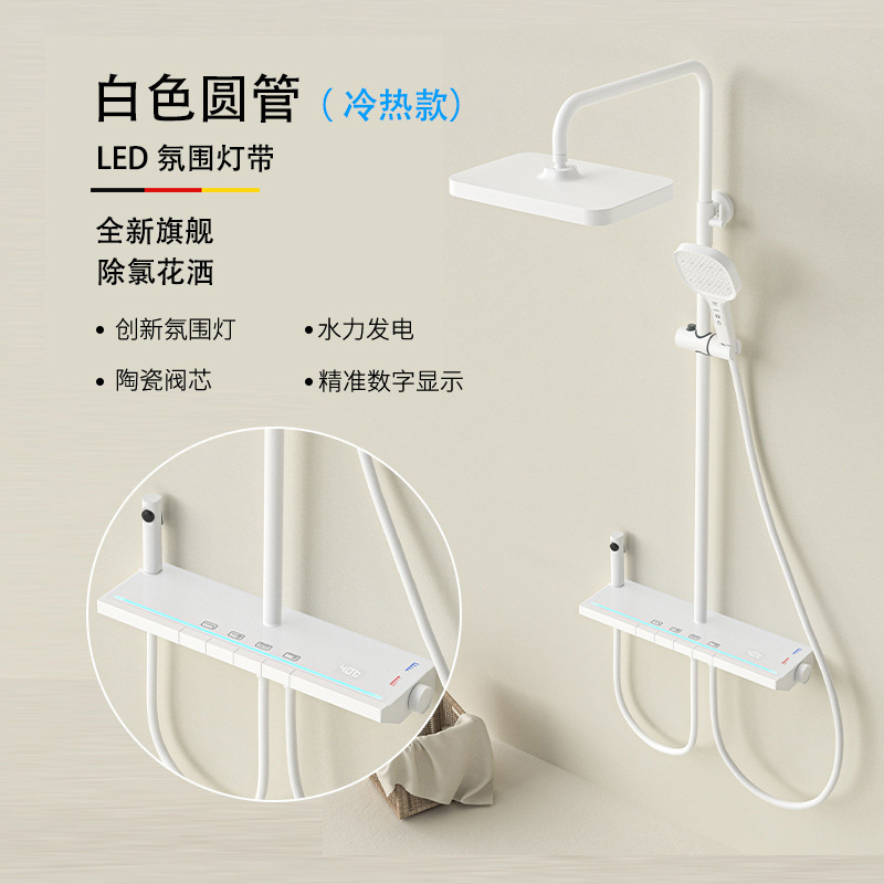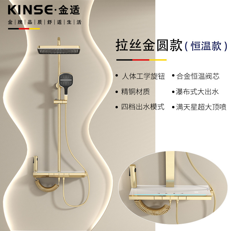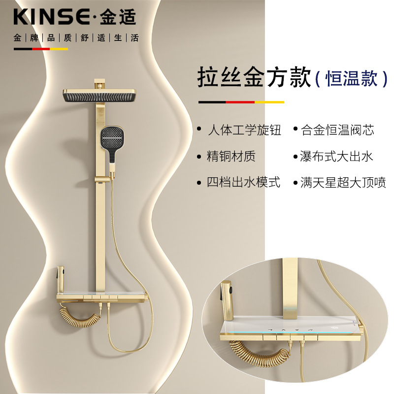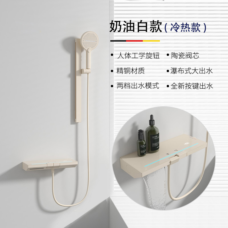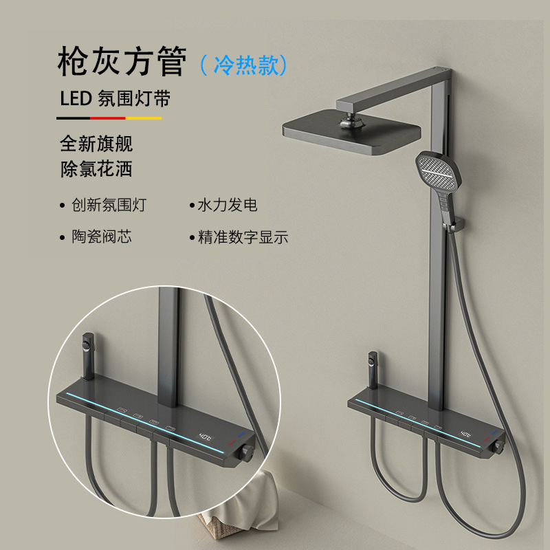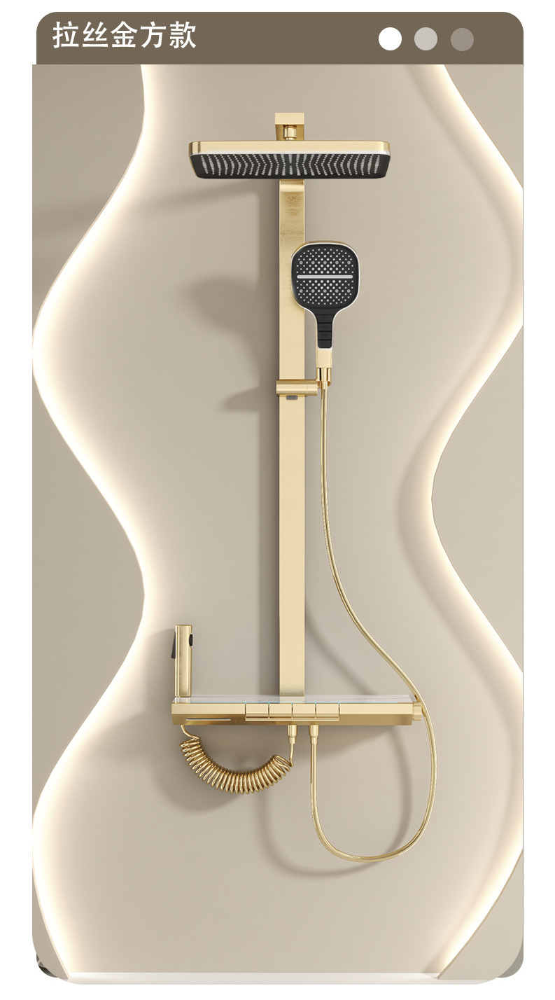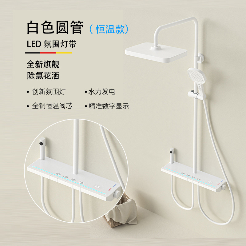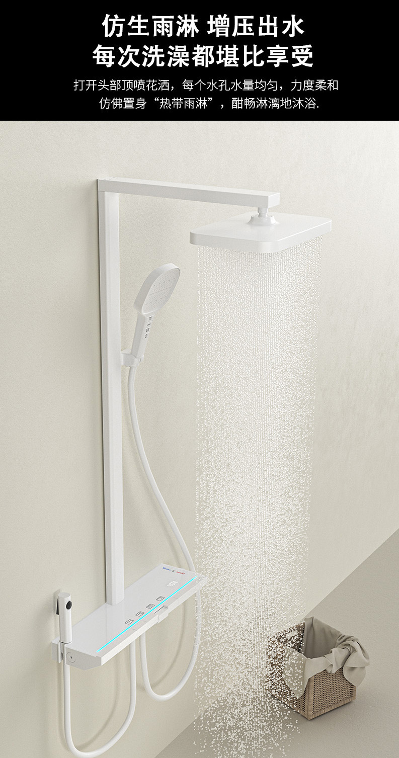 4 개의 기능 필터링 일정한 온도 샤워 세트 모든 구리 피아노 유리 저장 랙 대기 램프 디지털 디스플레이 샤워 세트