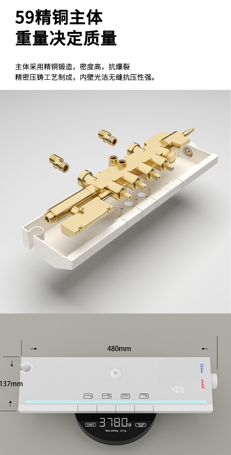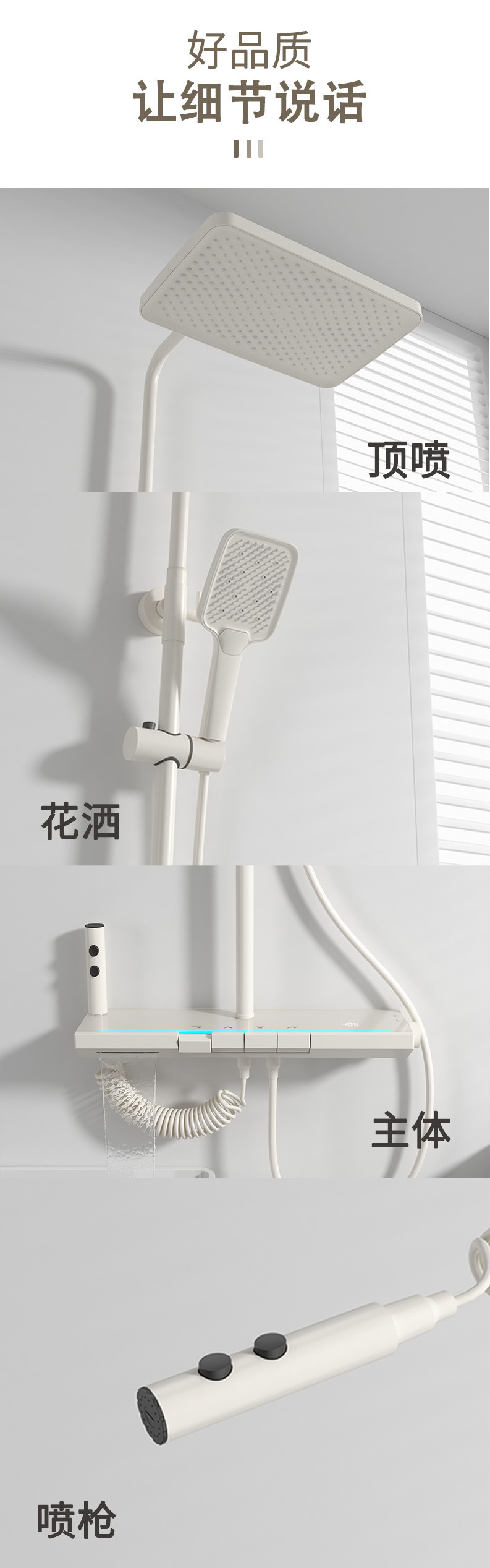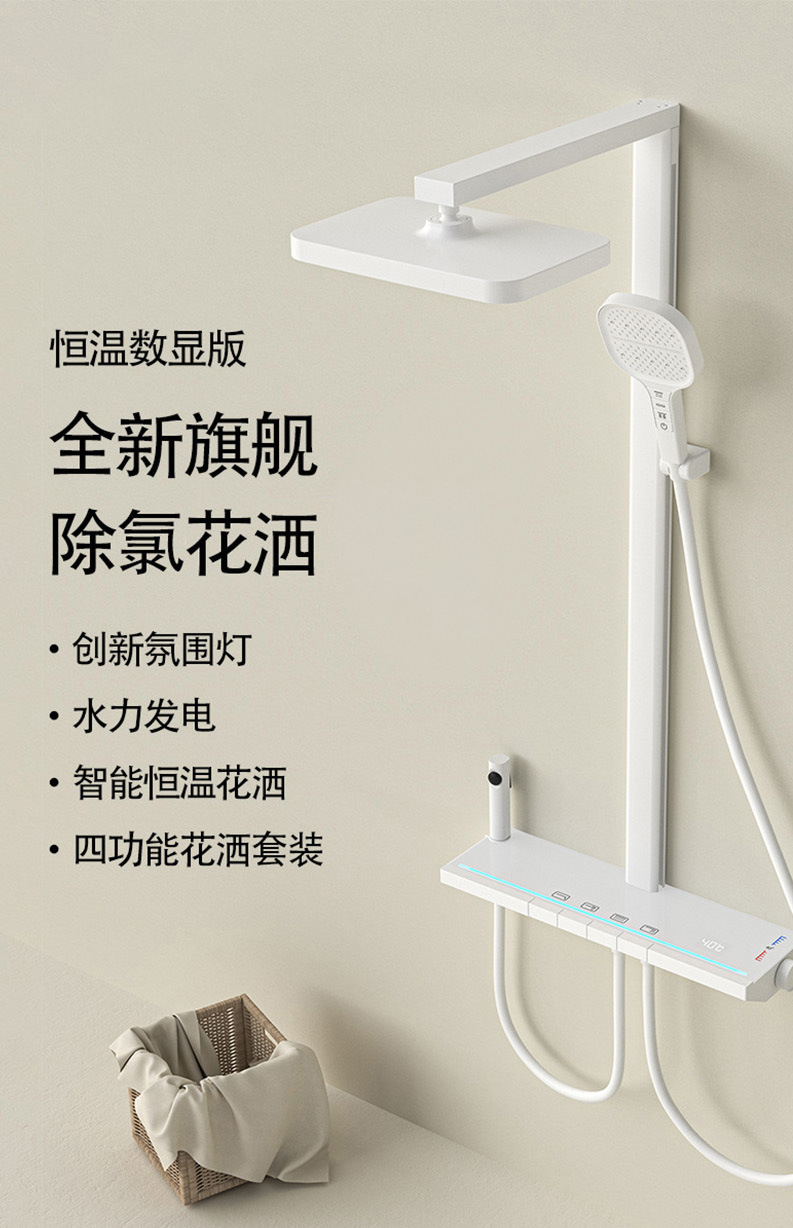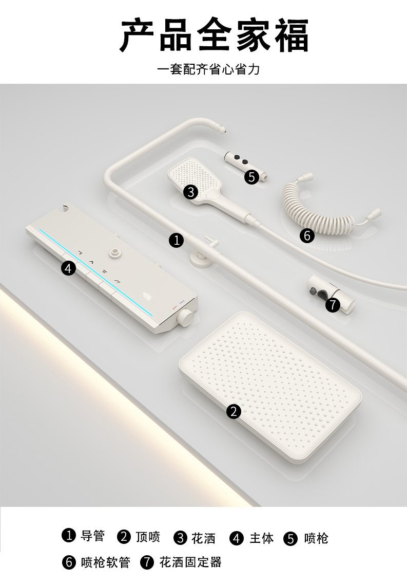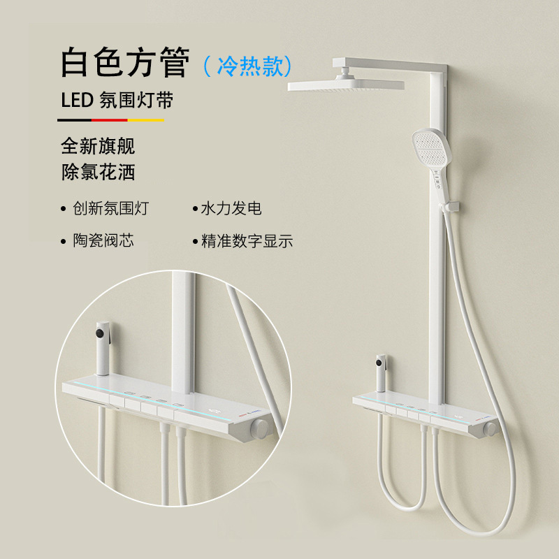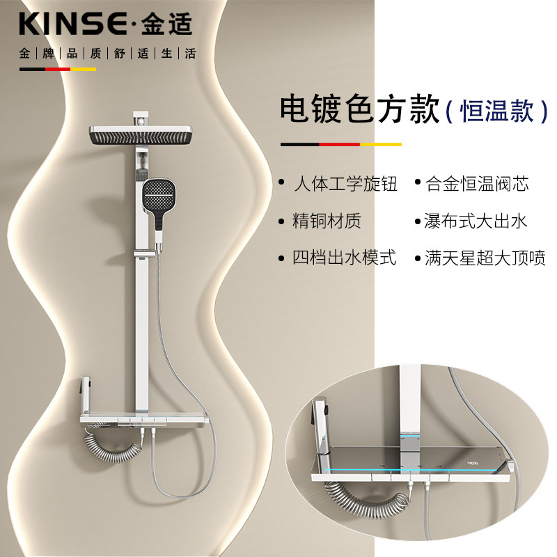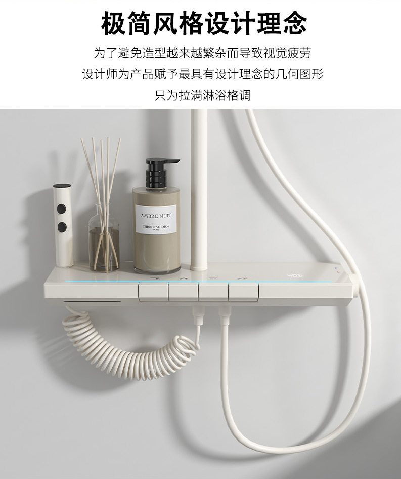 4 개의 기능 필터링 일정한 온도 샤워 세트 모든 구리 피아노 유리 저장 랙 대기 램프 디지털 디스플레이 샤워 세트