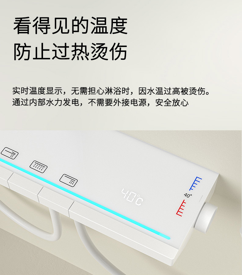 4 개의 기능 필터링 일정한 온도 샤워 세트 모든 구리 피아노 유리 저장 랙 대기 램프 디지털 디스플레이 샤워 세트스토어 가기