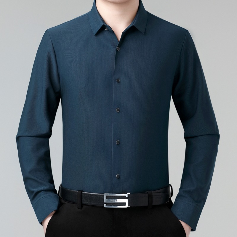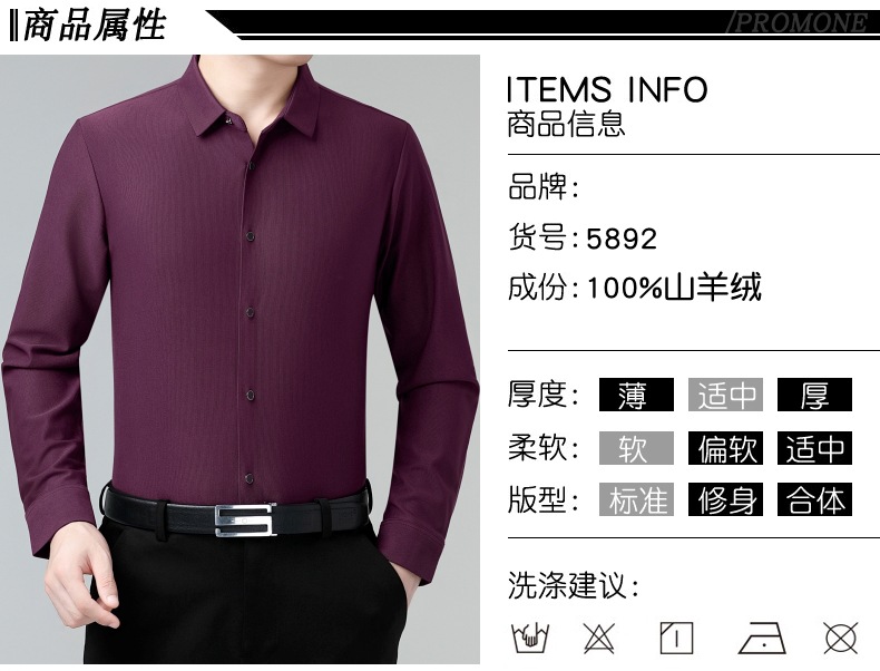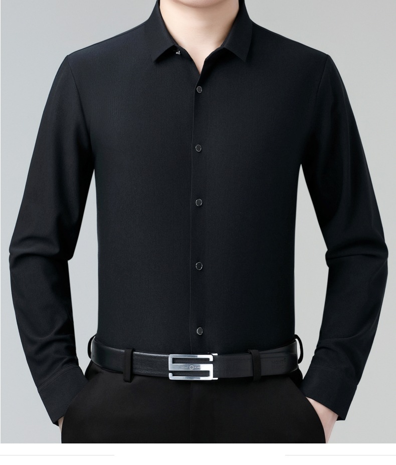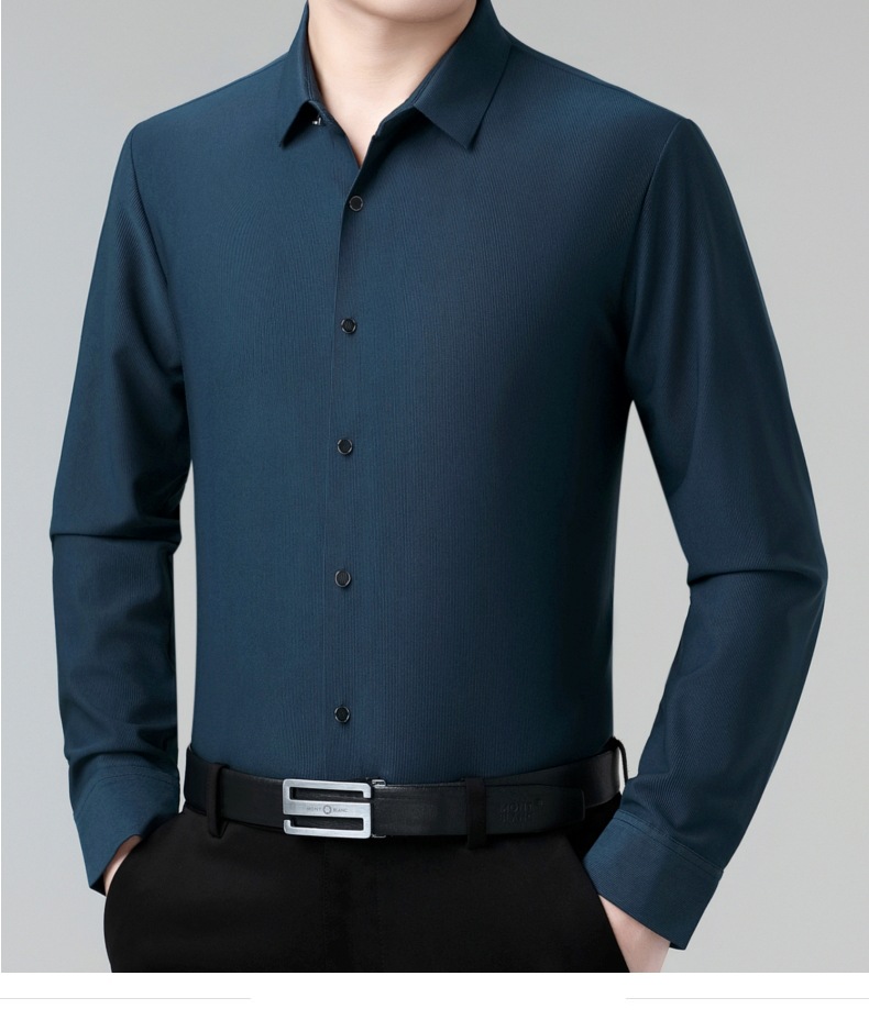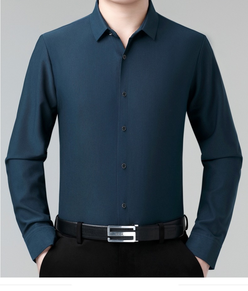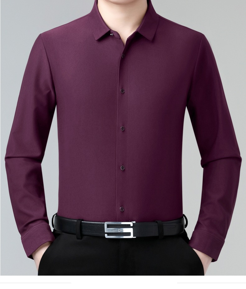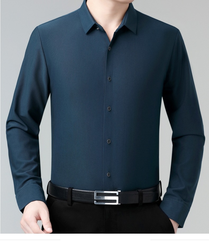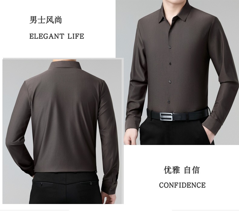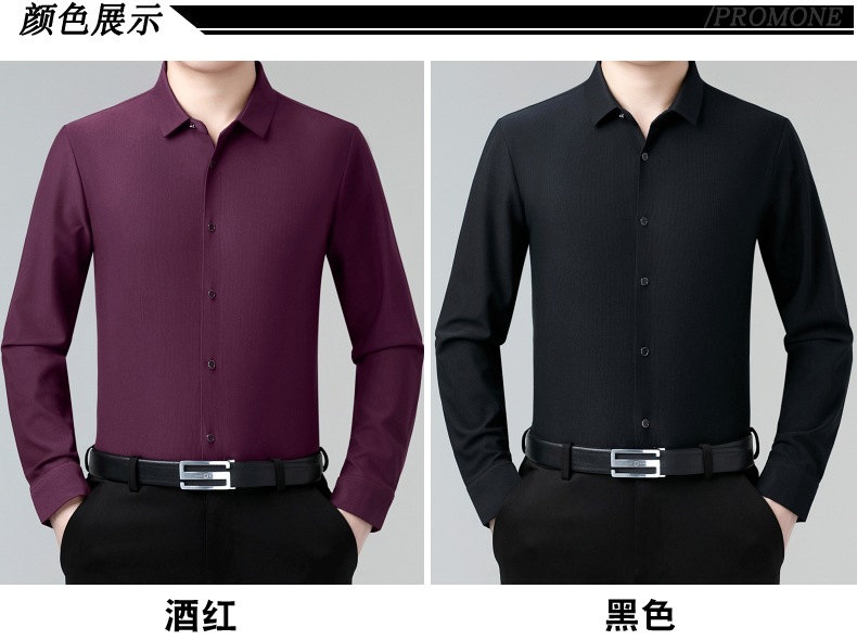 브랜드 캐시미어 하이 엔드 남성 긴팔 셔츠 중년 주름 방지 비즈니스 캐주얼 아빠 느슨한 셔츠 플러스 사이즈스토어 가기