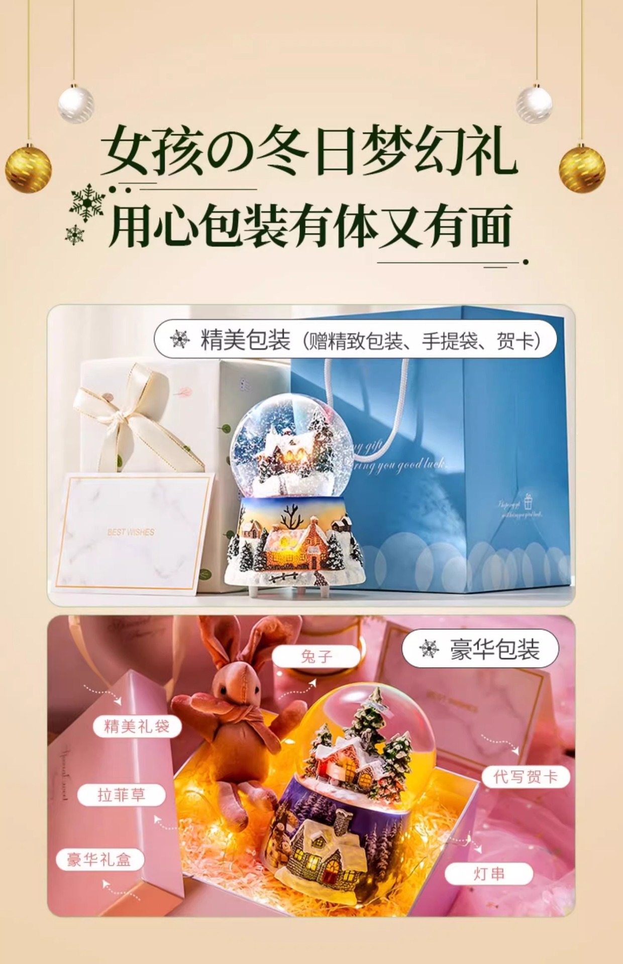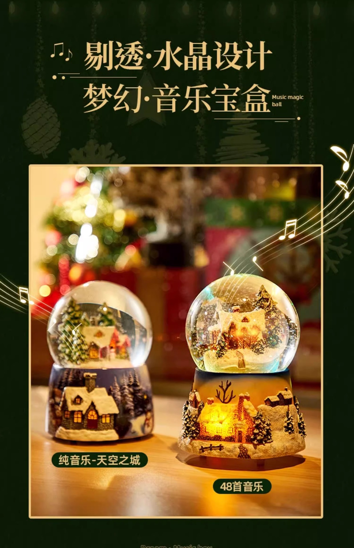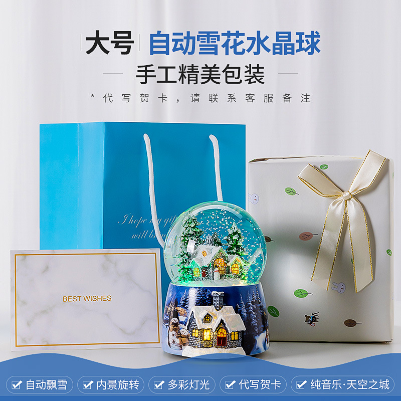 • [눈송이 수정구슬-손으로 만든 눈] 하늘의 도시 + 화려한 조명 + 클래식 포장