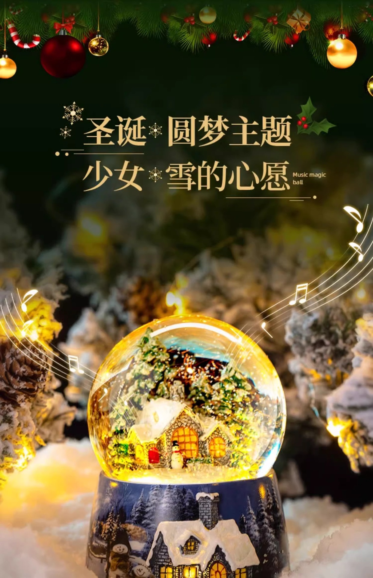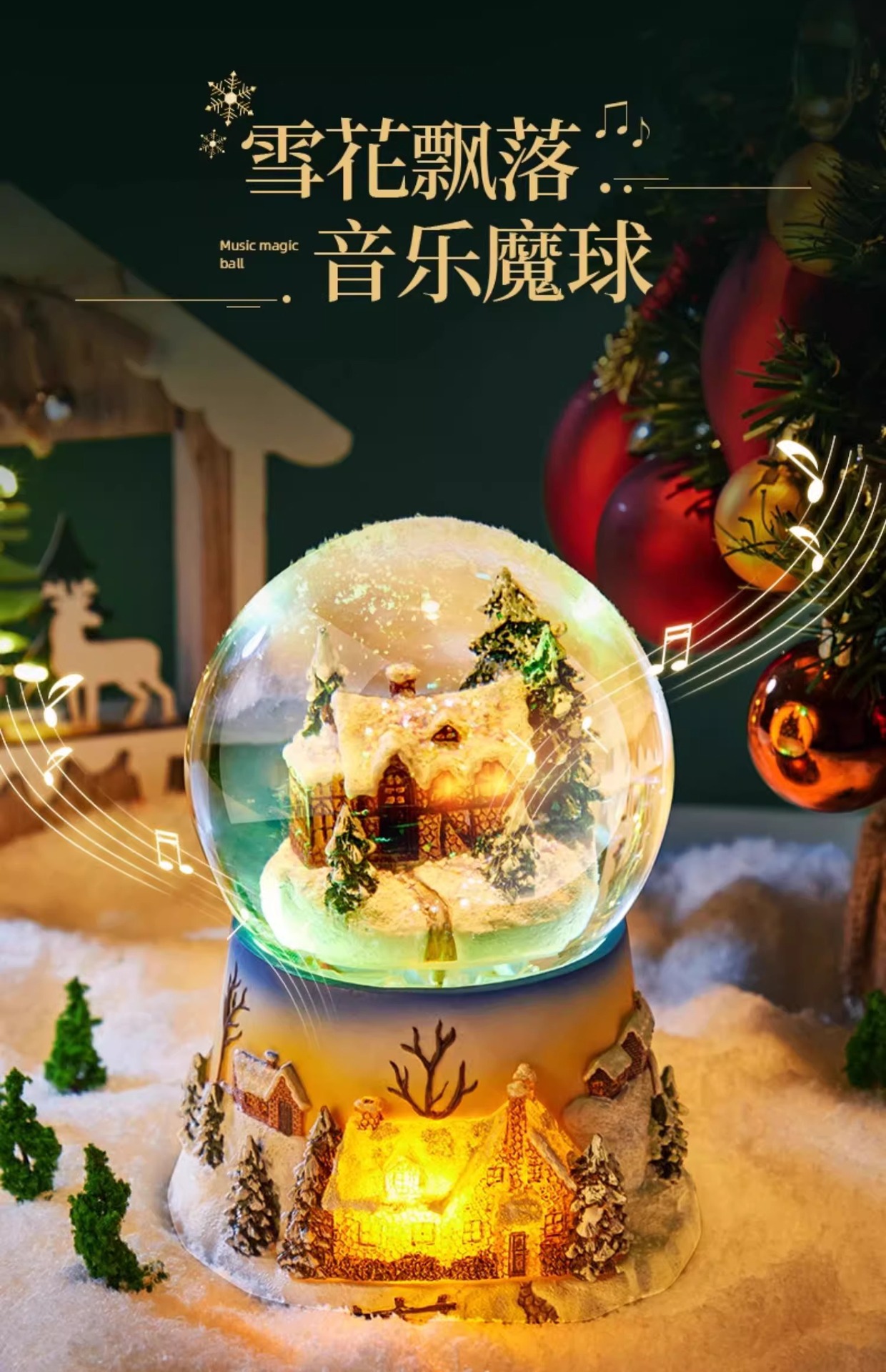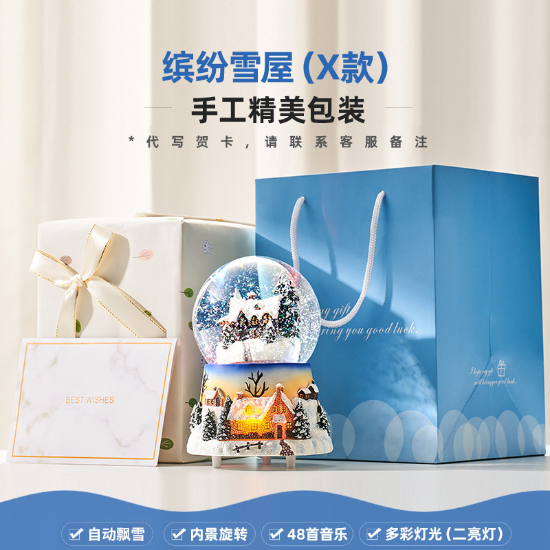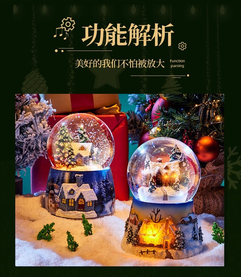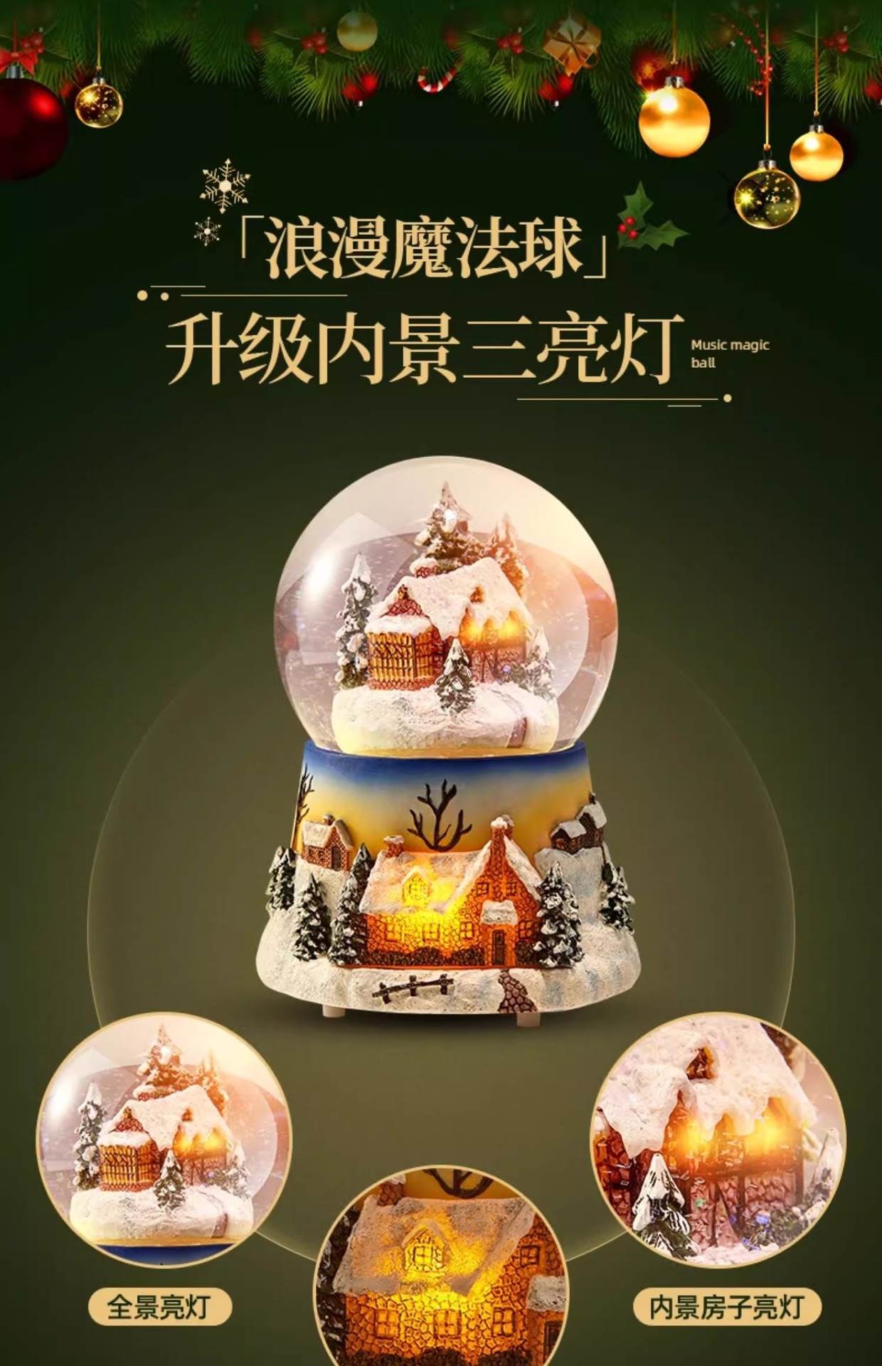 크리스마스 스노우 하우스 크리스탈 볼 라이트베이스로 자동 눈 회전 가능한 뮤직 박스 뮤직 박스 선물 유리 장식품스토어 가기