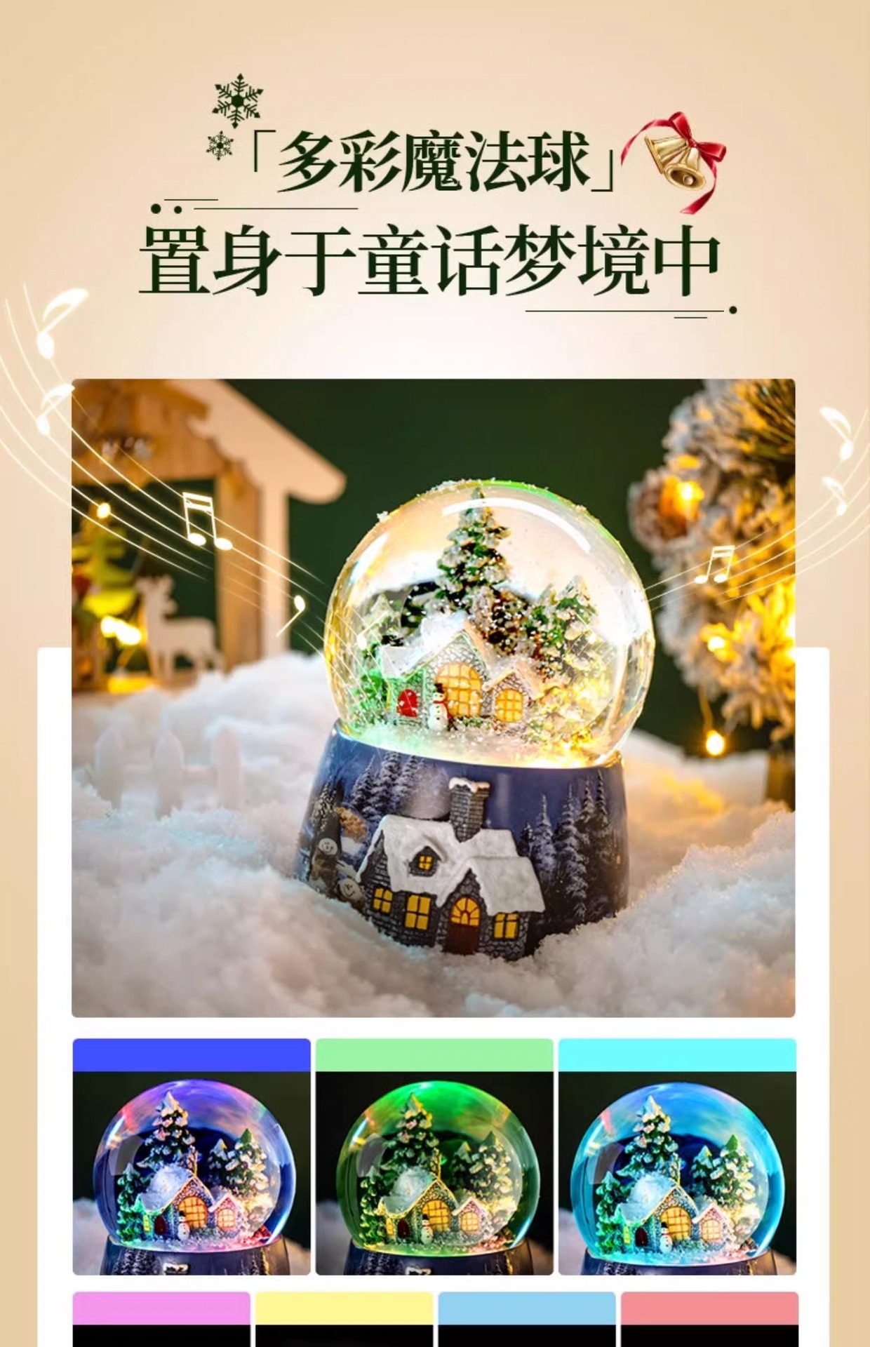 • [눈송이 수정구 - 자동 눈 내리기] 하늘의 도시 + 화려한 조명 + 내부 회전 + 절묘한 포장