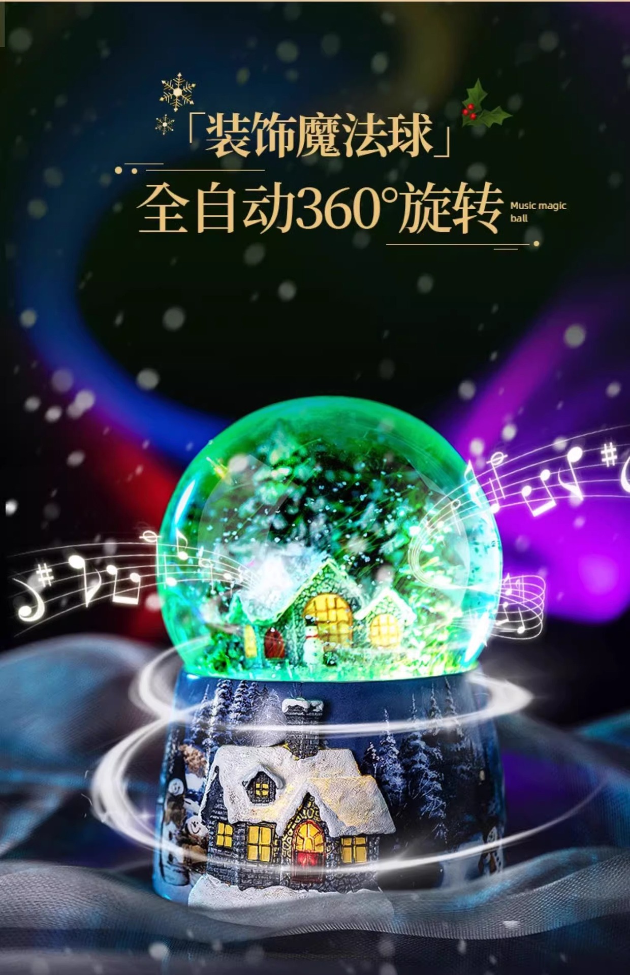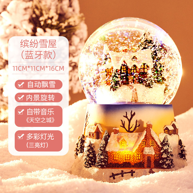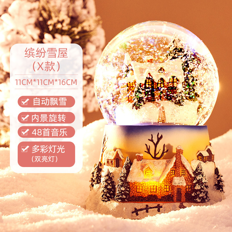 크리스마스 스노우 하우스 크리스탈 볼 라이트베이스로 자동 눈 회전 가능한 뮤직 박스 뮤직 박스 선물 유리 장식품