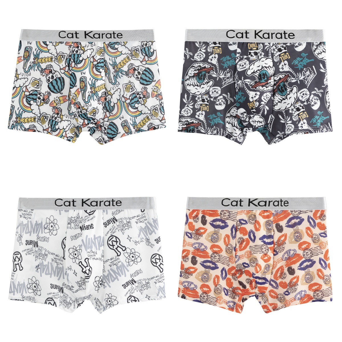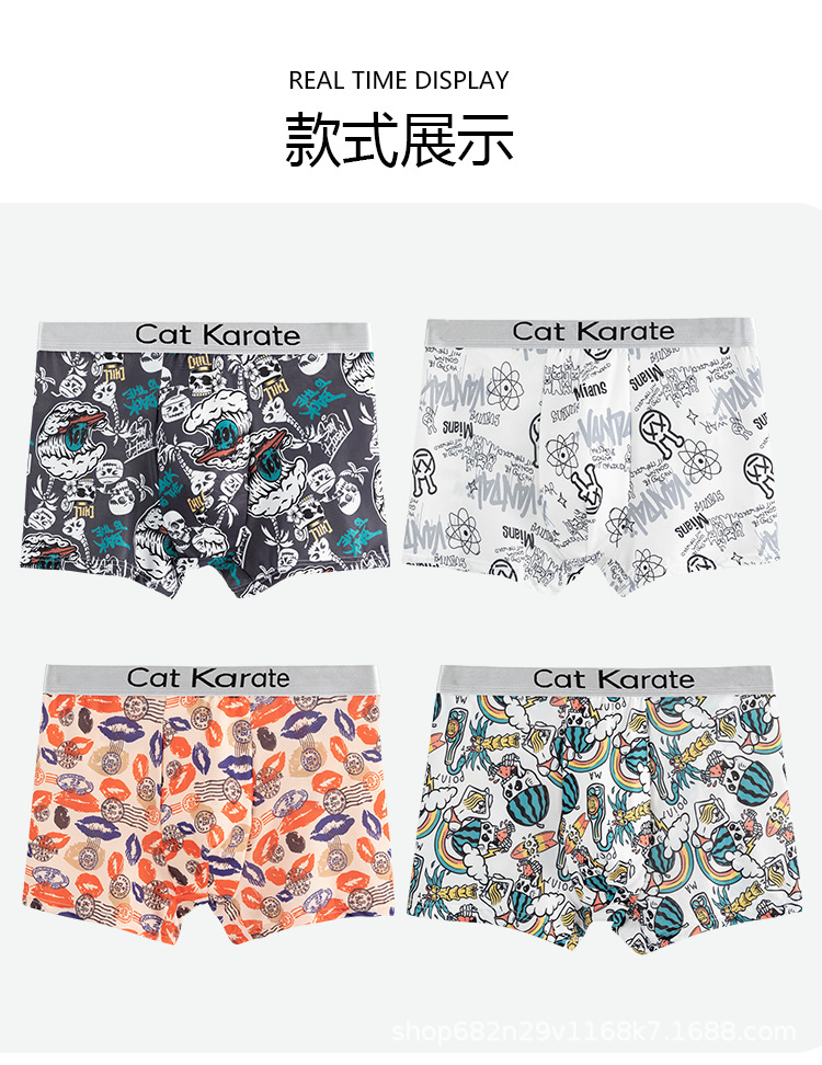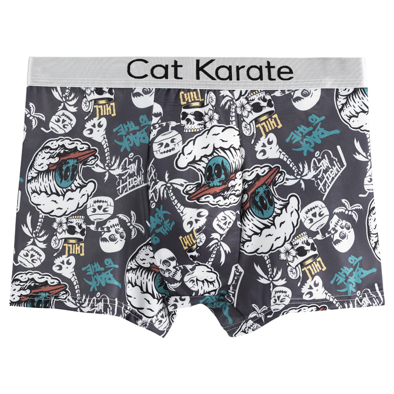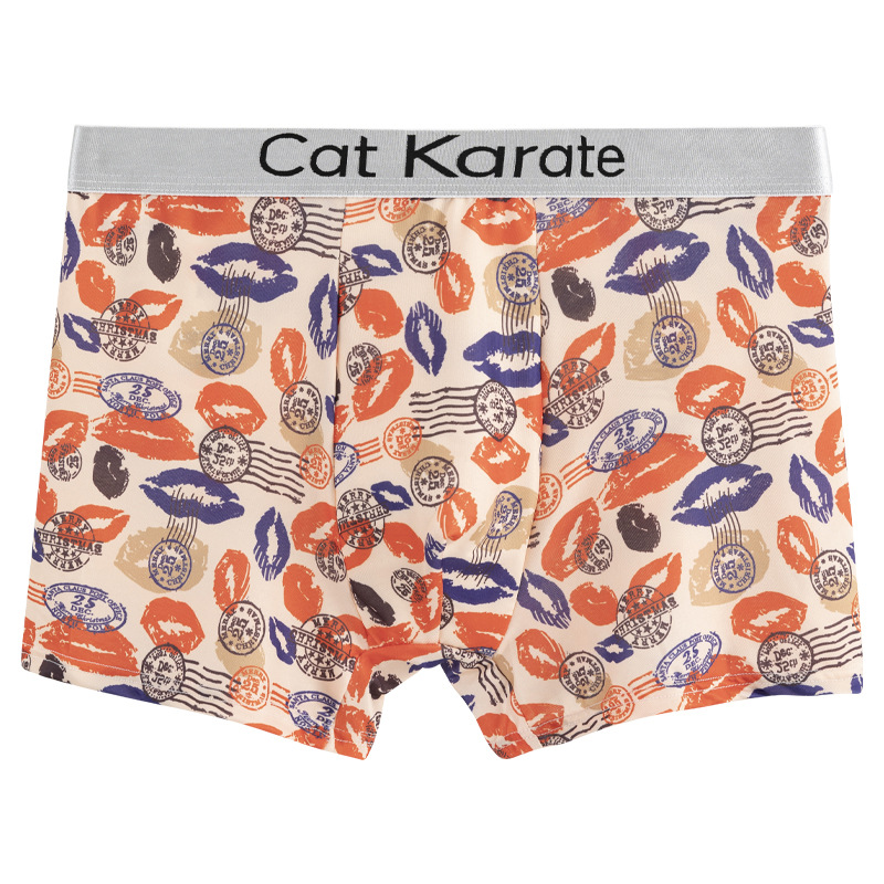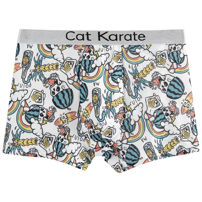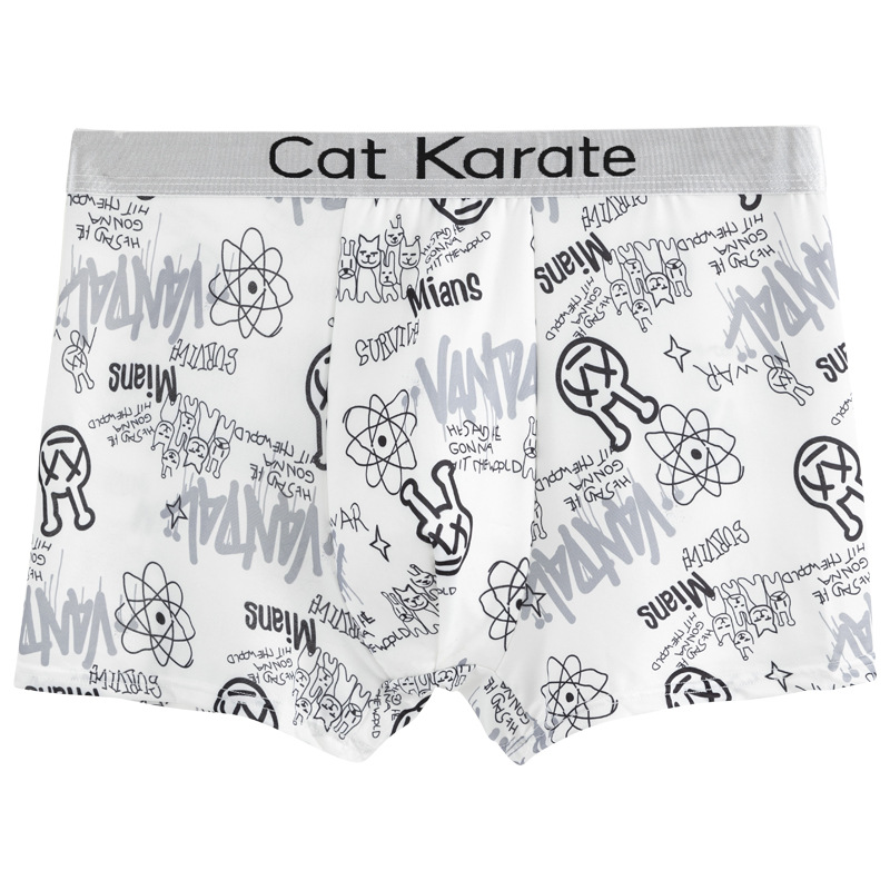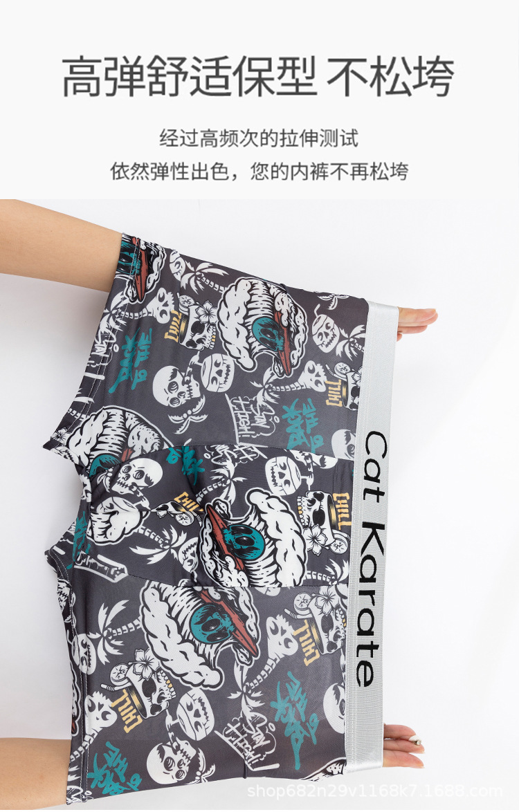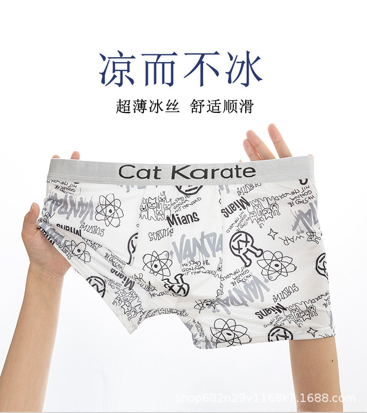 남성 속옷 복서 여름 아이스 실크 인쇄 편안한 편지 벨트 복서 남성 청소년 플러스 사이즈 복서