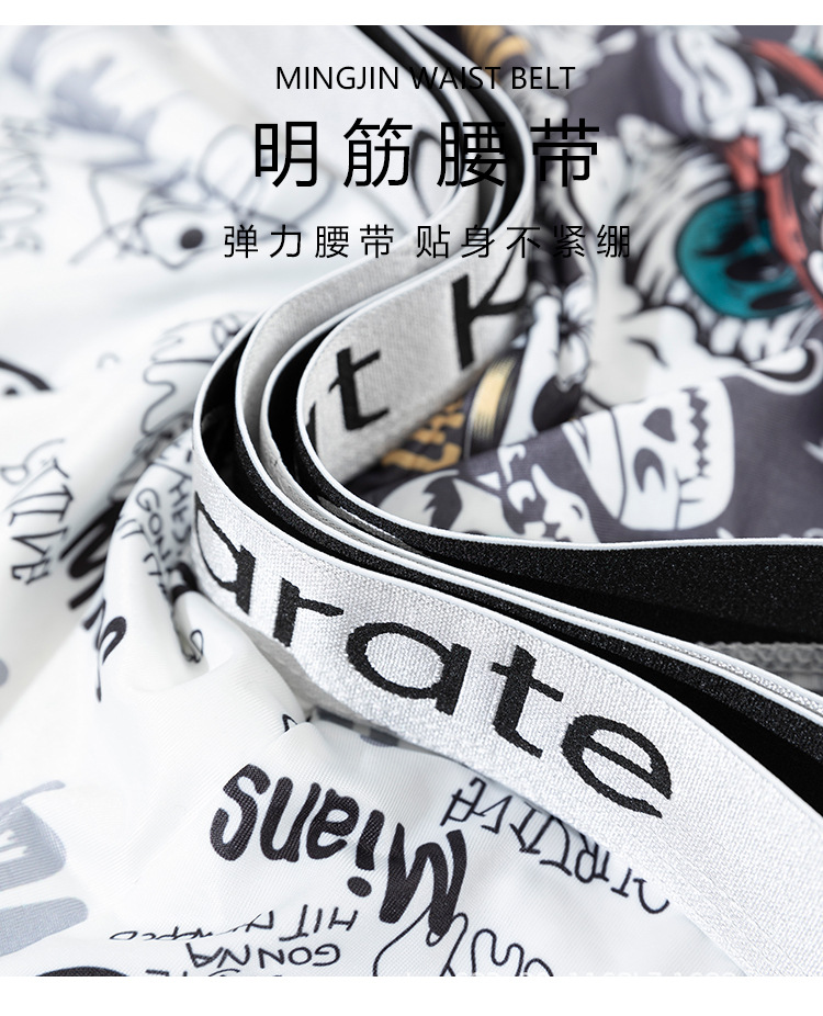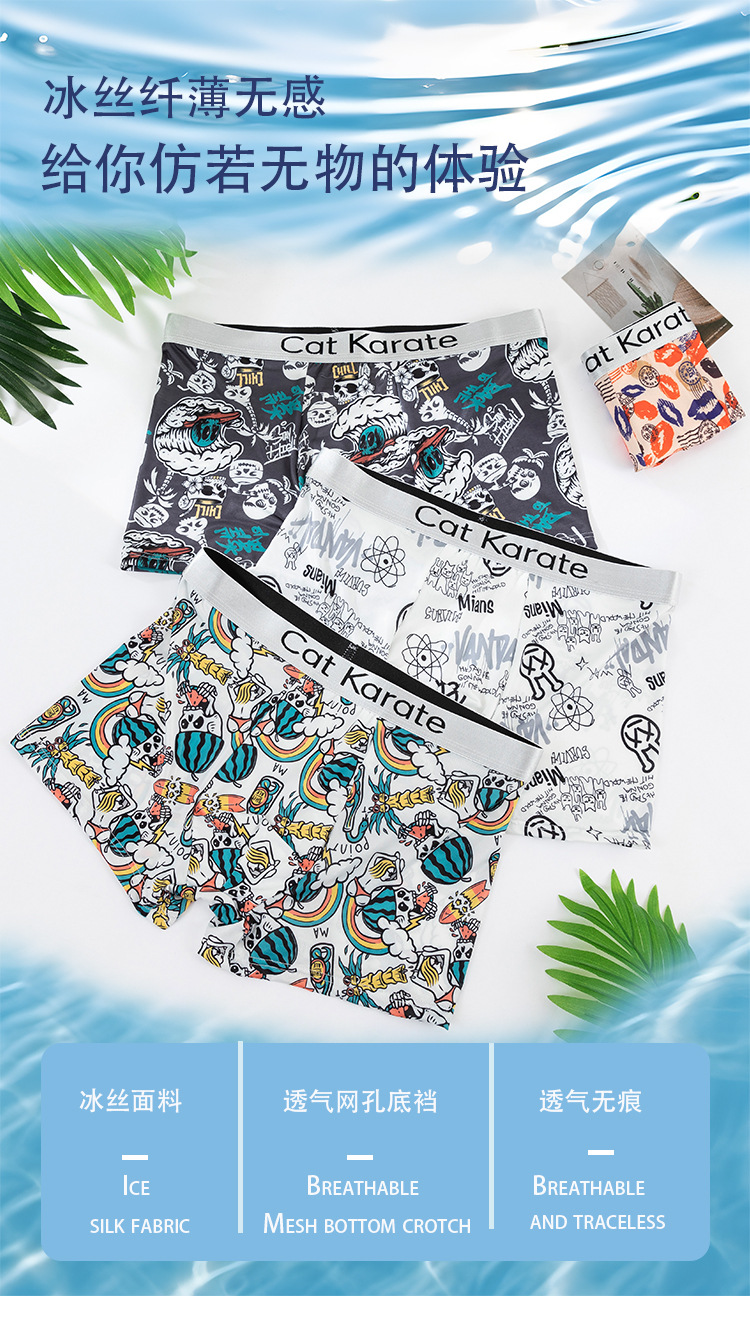 남성 속옷 복서 여름 아이스 실크 인쇄 편안한 편지 벨트 복서 남성 청소년 플러스 사이즈 복서스토어 가기
