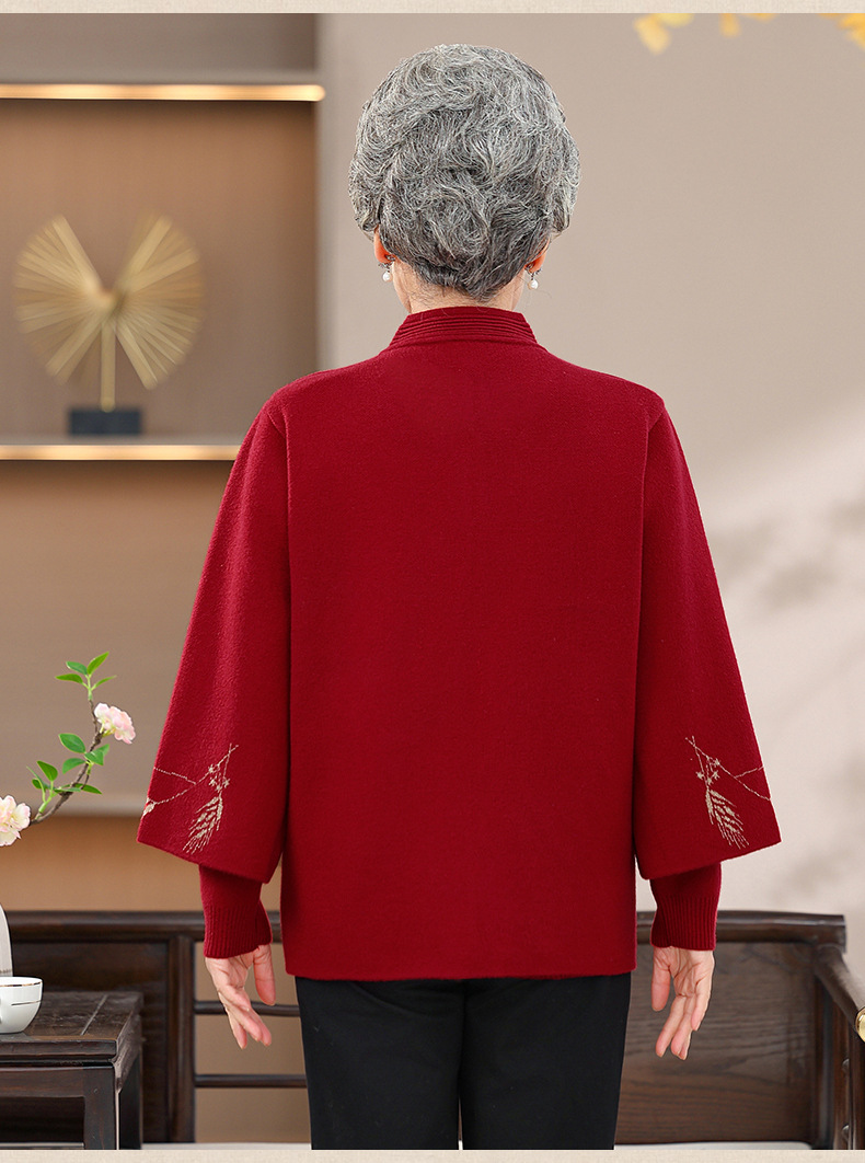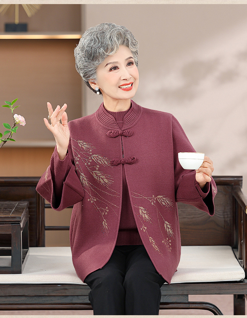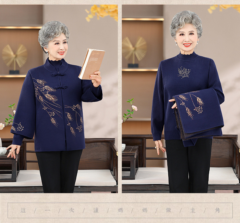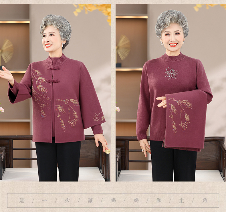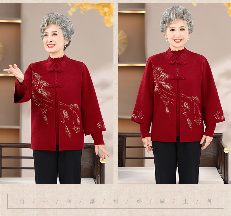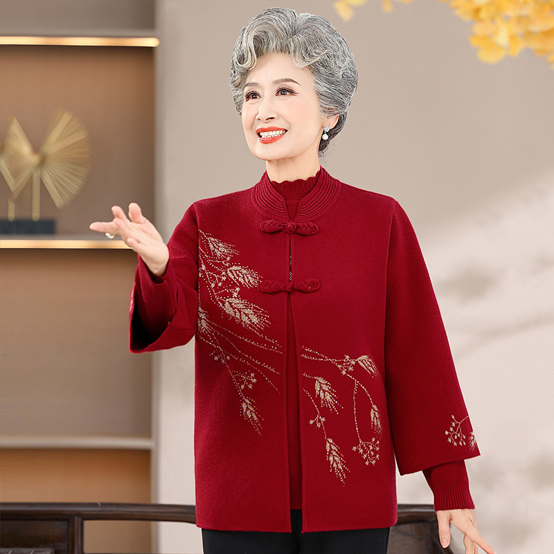 외국 스타일의 어머니 가을과 겨울 투피스 모직베이스 셔츠 카디건 코트 할머니 시어머니 스웨터 플러스 사이즈 코트