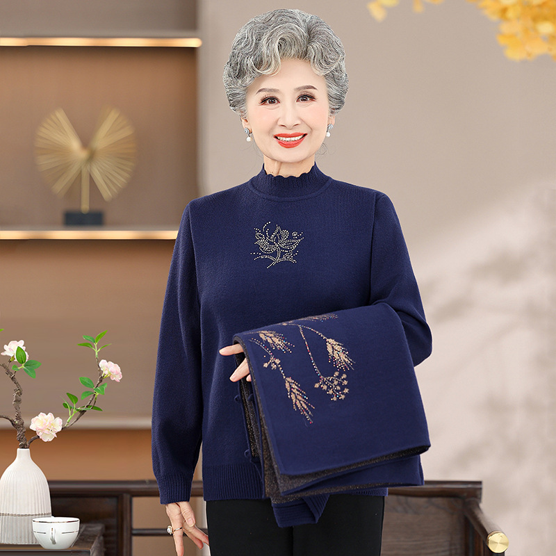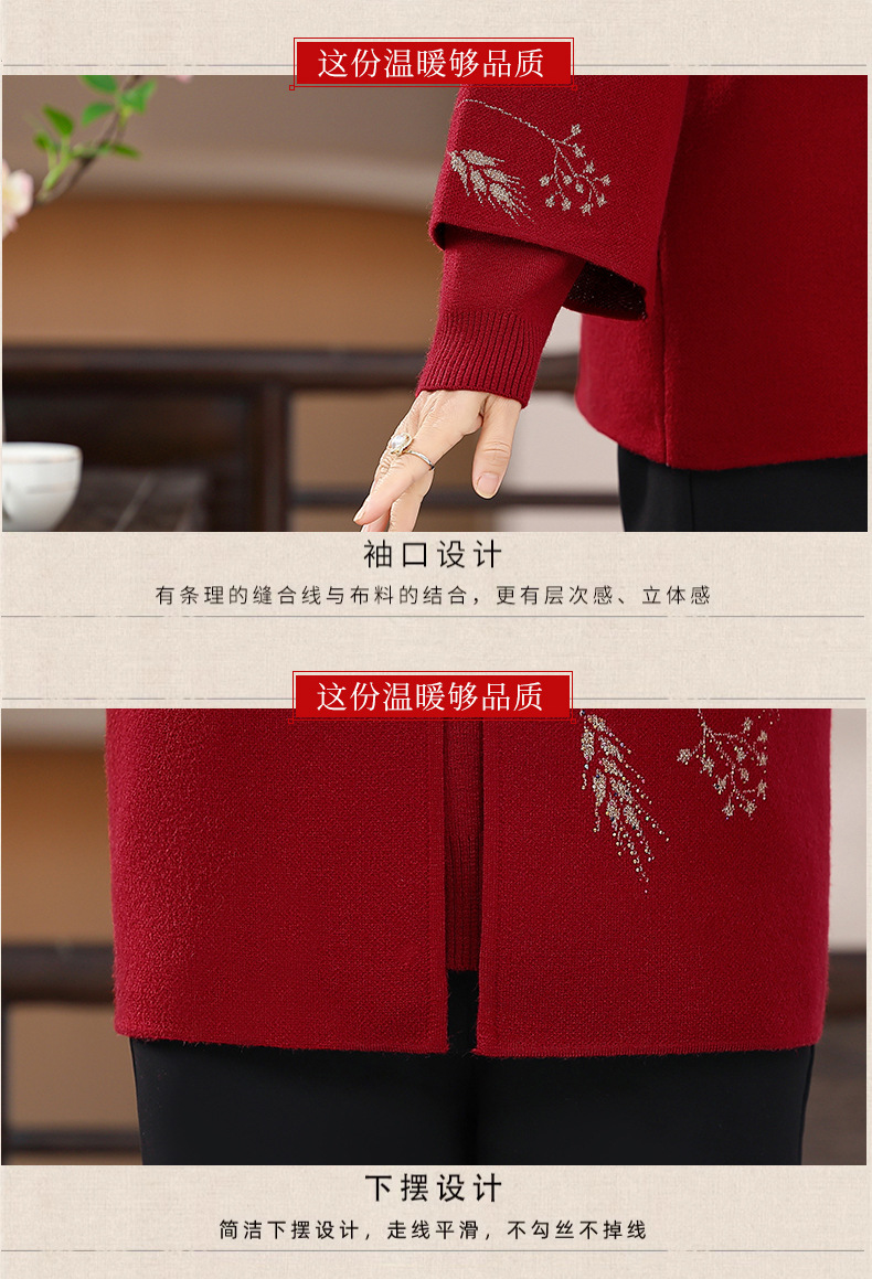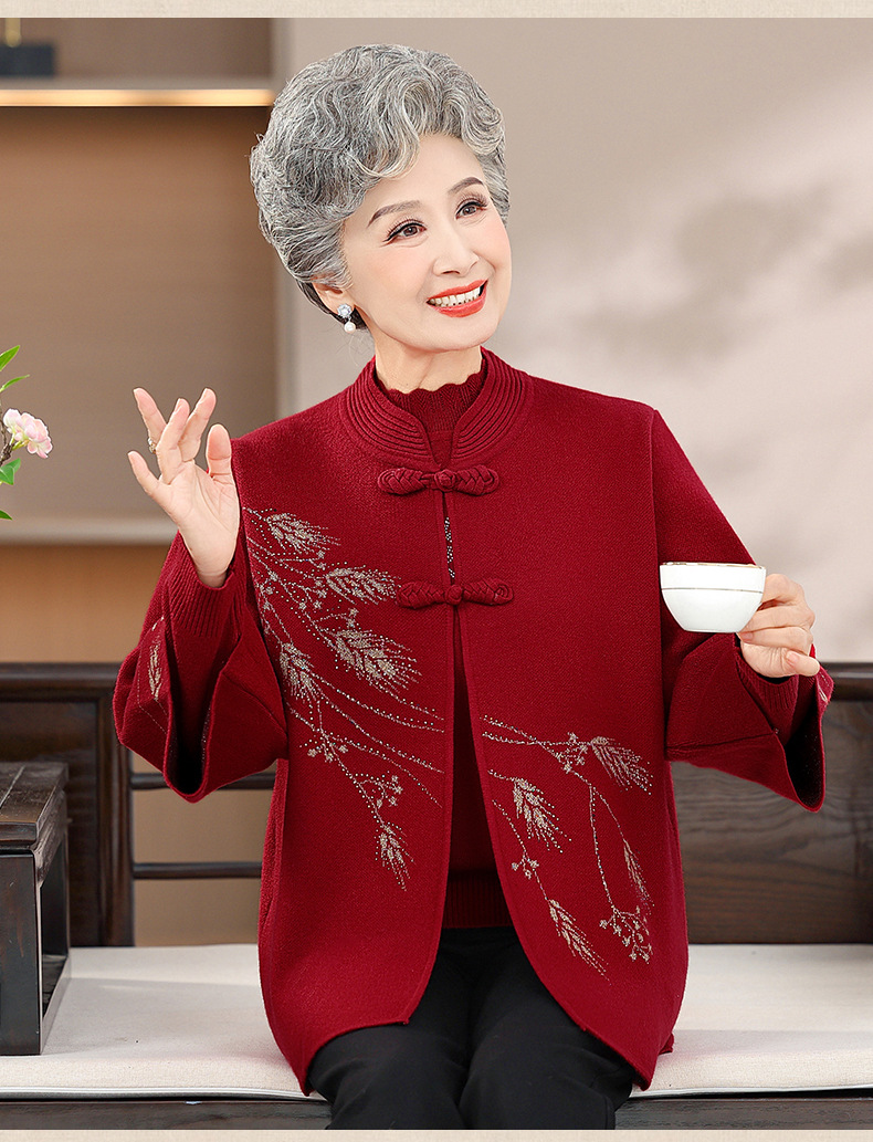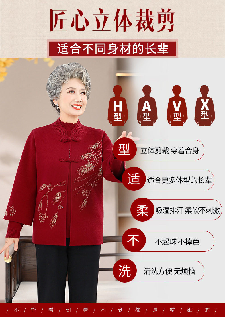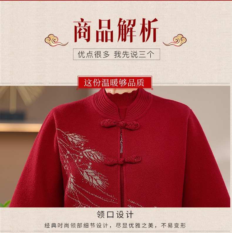 외국 스타일의 어머니 가을과 겨울 투피스 모직베이스 셔츠 카디건 코트 할머니 시어머니 스웨터 플러스 사이즈 코트