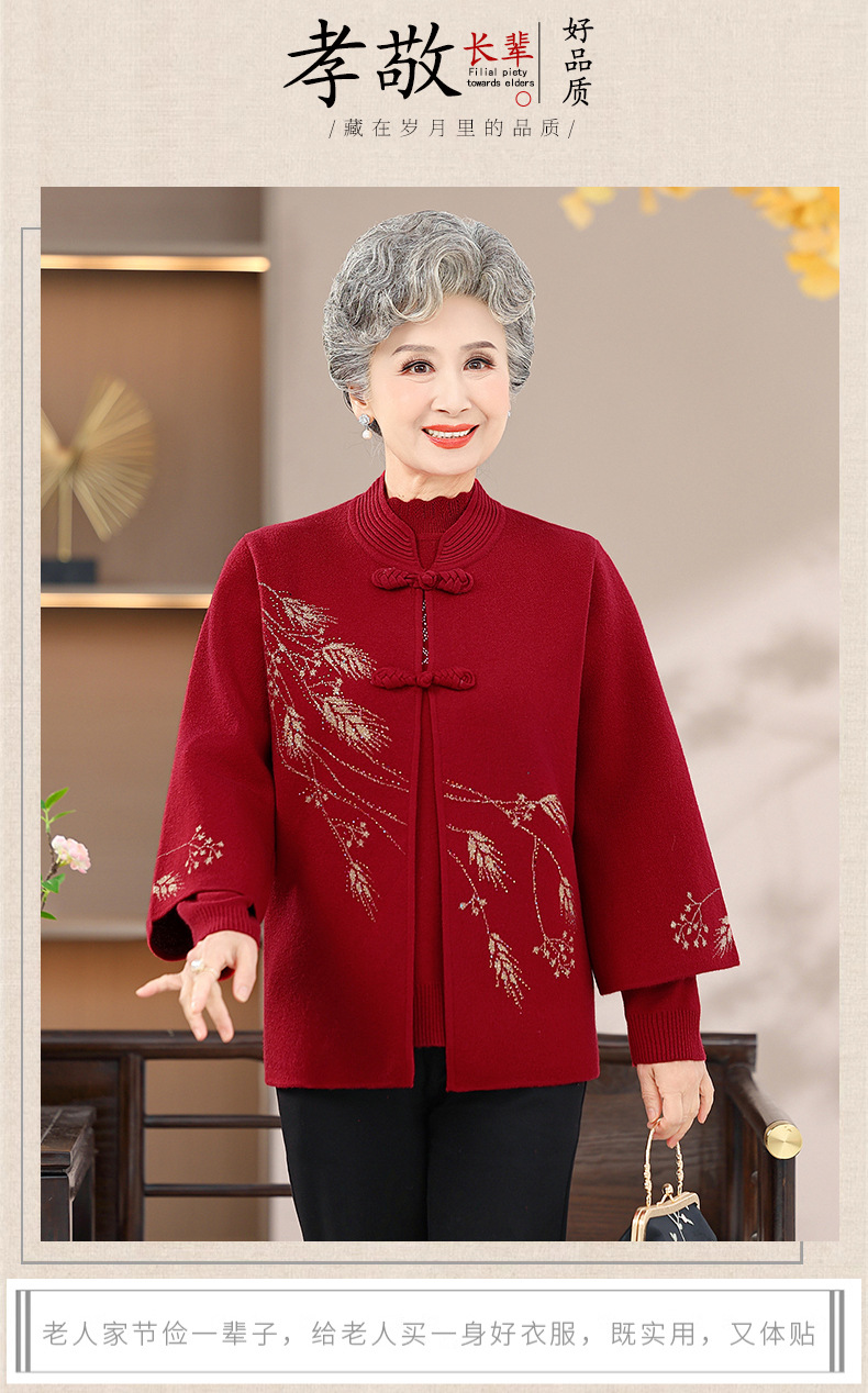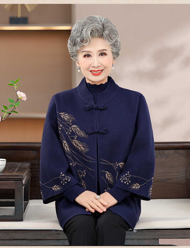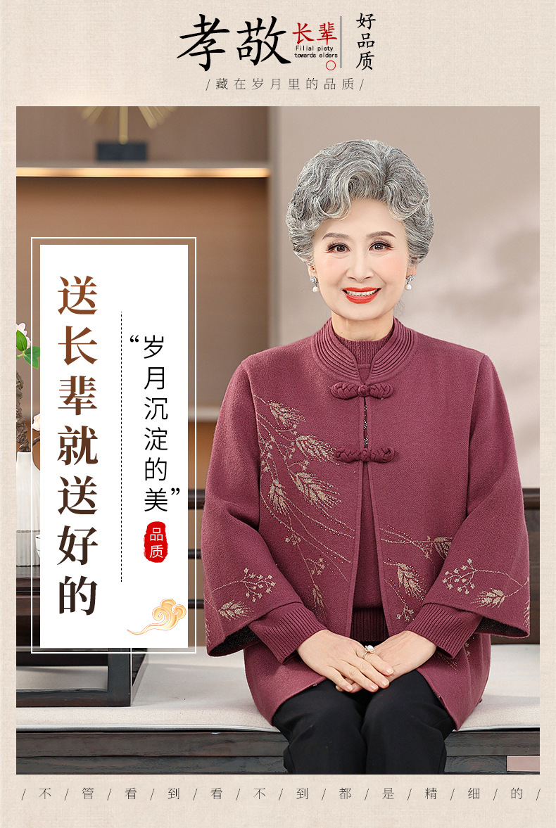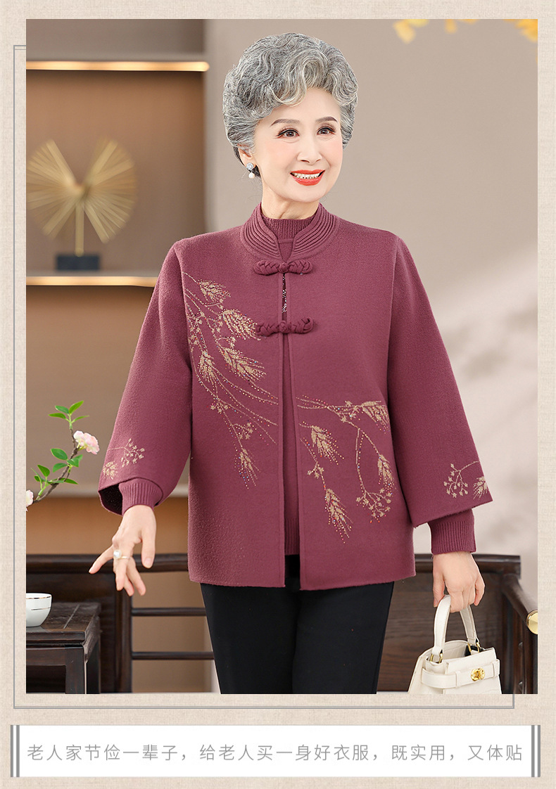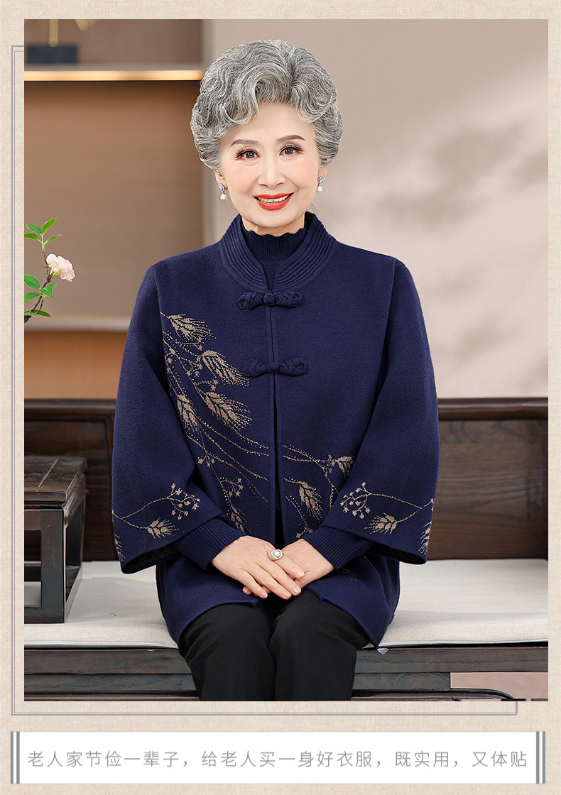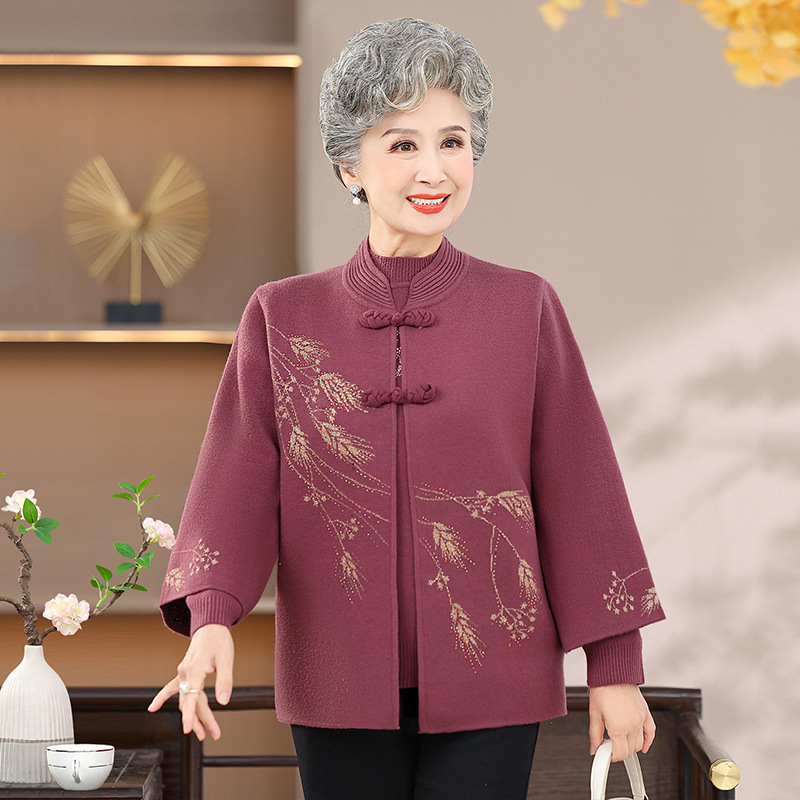 외국 스타일의 어머니 가을과 겨울 투피스 모직베이스 셔츠 카디건 코트 할머니 시어머니 스웨터 플러스 사이즈 코트스토어 가기