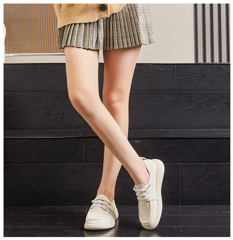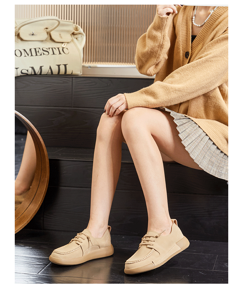 여성용 천연 가죽 캐주얼 신발 2025 봄 신상 두꺼운 밑창 통근용 작은 가죽 신발 여성용 레트로 스타일 편안한 플랫 슈즈