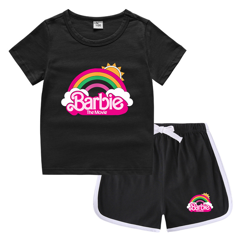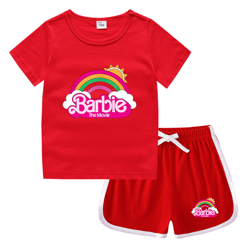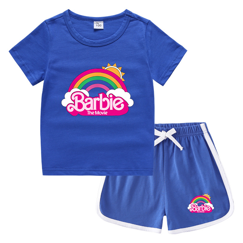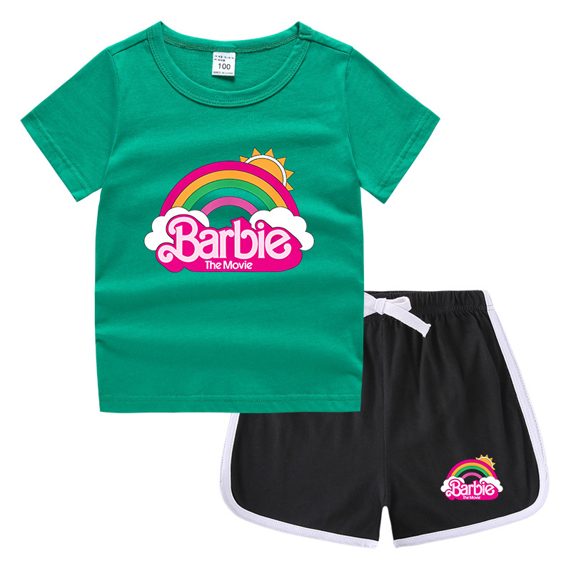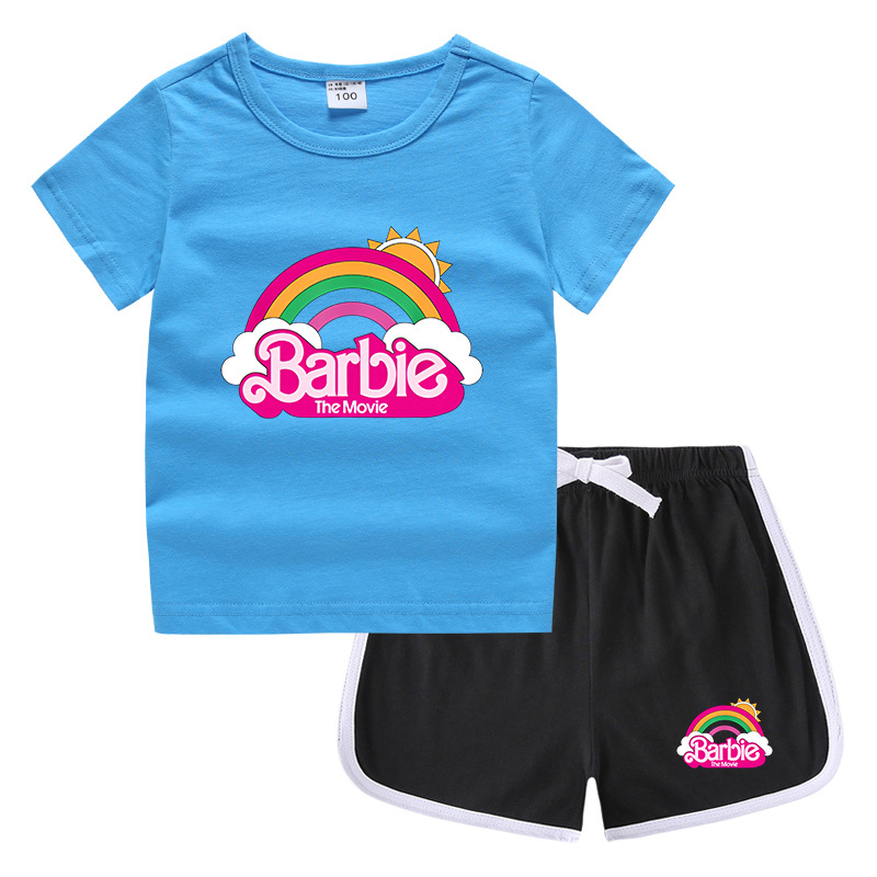 여름 남자 어린이 착용 딸 크루 넥 티셔츠 핫 팬츠 한국 캐주얼 반팔 보텔 셔츠 스포츠 학생 반바지 세트