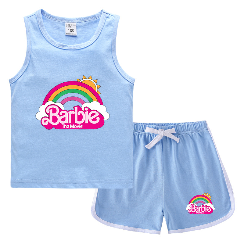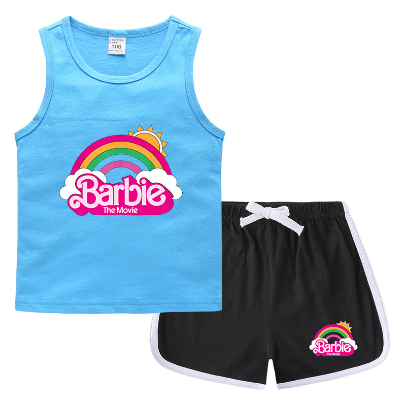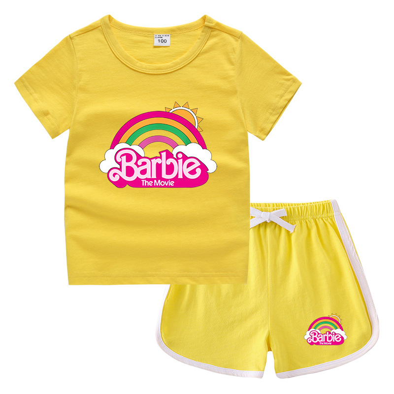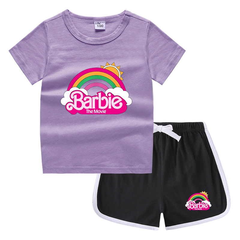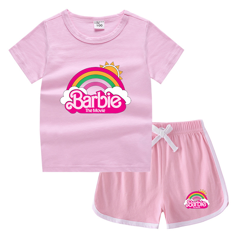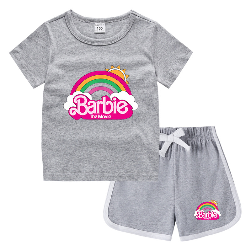 여름 남자 어린이 착용 딸 크루 넥 티셔츠 핫 팬츠 한국 캐주얼 반팔 보텔 셔츠 스포츠 학생 반바지 세트