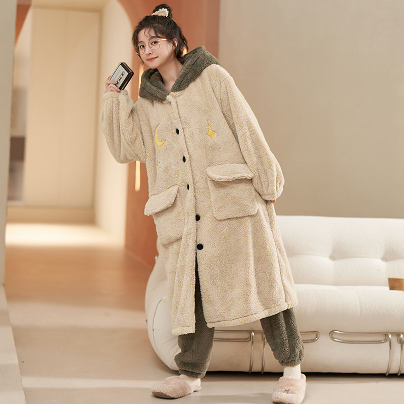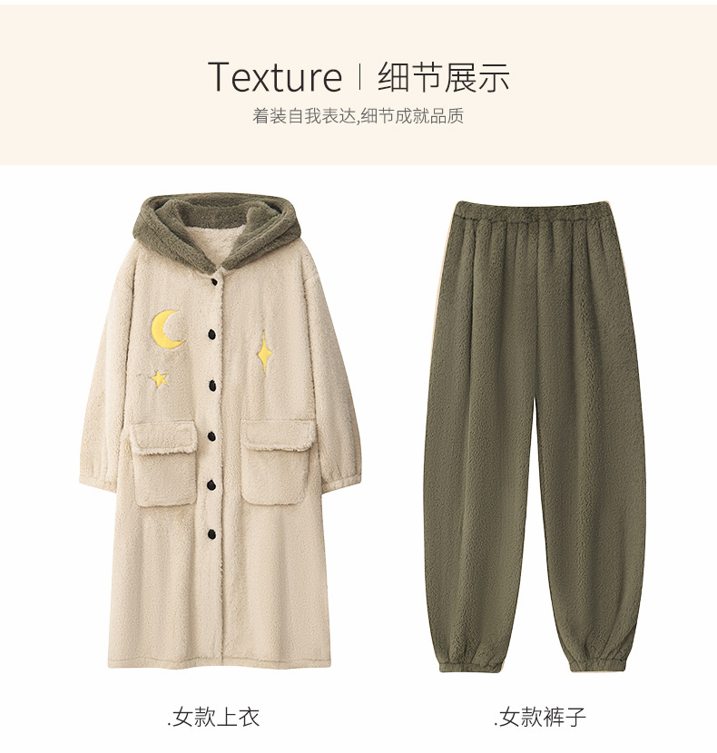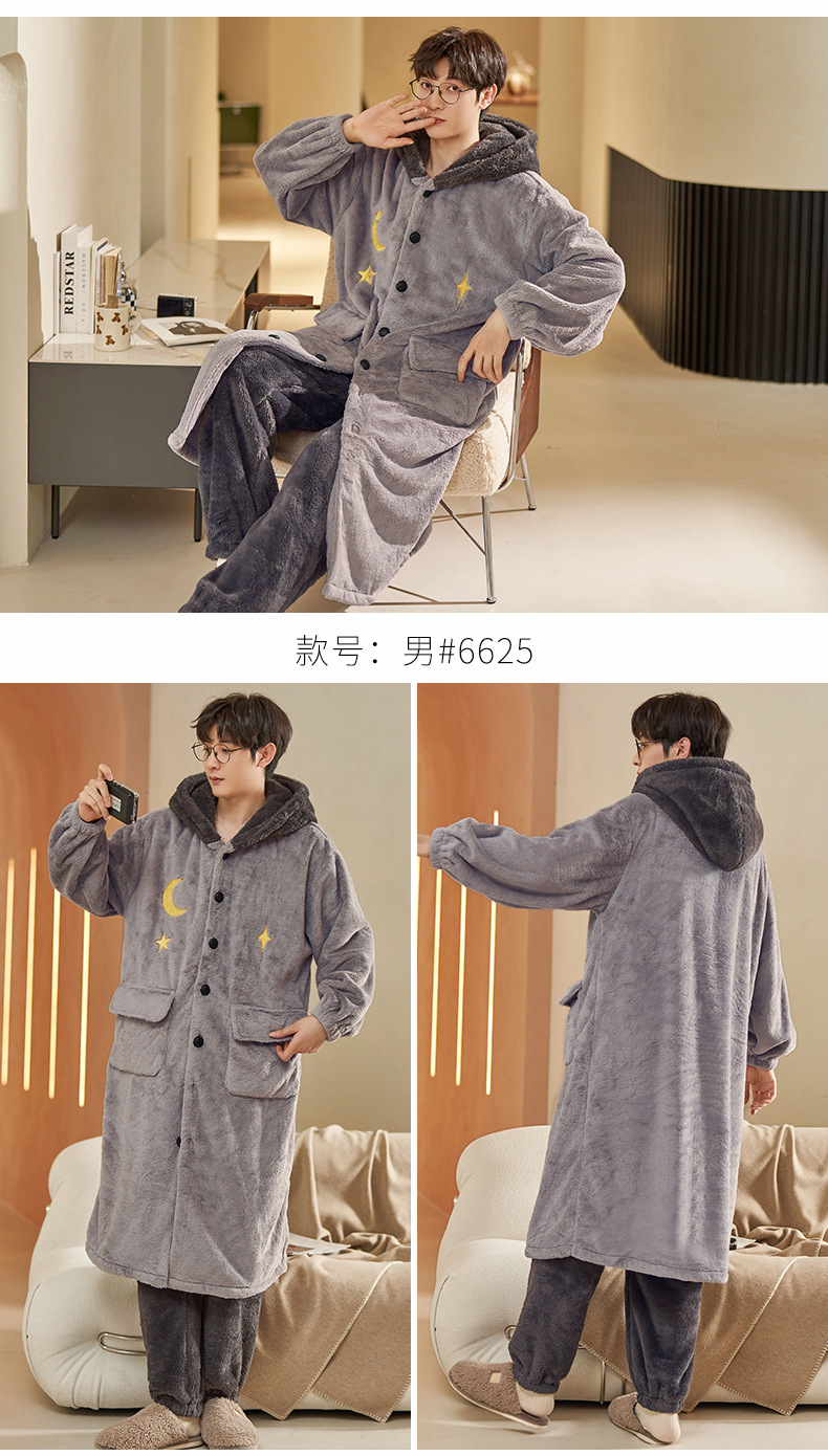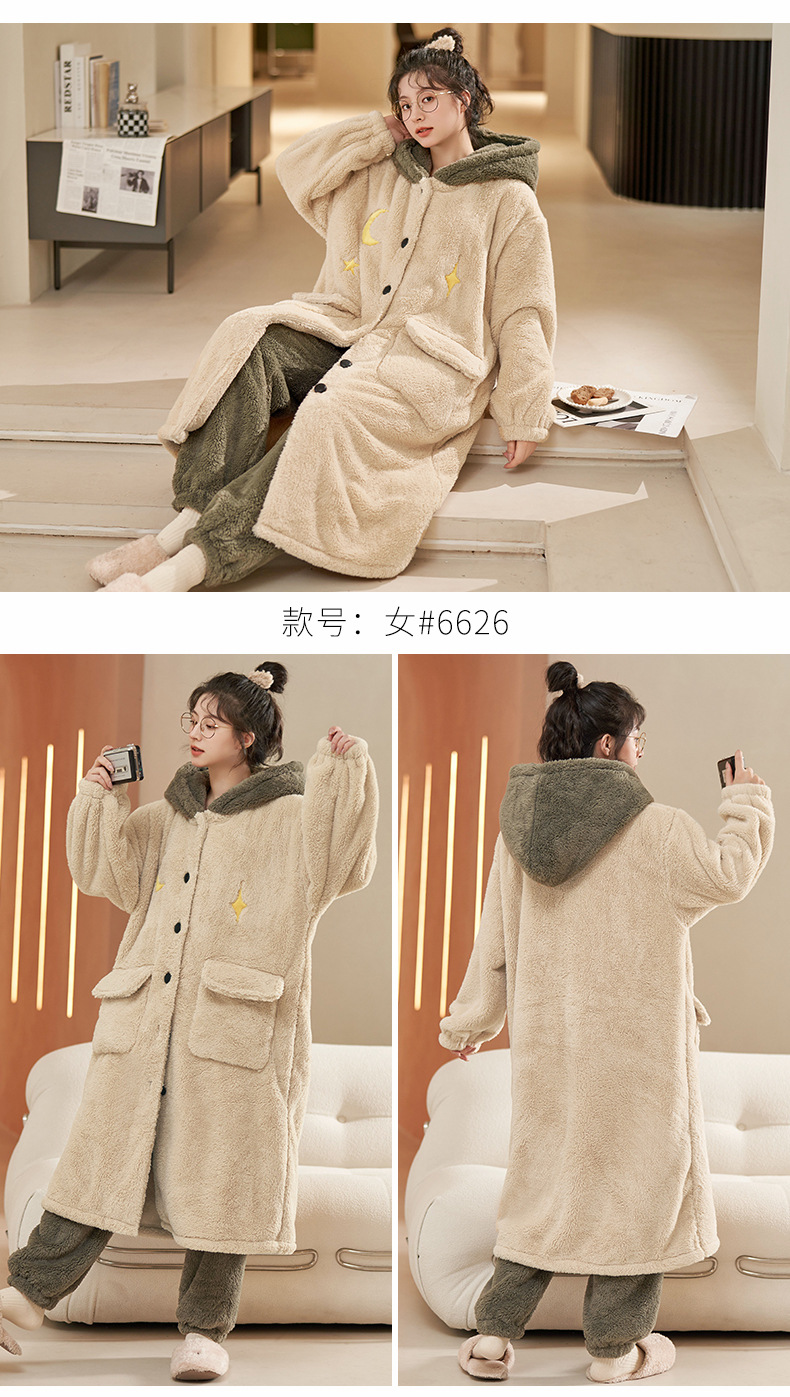 두꺼운 긴 산호 양털 커플 파자마 여성의 겨울 후드 나이트 가운 남성 플란넬 홈 의류 세트스토어 가기