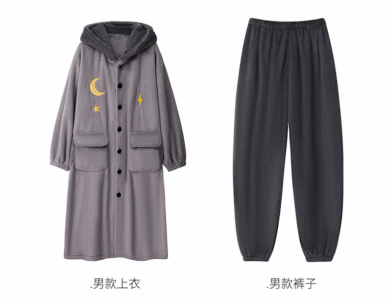 두꺼운 긴 산호 양털 커플 파자마 여성의 겨울 후드 나이트 가운 남성 플란넬 홈 의류 세트