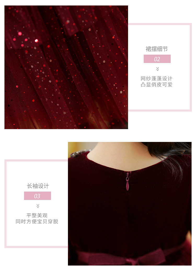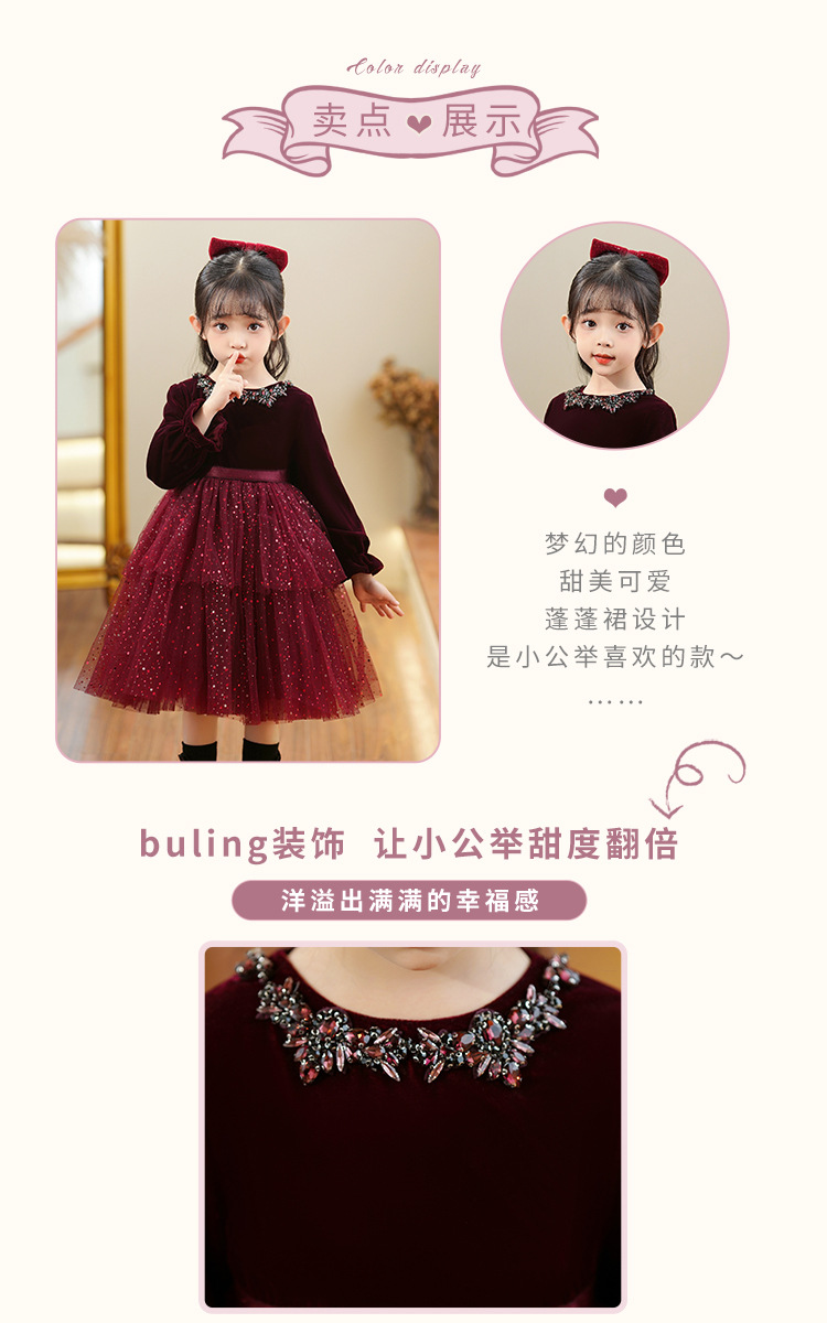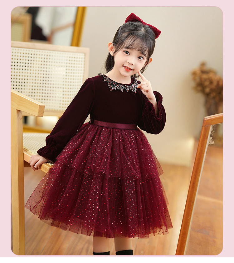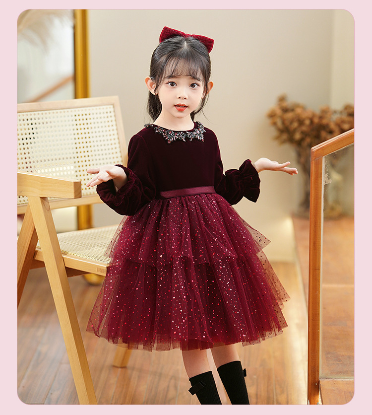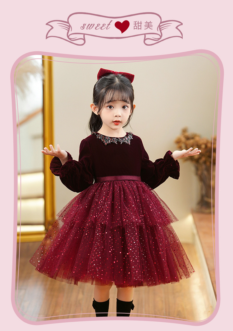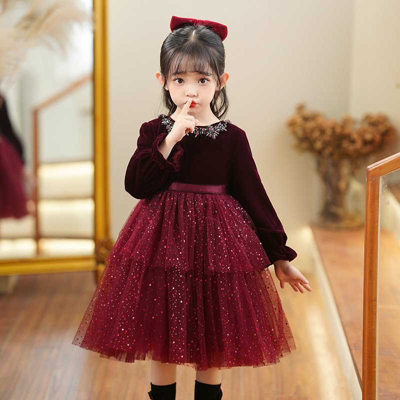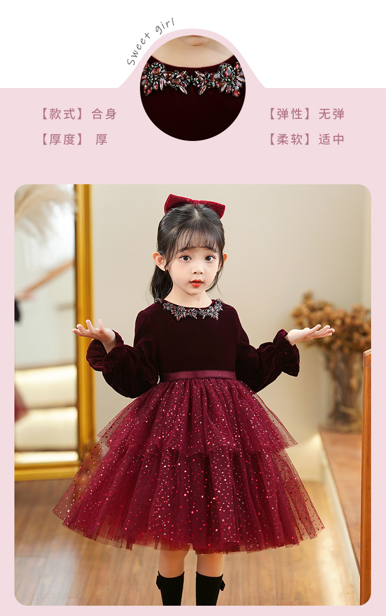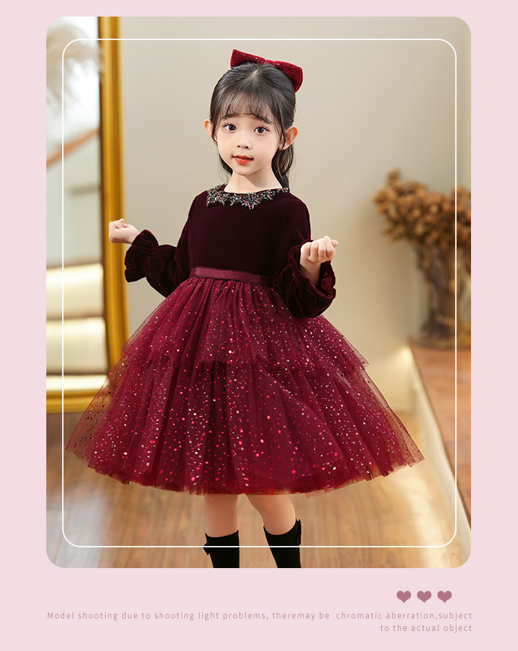 소녀의 원피스 빨간 베일 원피스 긴 소매 어린이 푹신한 공주 원피스 기모 어린 소녀의 원피스 봄과 가을스토어 가기