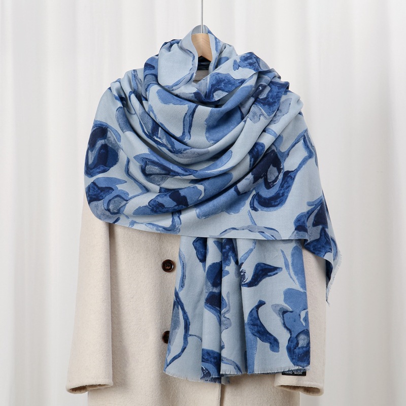 대외 무역 국경 간 라이브 방송 새로운 가을 및 겨울 피부 친화적 인 따뜻한 보관 캐시미어 인쇄 스카프 휴일 꽃 간단한 올 매치 목도리