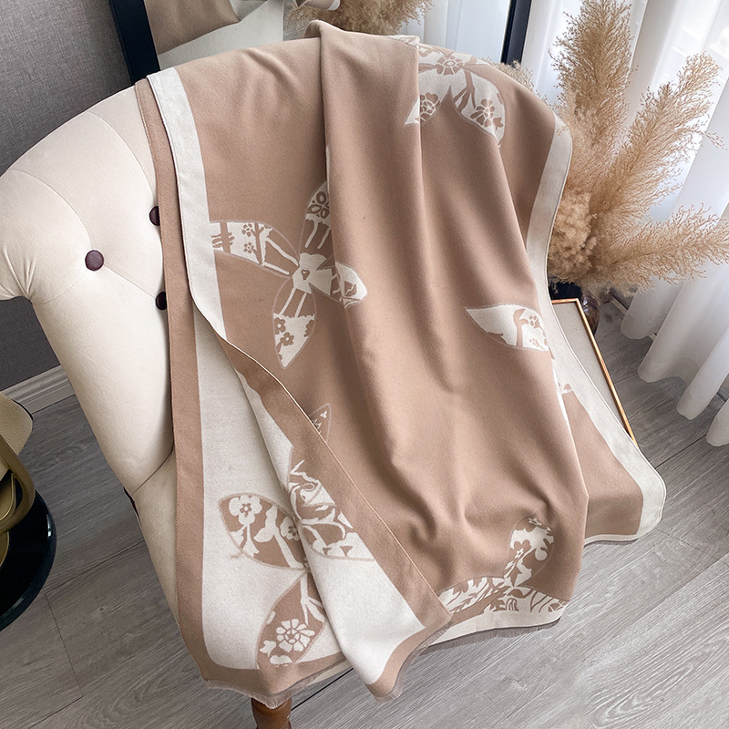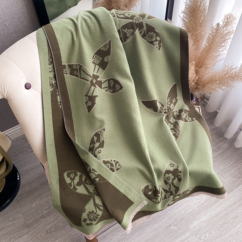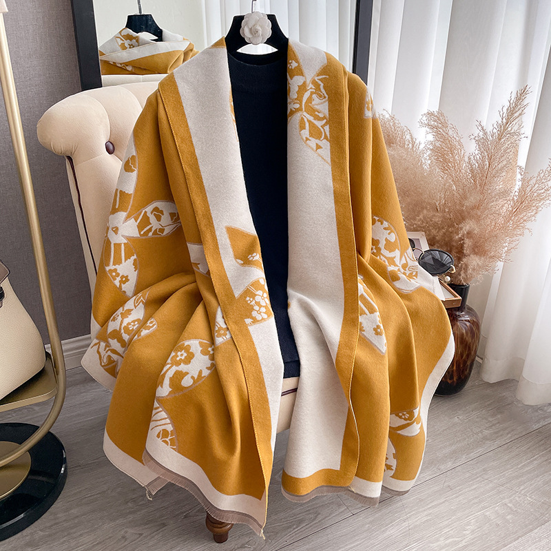 새로운 양면 꽃 인쇄 캐시미어 스카프 여성의 우아한 두꺼운 고급 따뜻한 사무실 목도리 판초