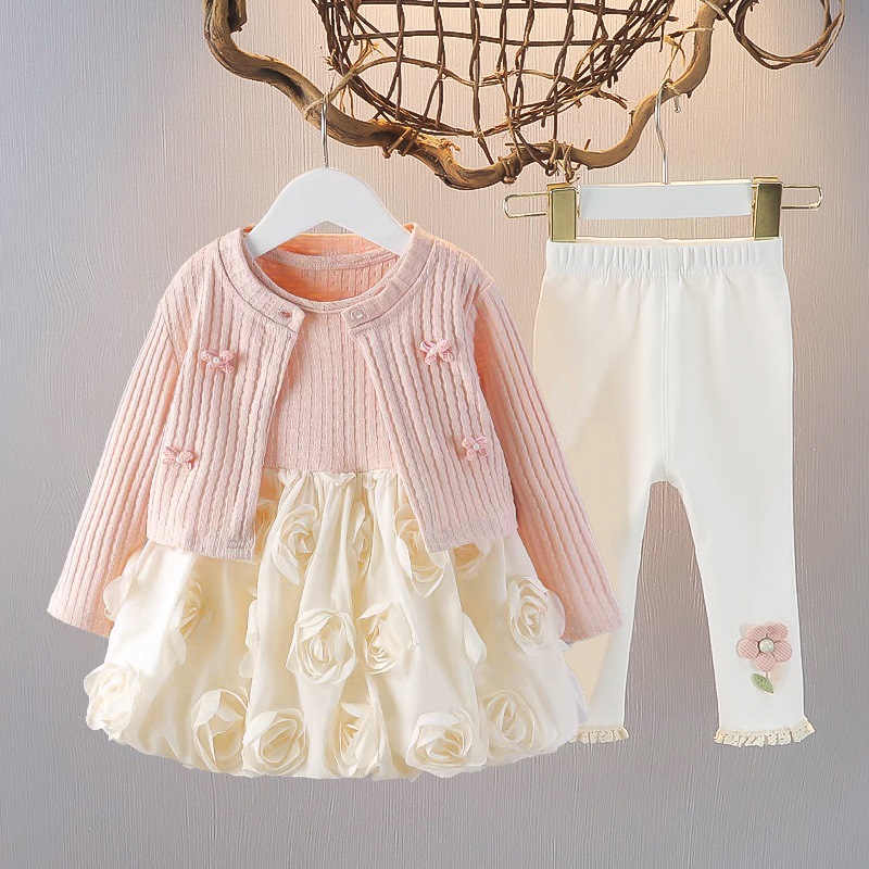 2025 새로운 소녀 가을 원피스 세트 긴팔 공주 니트 서양식 귀여운 한국 스타일 아기 소녀 치마스토어 가기